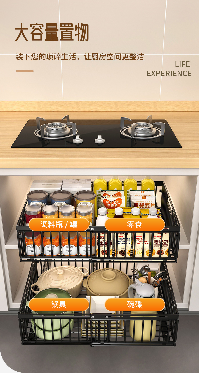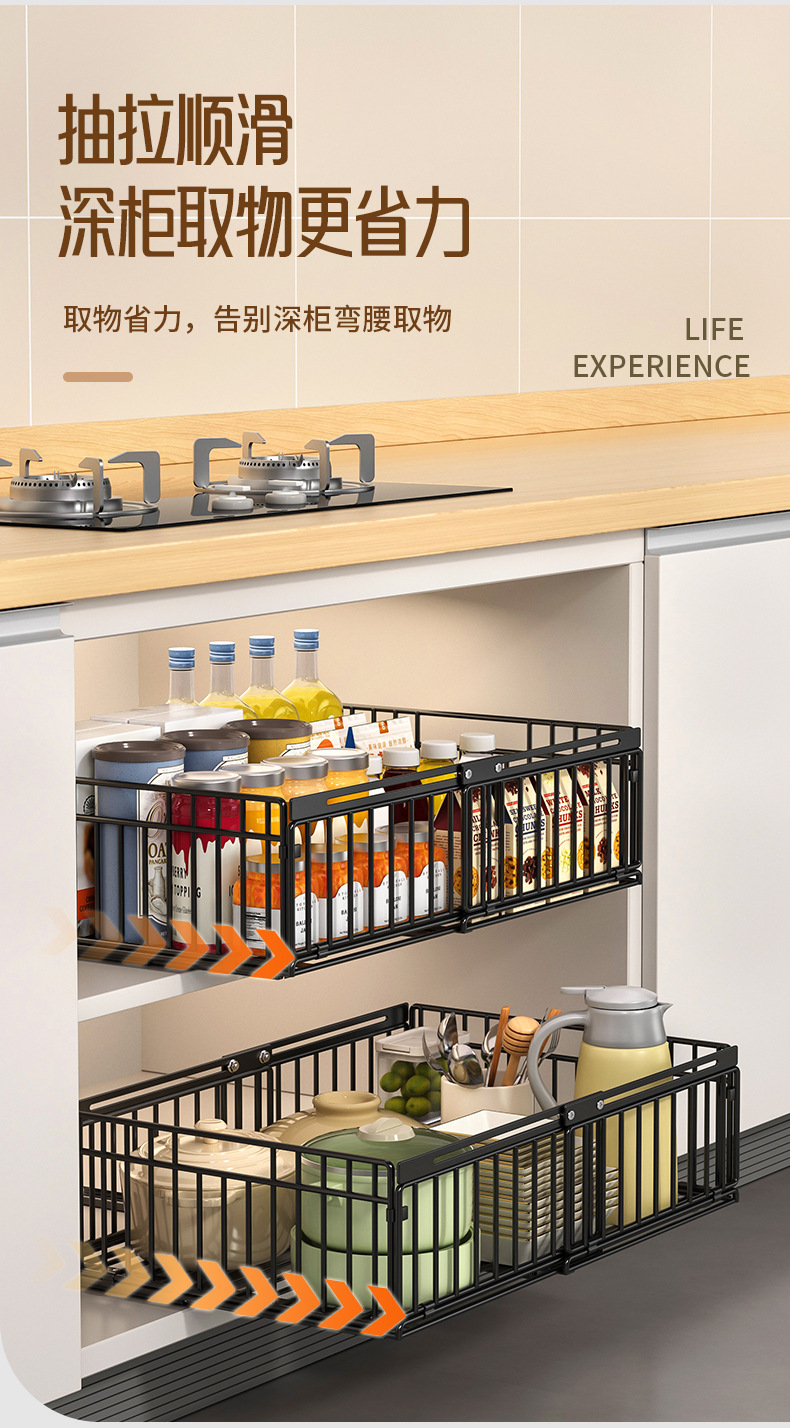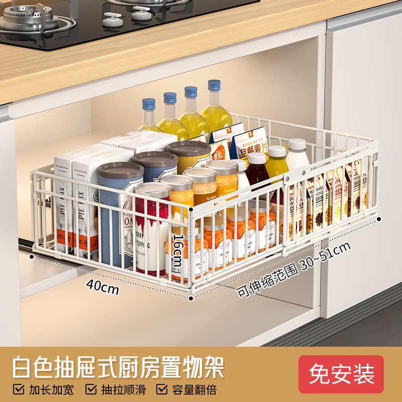 주방 수납 선반, 식기류, 조미료 바구니, 싱크대 아래 접이식 서랍 일체형 수납 선반