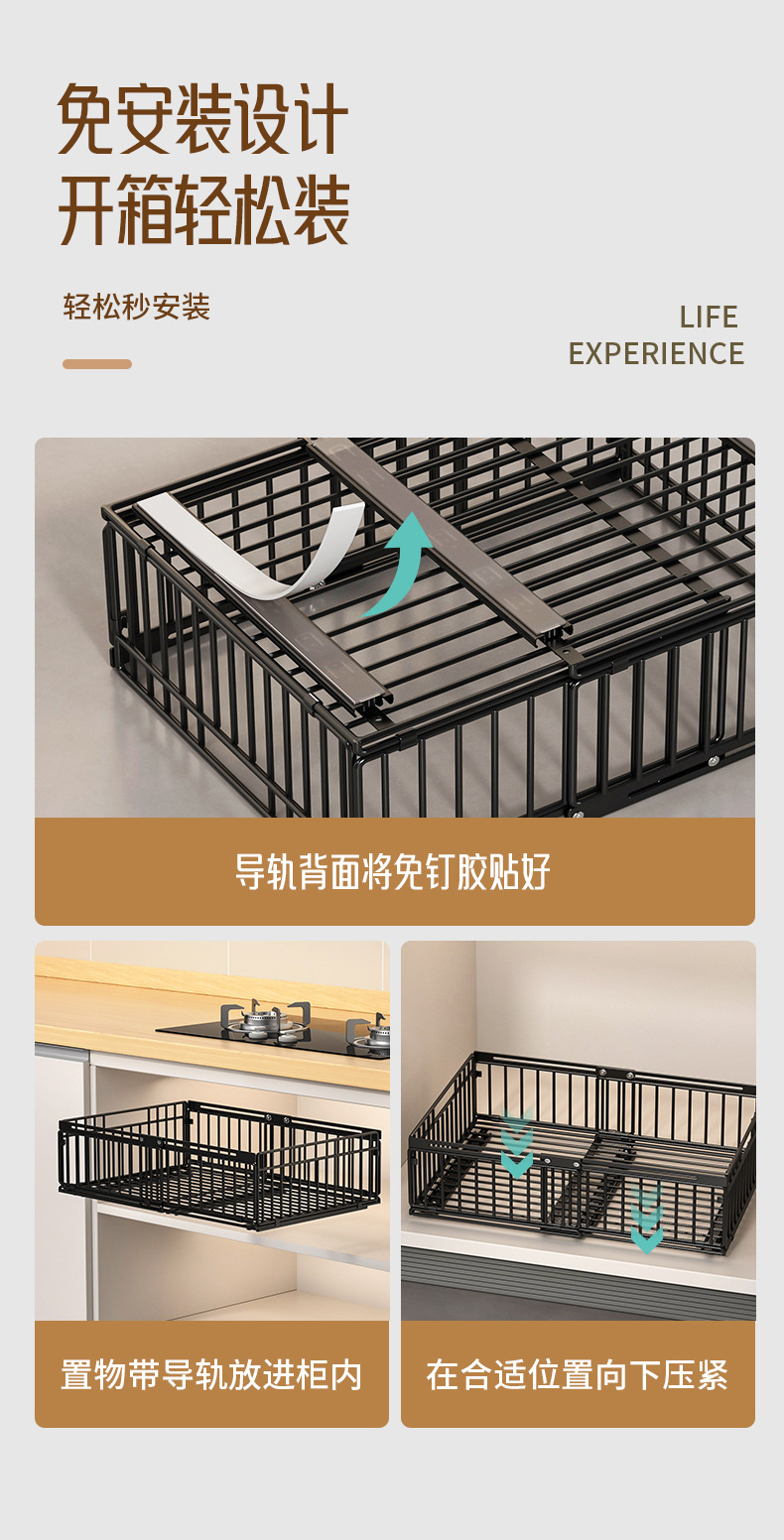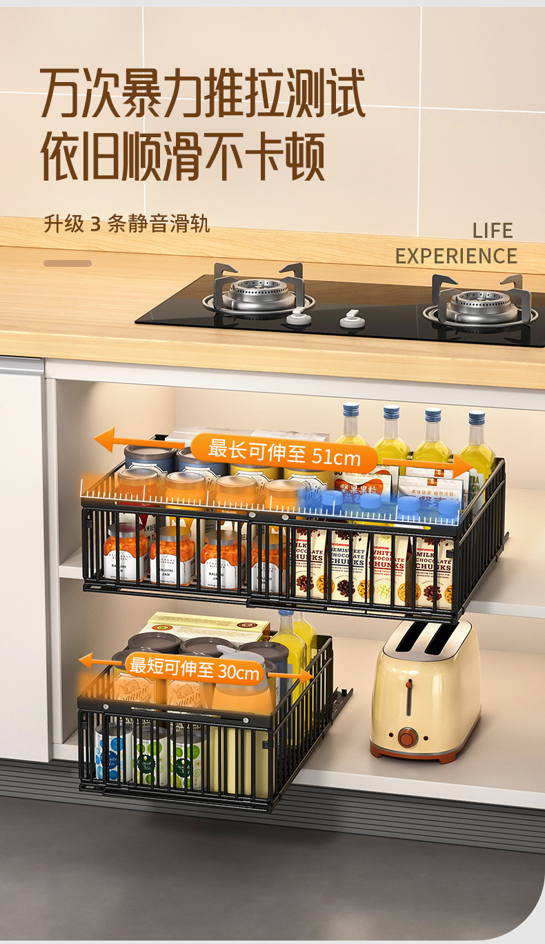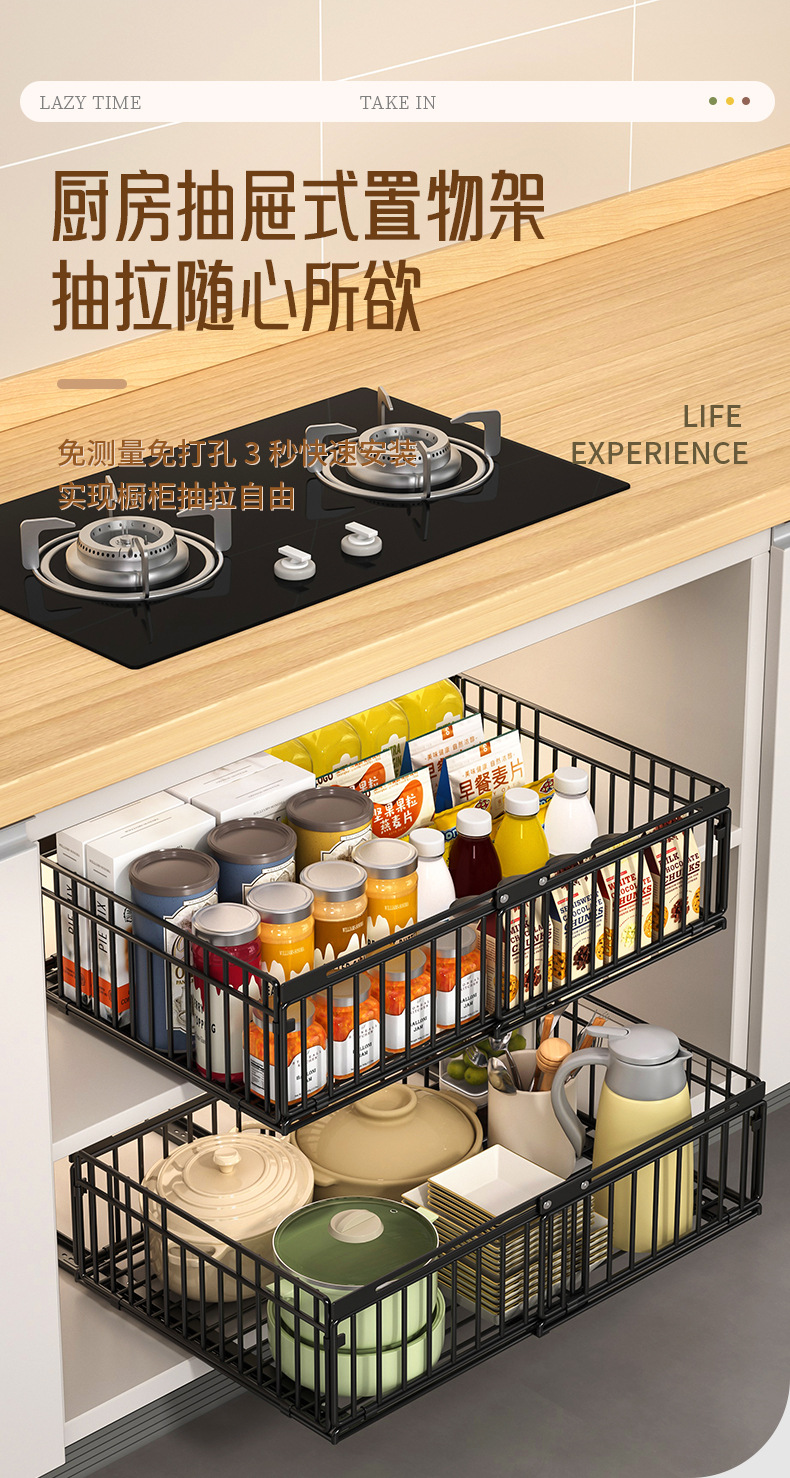주방 수납 선반, 식기류, 조미료 바구니, 싱크대 아래 접이식 서랍 일체형 수납 선반