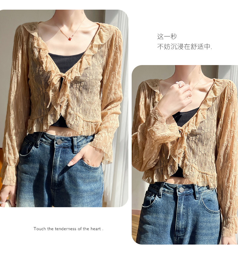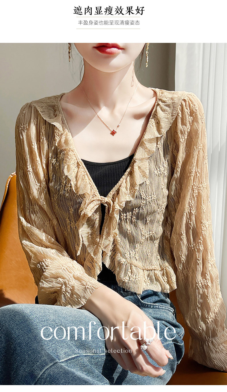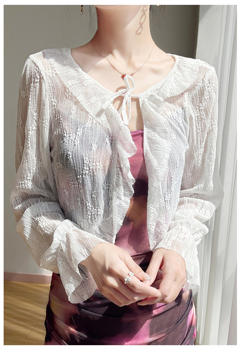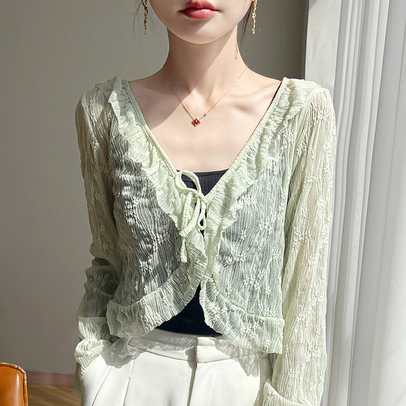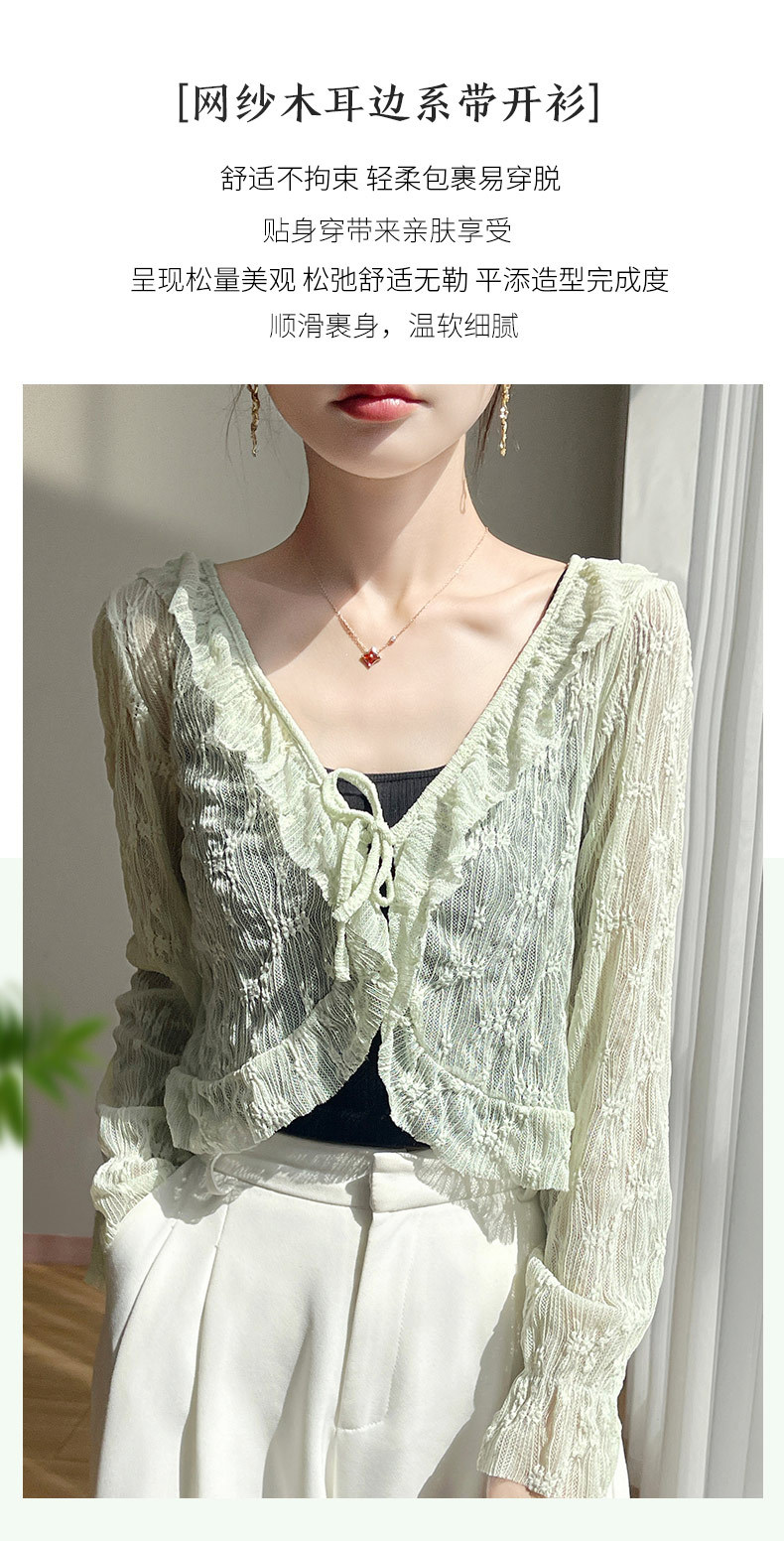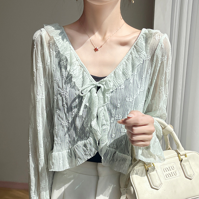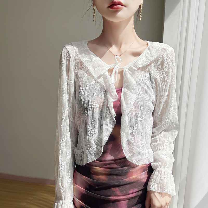 얼음 실크 얇은 휴가 자외선 차단 요정 셔츠, 우아하고 패셔너블하며 편안한 여성용 메쉬 귀 레이스 업 가디건