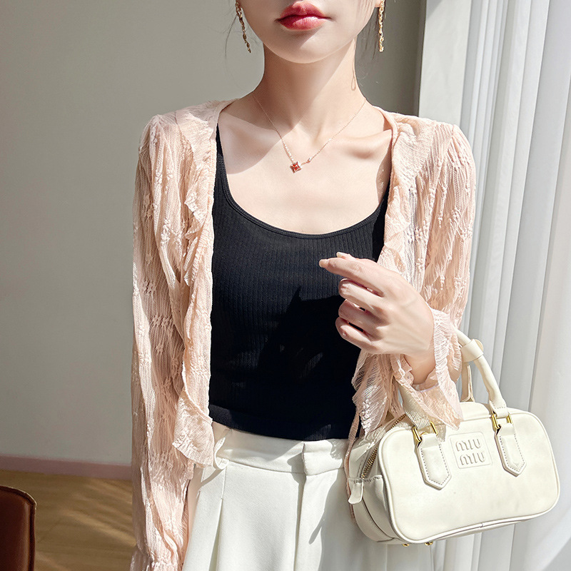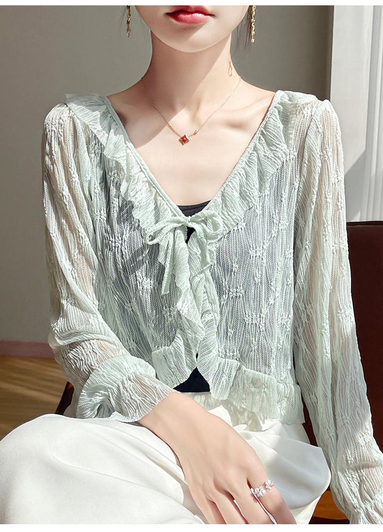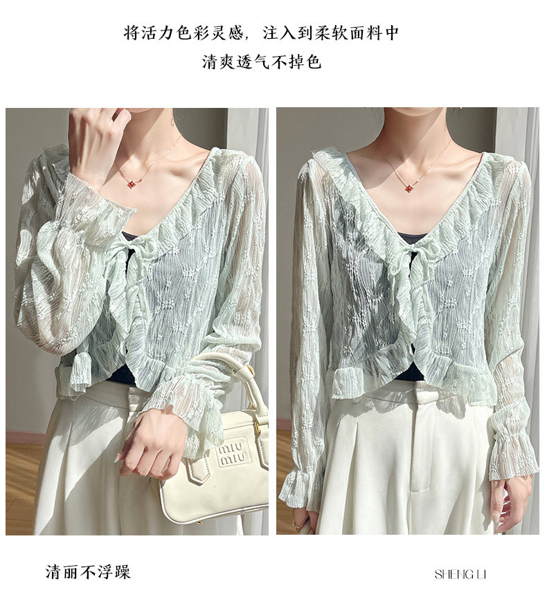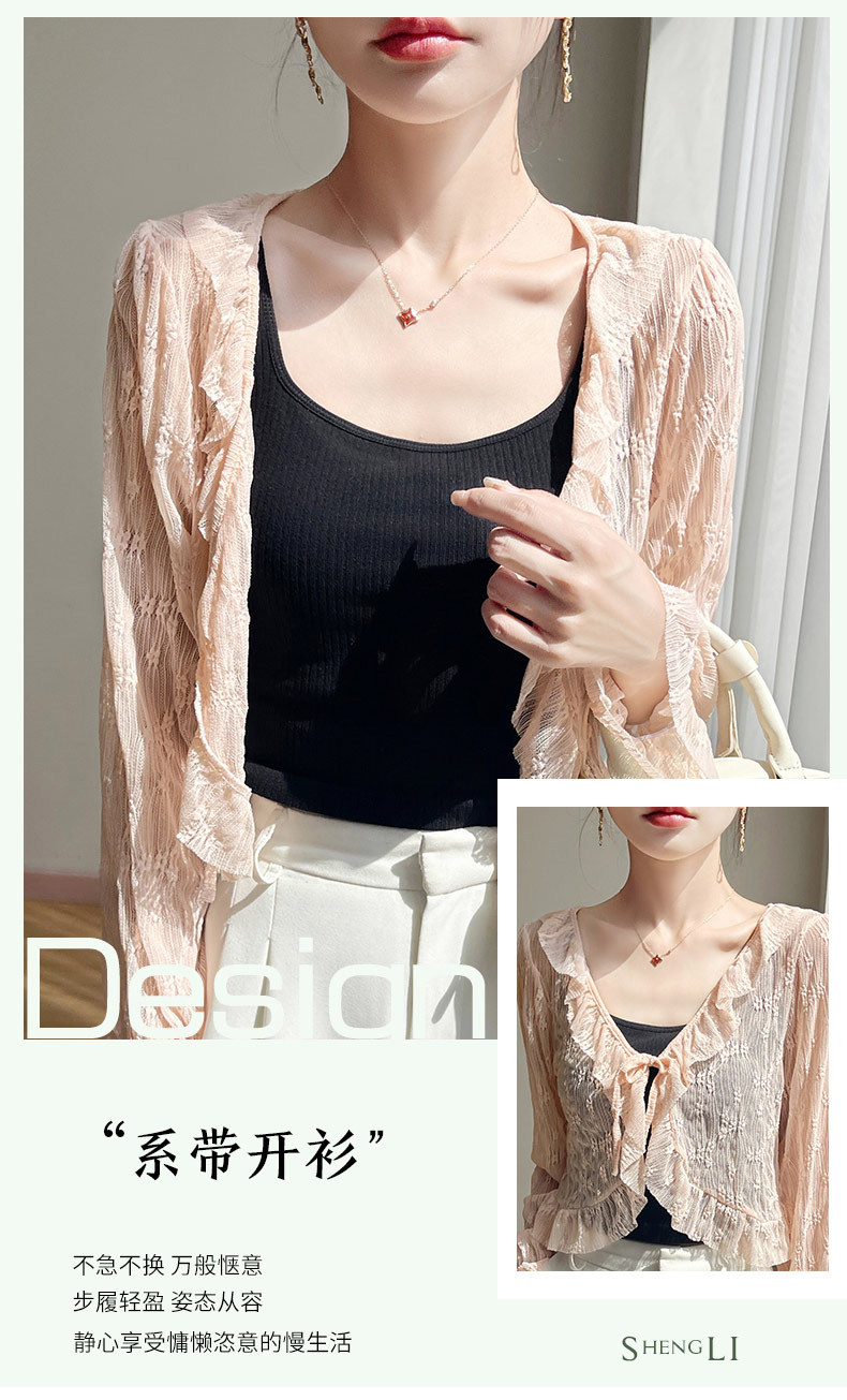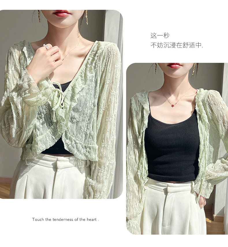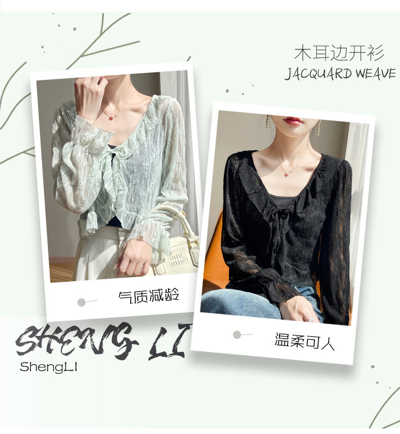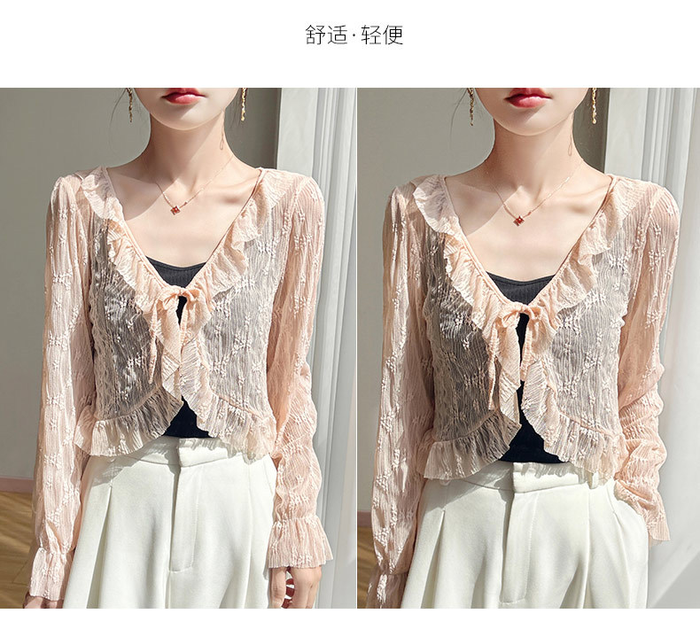 얼음 실크 얇은 휴가 자외선 차단 요정 셔츠, 우아하고 패셔너블하며 편안한 여성용 메쉬 귀 레이스 업 가디건