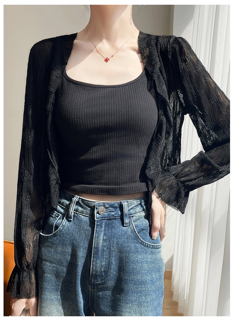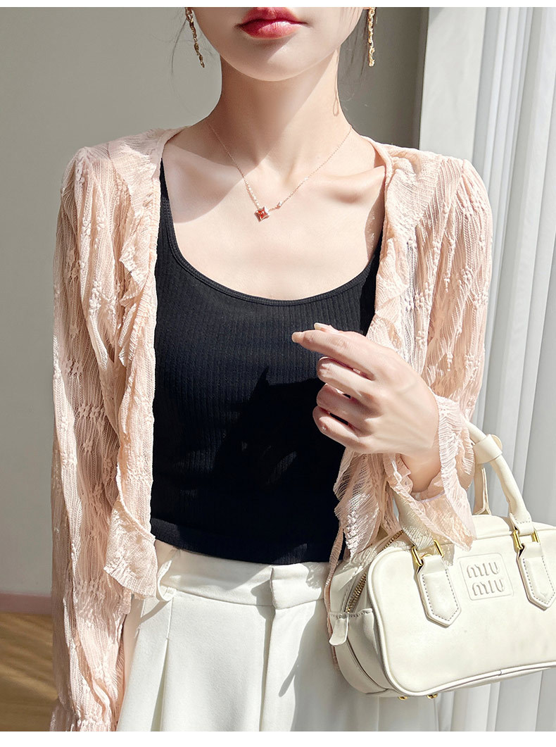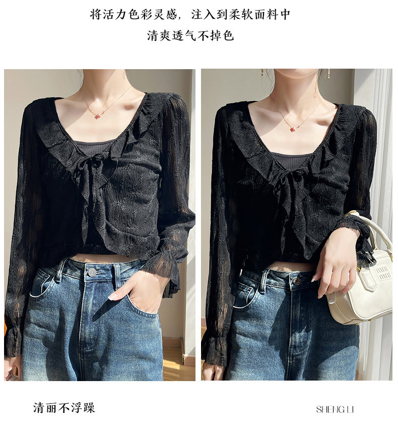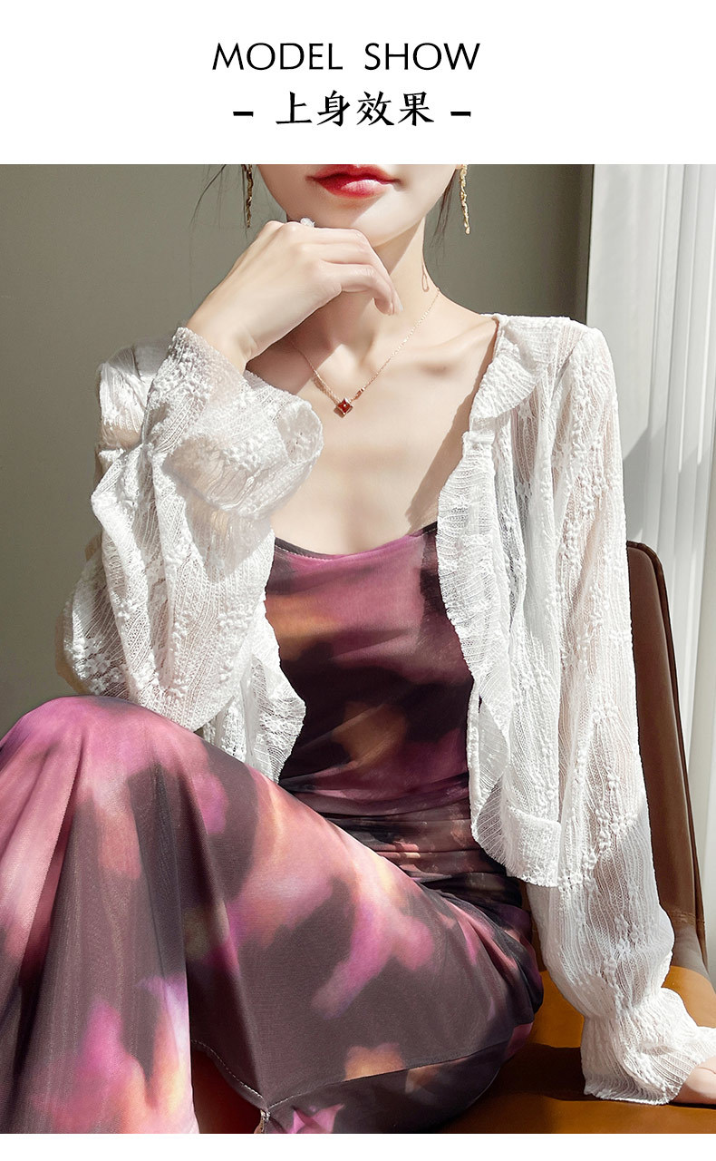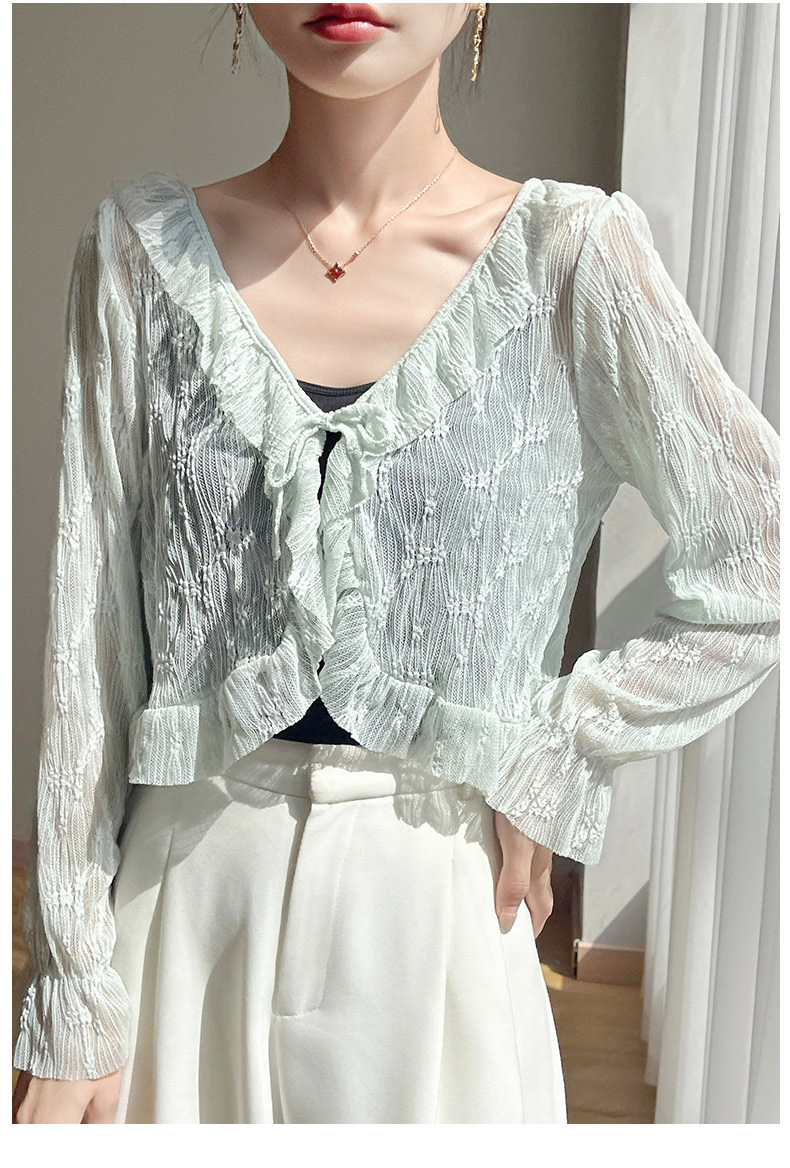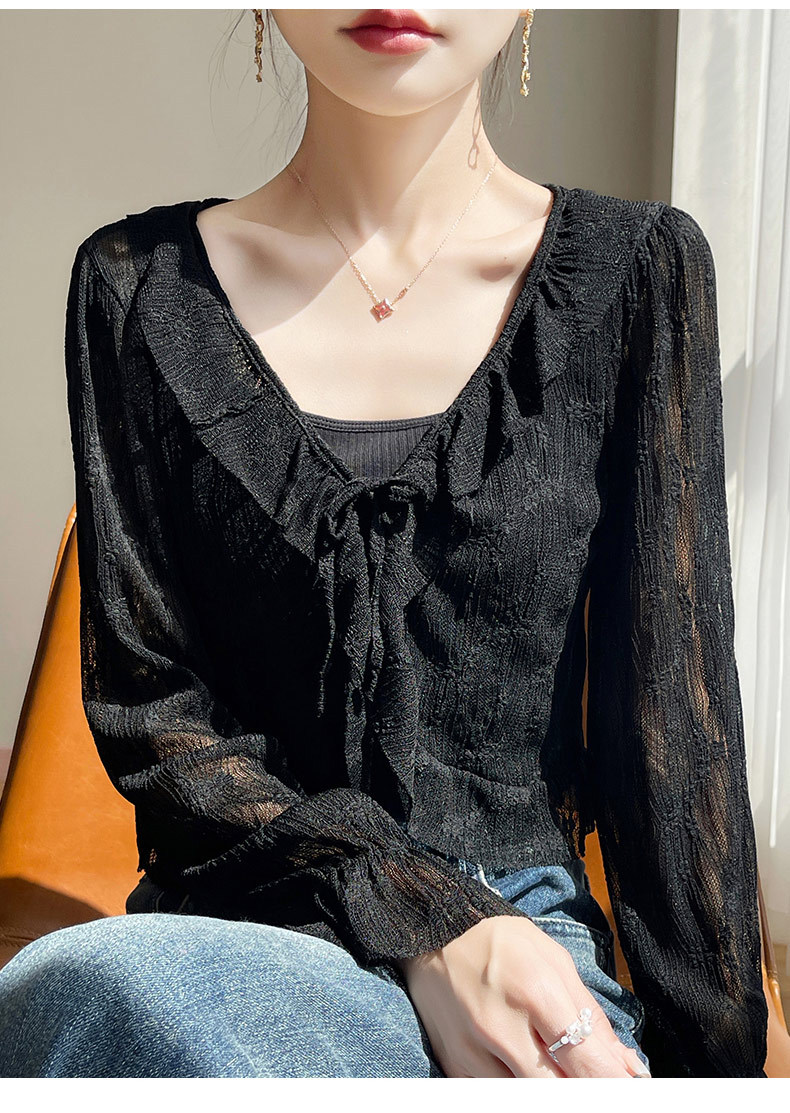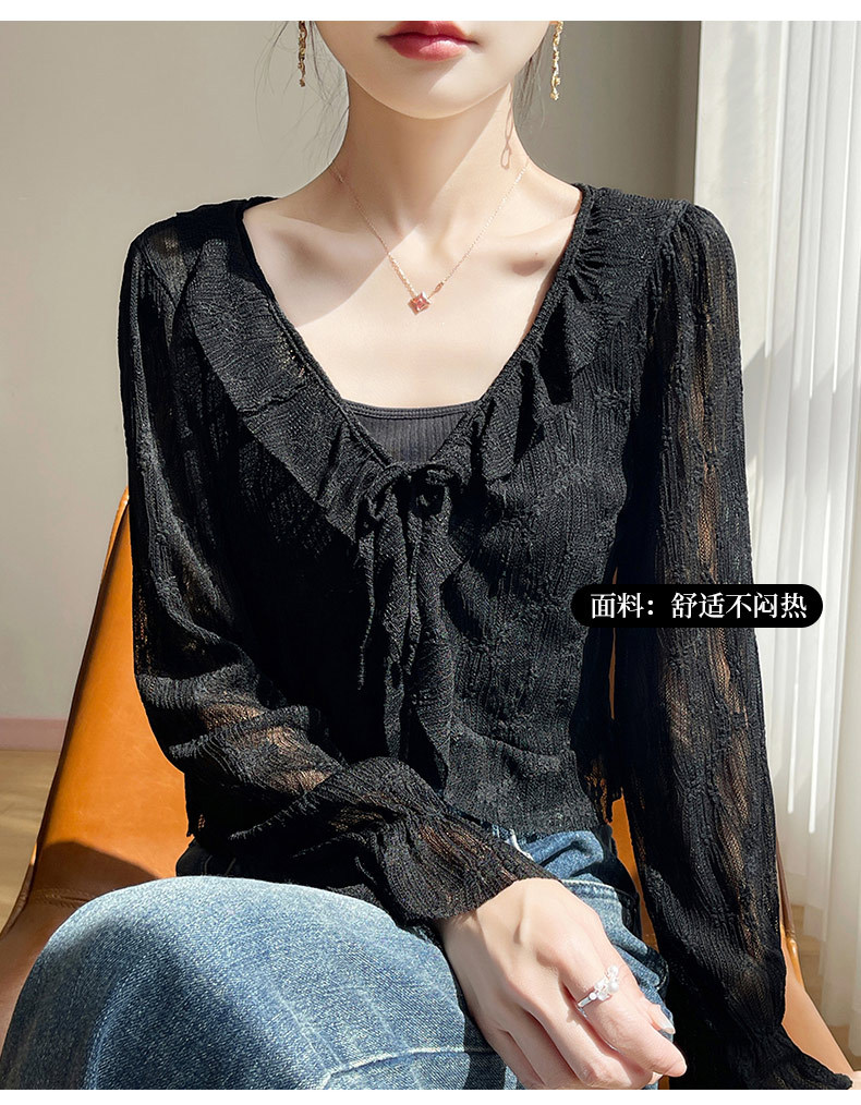 얼음 실크 얇은 휴가 자외선 차단 요정 셔츠, 우아하고 패셔너블하며 편안한 여성용 메쉬 귀 레이스 업 가디건