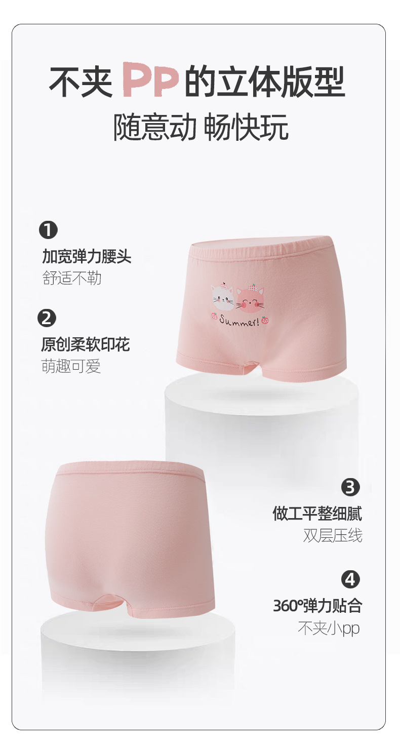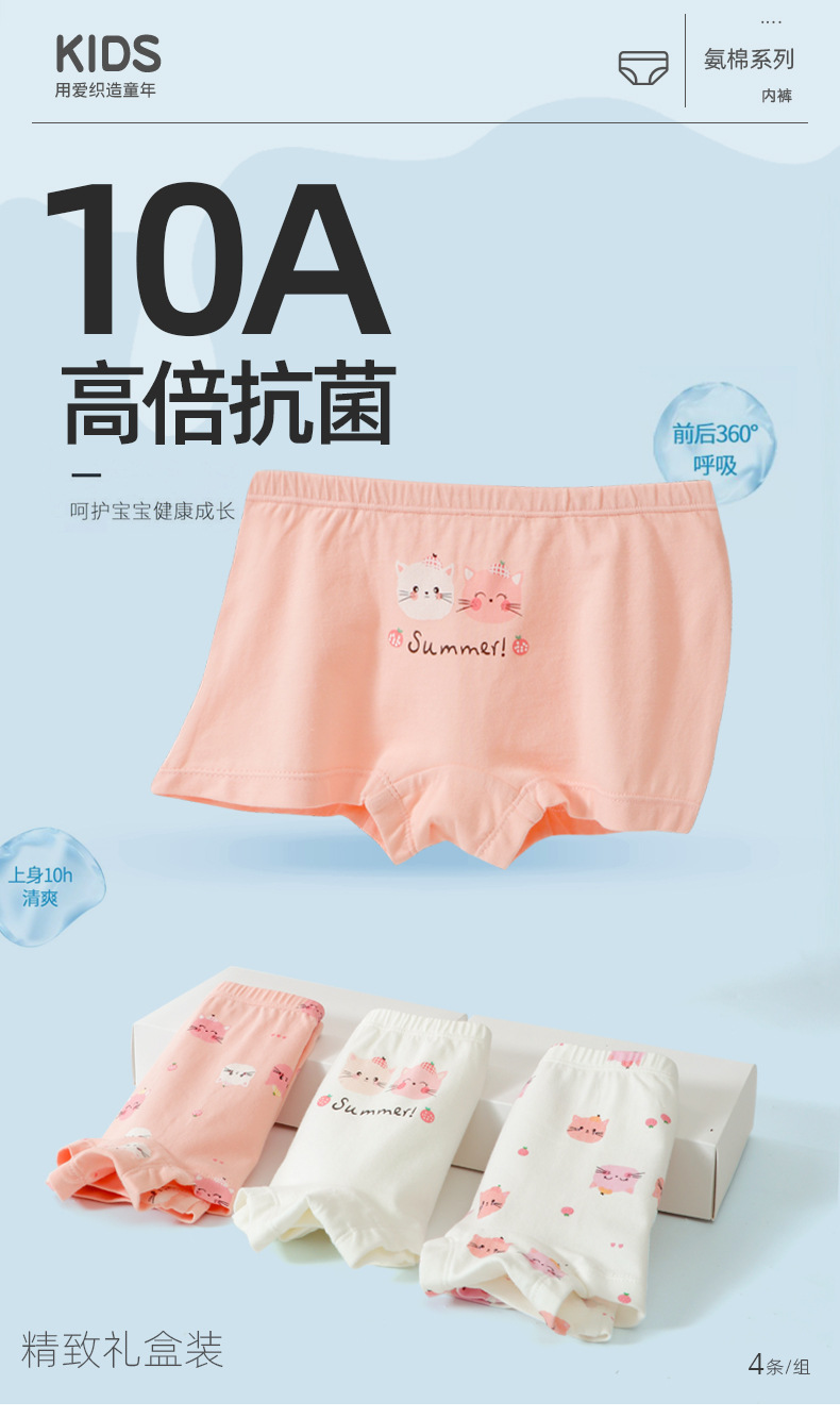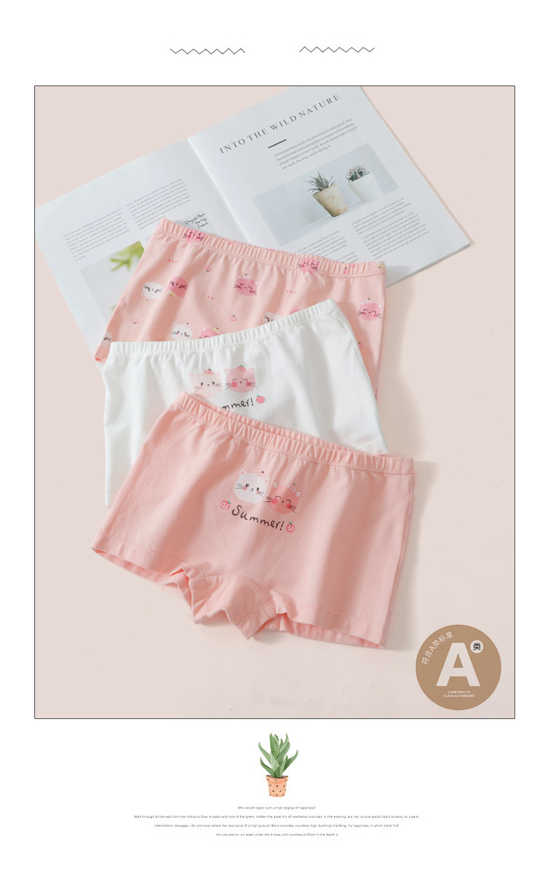 여아용 순면 사각팬티, 중대형 아동용 편안한 사각팬티, 피부친화적이고 통기성이 좋은 유아용 팬티, 항균 카테고리 A