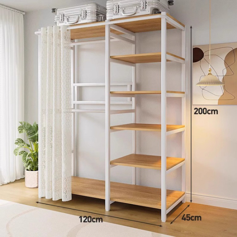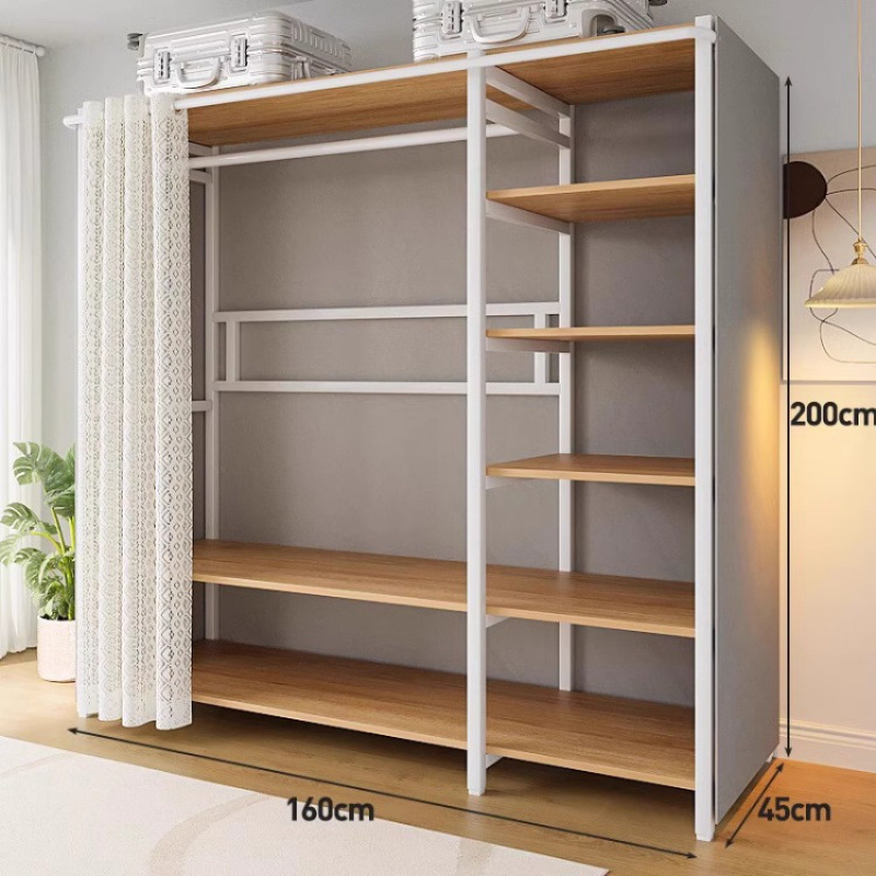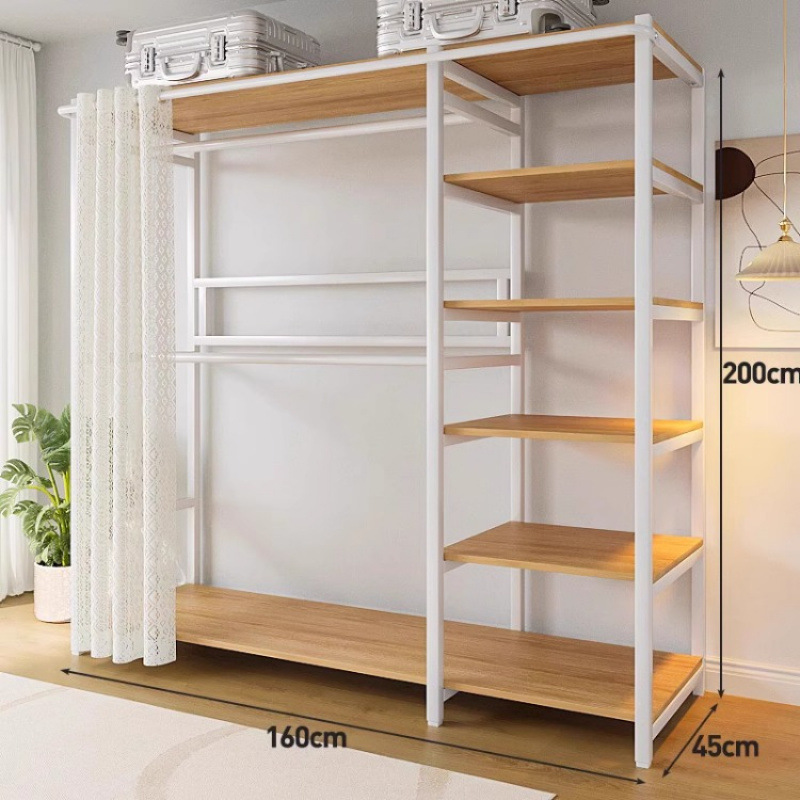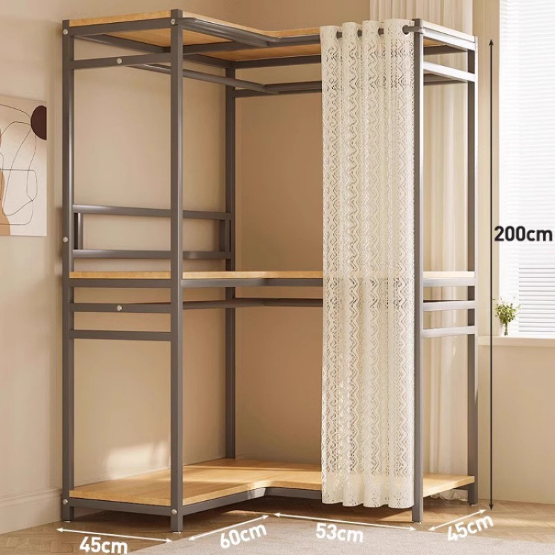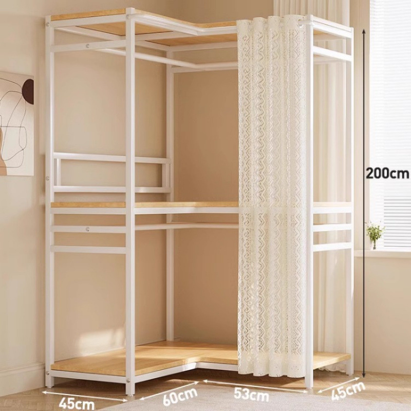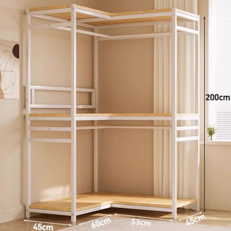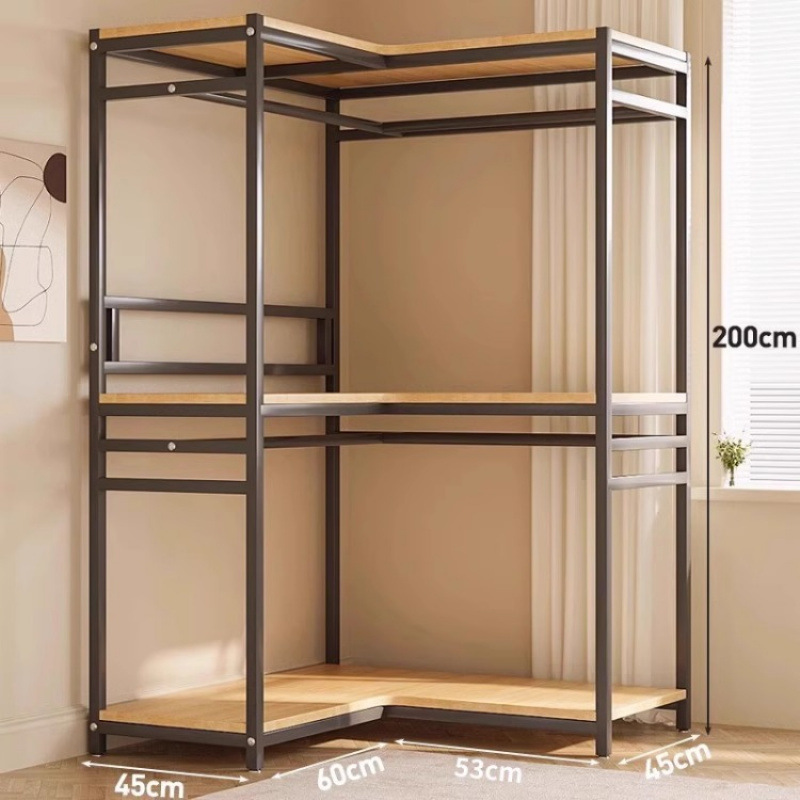 간단한 옷장 침실 홈 옷장 선반 코너 옷장 강력하고 내구성이 뛰어난 개방형 조립 금속 옷장