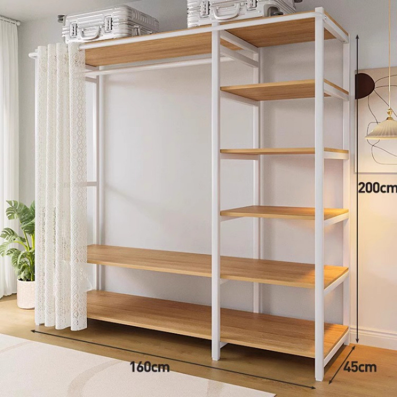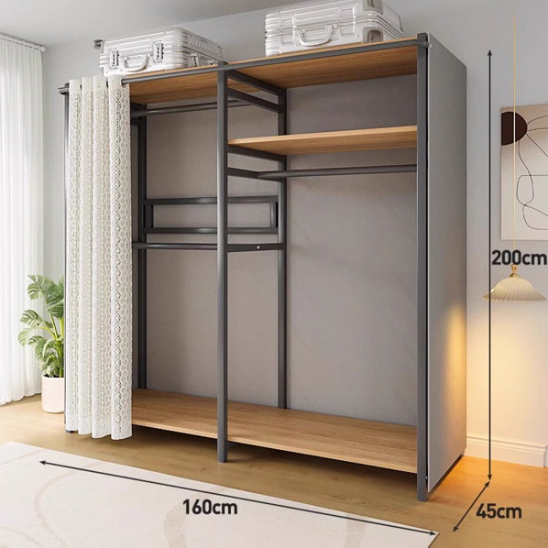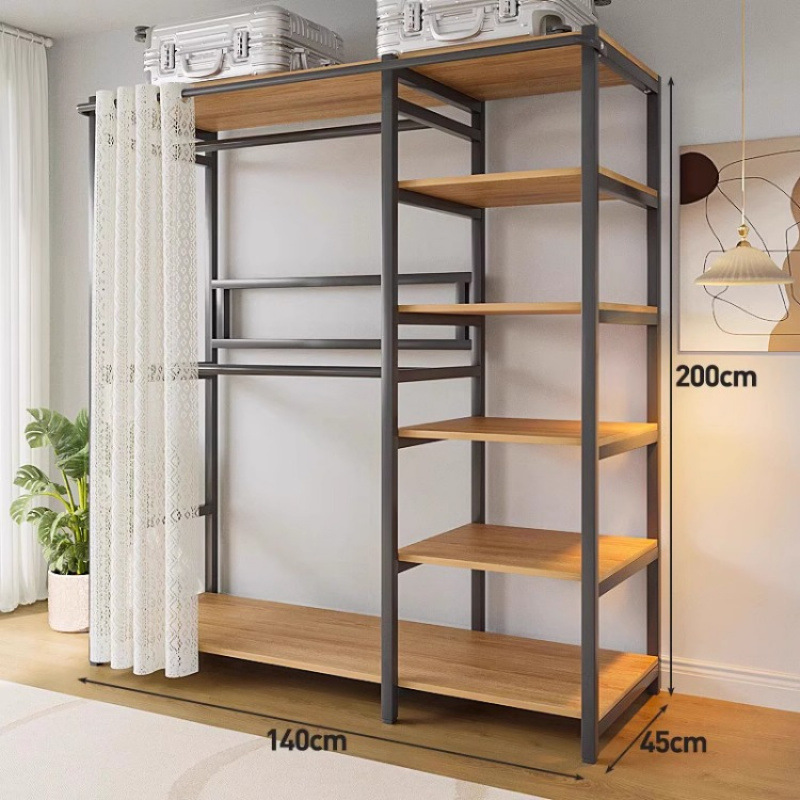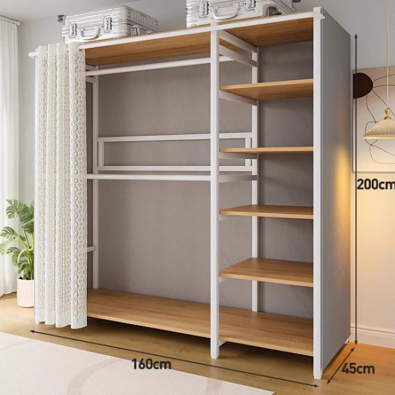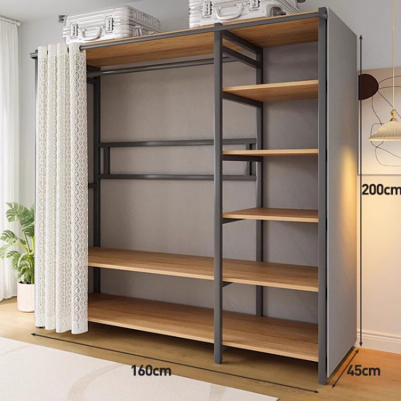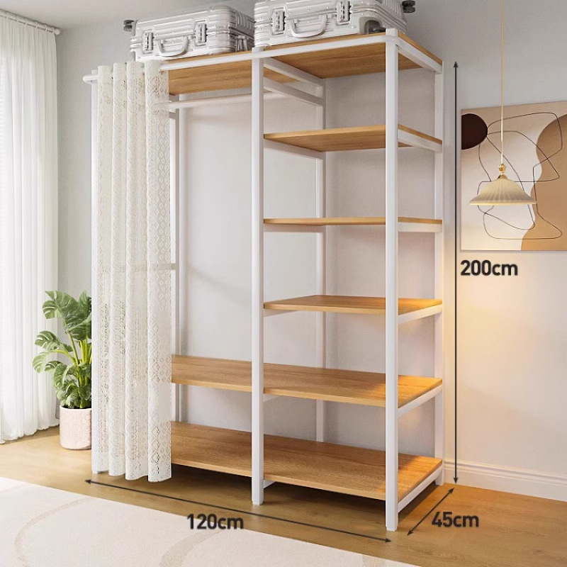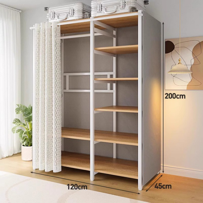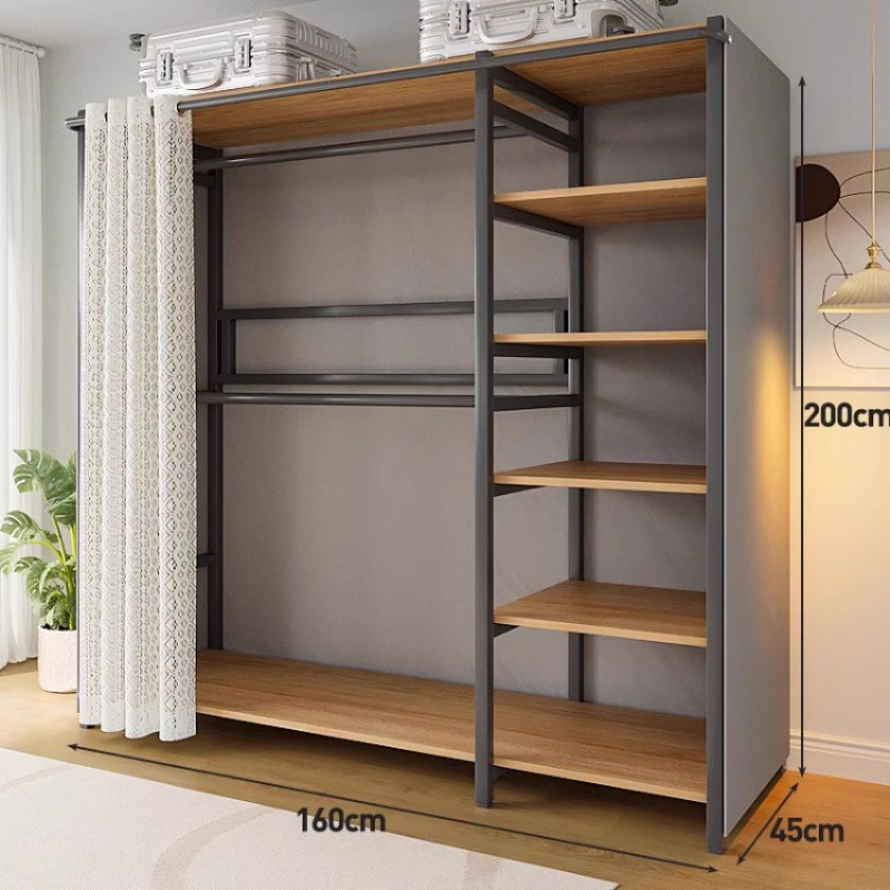 간단한 옷장 침실 홈 옷장 선반 코너 옷장 강력하고 내구성이 뛰어난 개방형 조립 금속 옷장