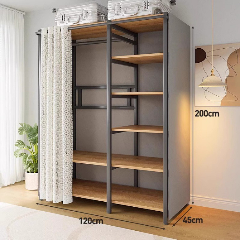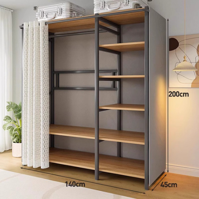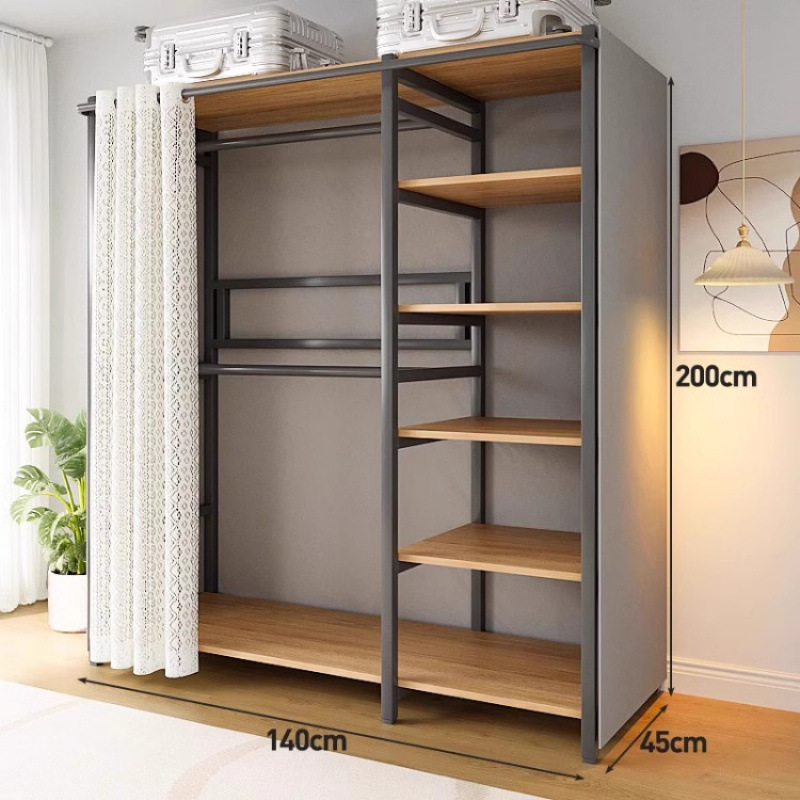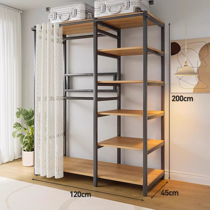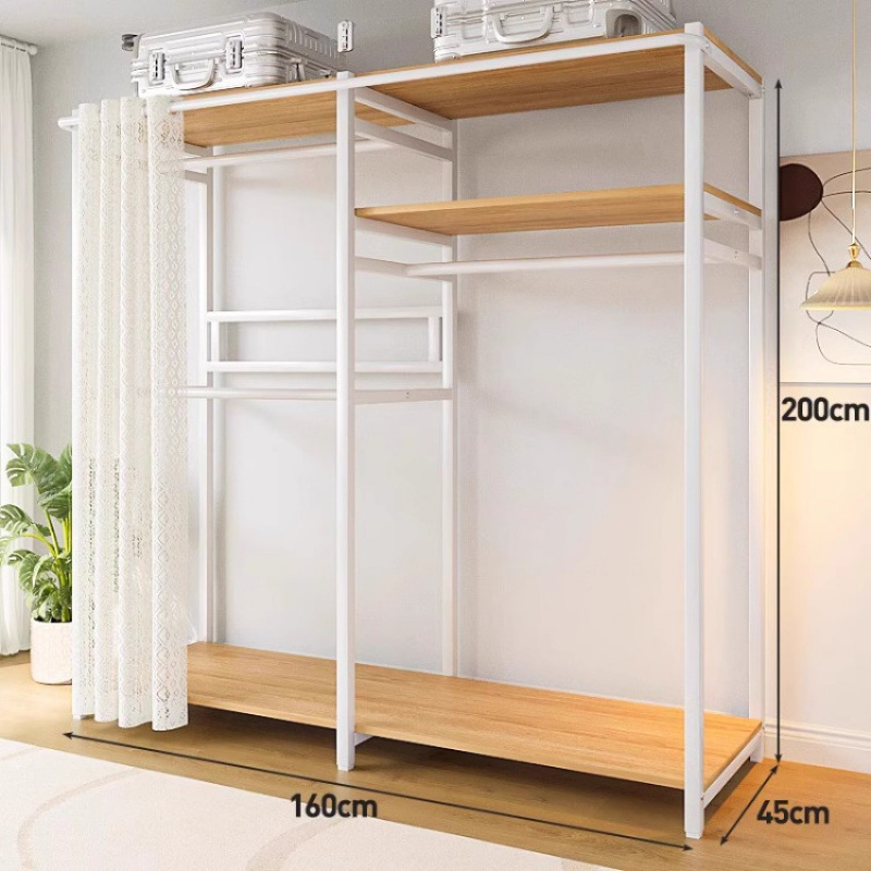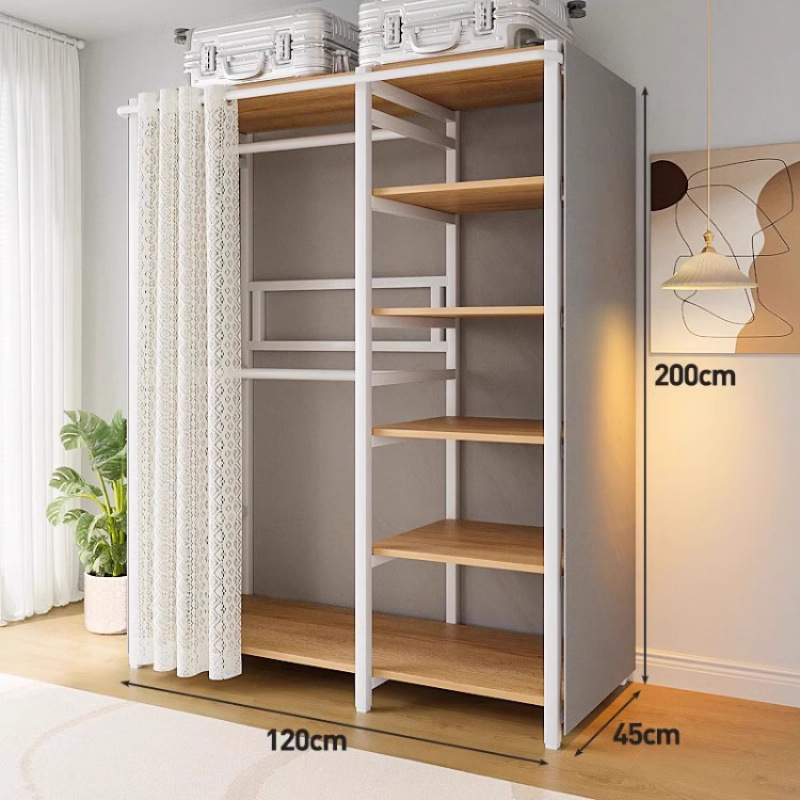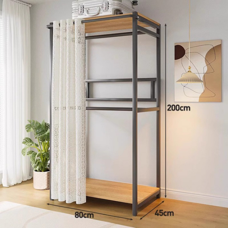 간단한 옷장 침실 홈 옷장 선반 코너 옷장 강력하고 내구성이 뛰어난 개방형 조립 금속 옷장