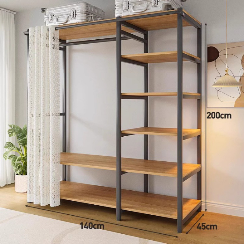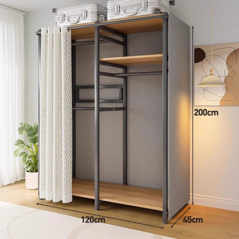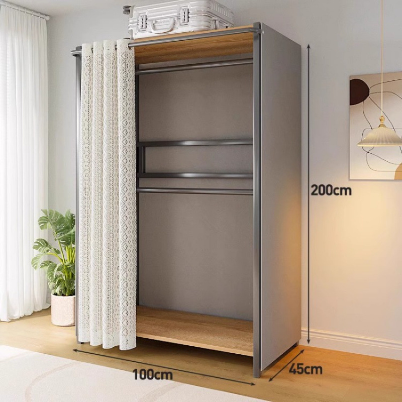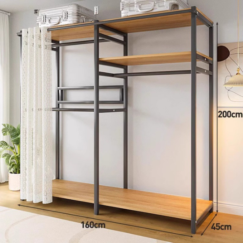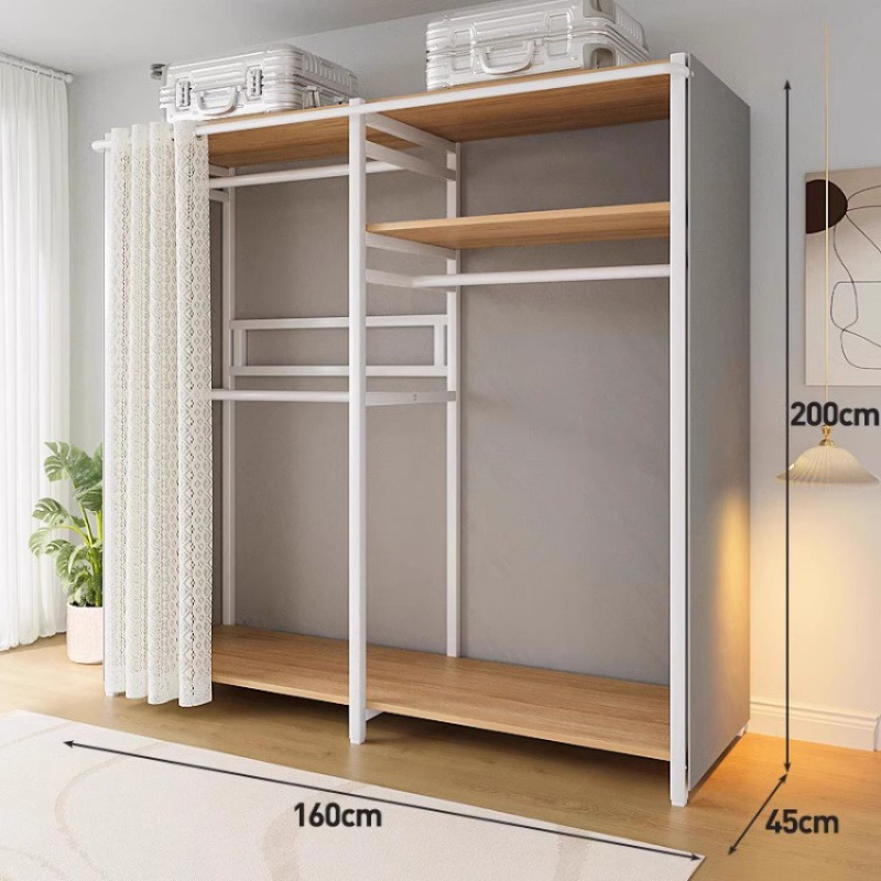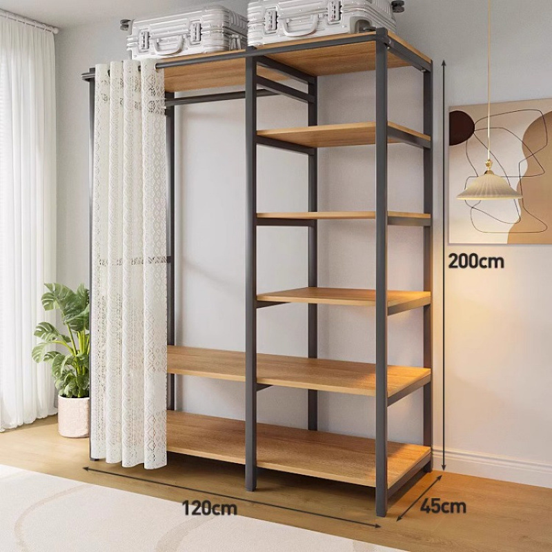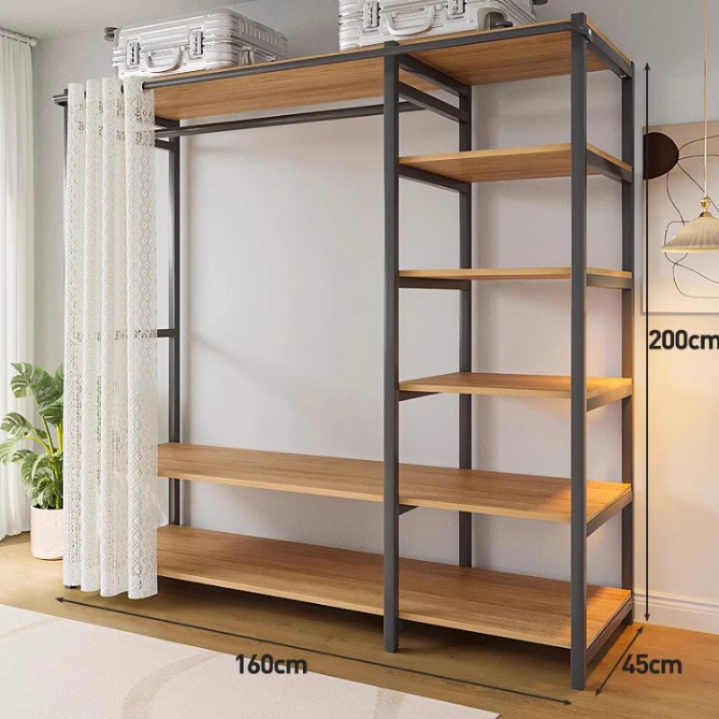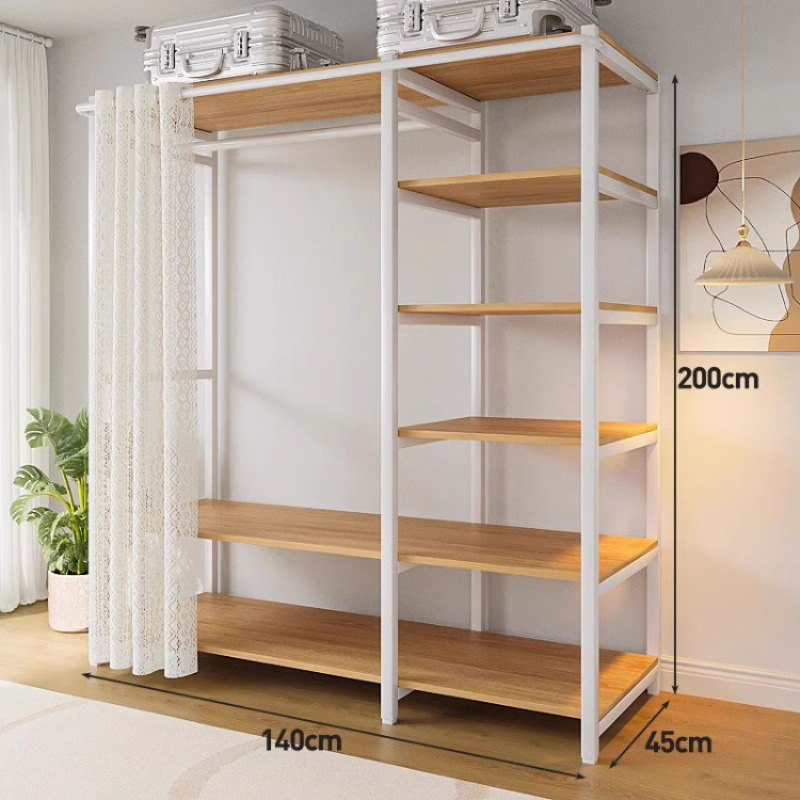 간단한 옷장 침실 홈 옷장 선반 코너 옷장 강력하고 내구성이 뛰어난 개방형 조립 금속 옷장