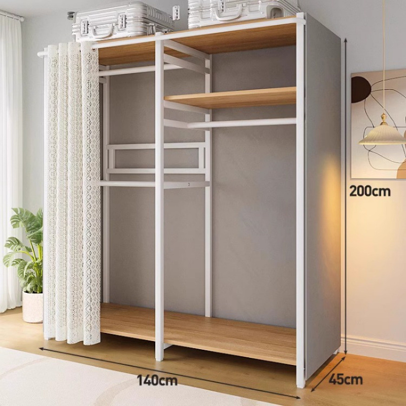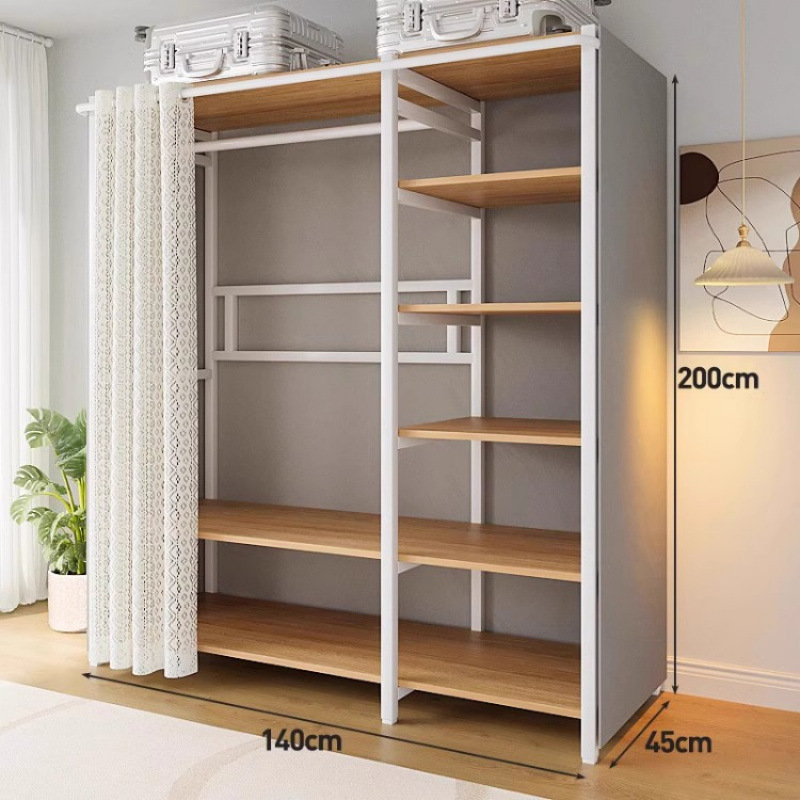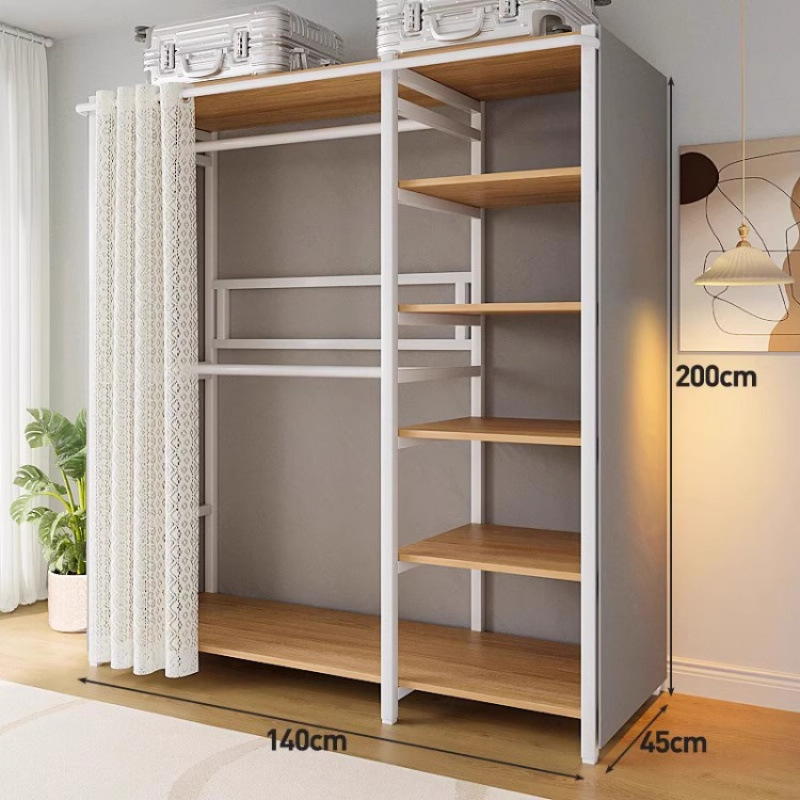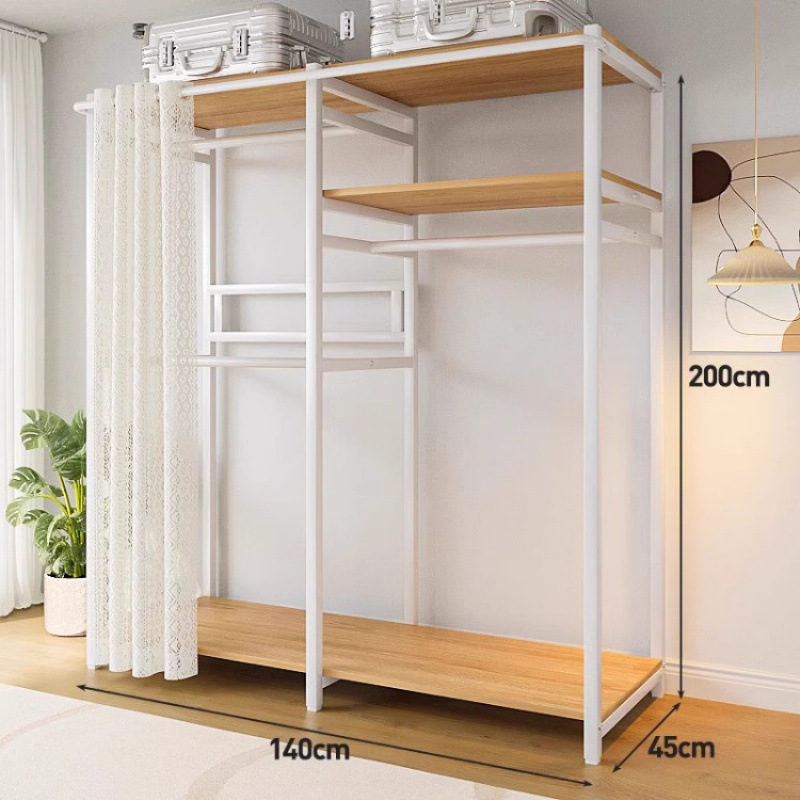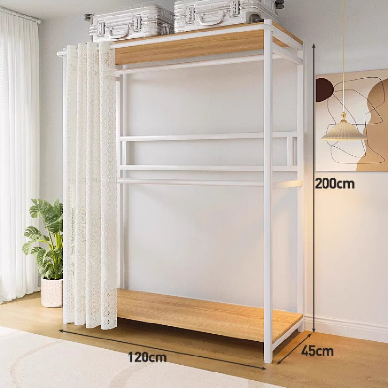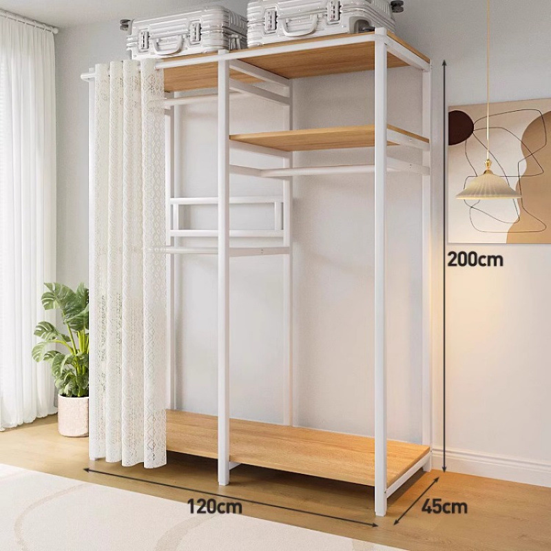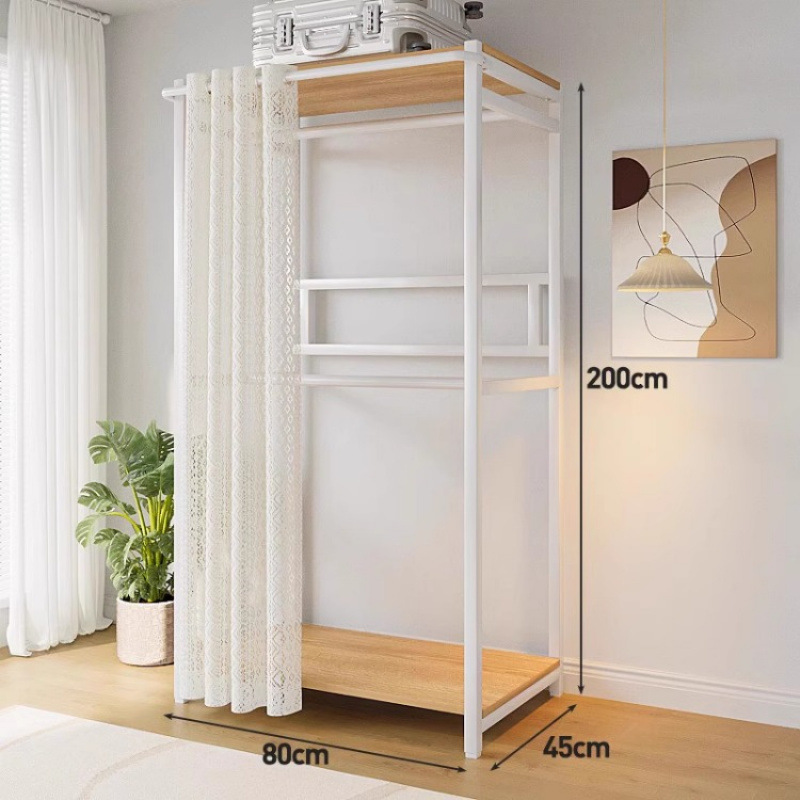 • [커튼 없는 모델 C] 80*45*200-화이트 프레임 철재 목재 조합