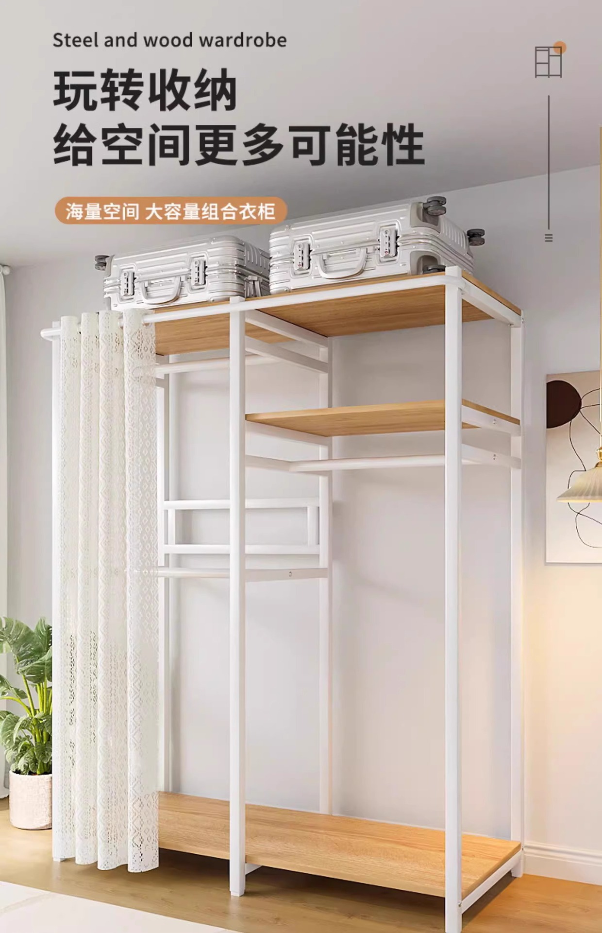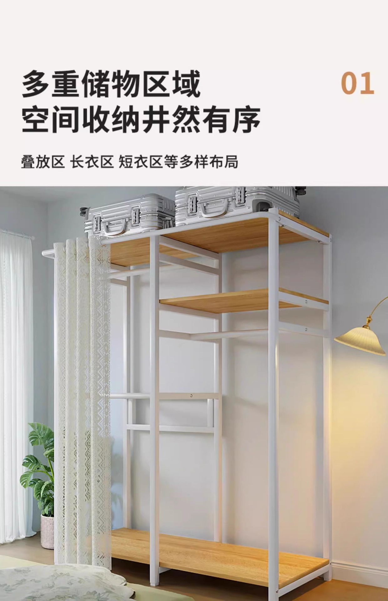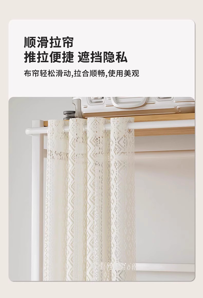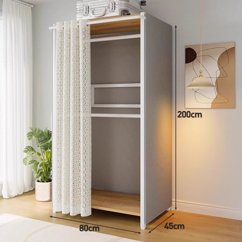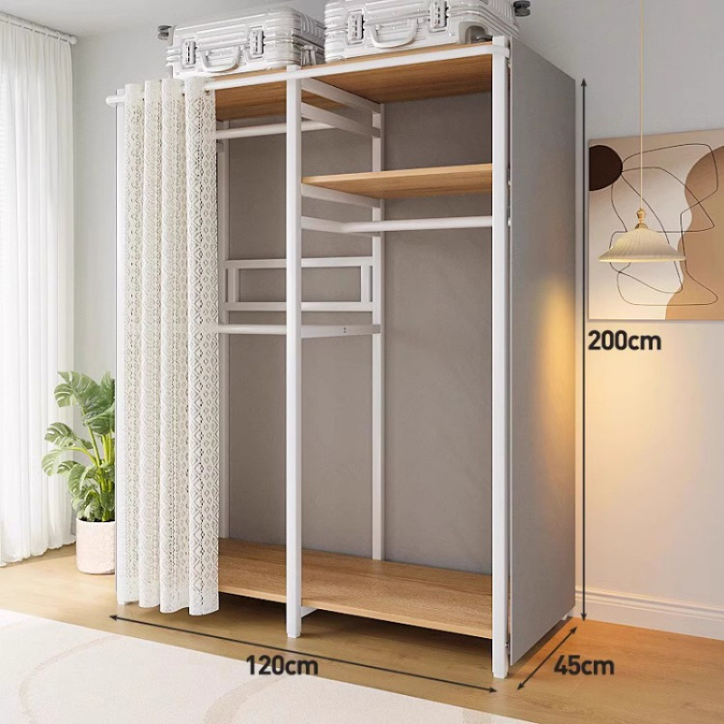 • [커튼 없는 모델 C] 80*45*200-화이트 프레임 철재 목재 조합