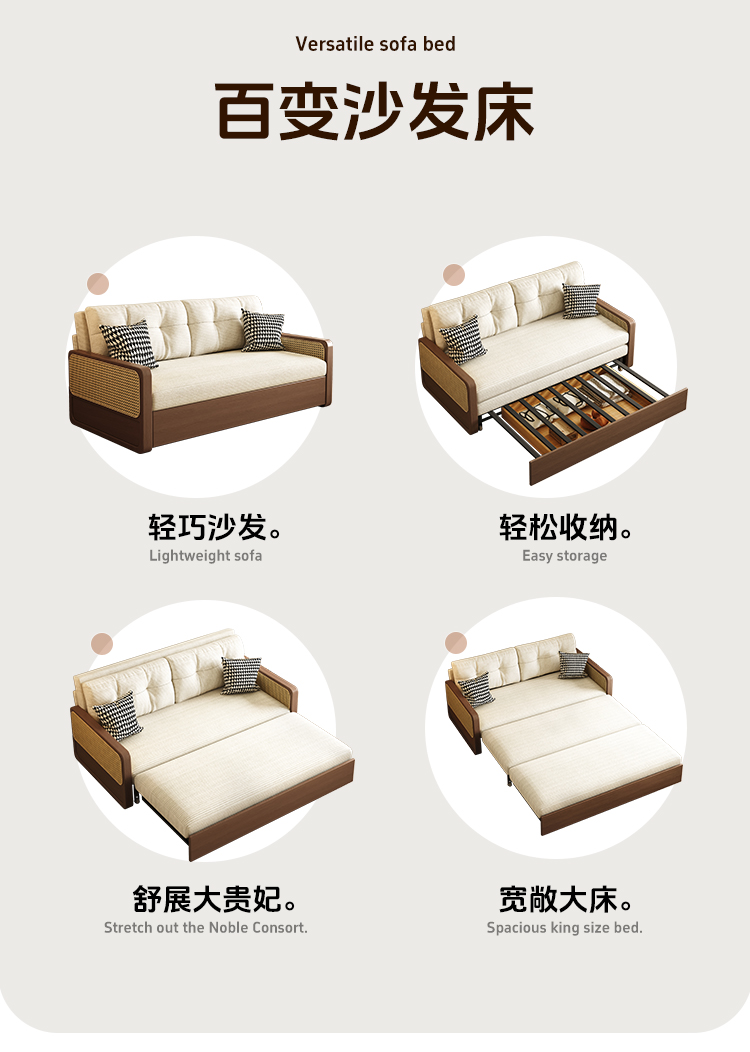 통나무 스타일 접이식 소파 베드, 원목, 소형 아파트, 좌식 및 수면 겸용, 거실, 서재, 더블 다기능 접이식 소파