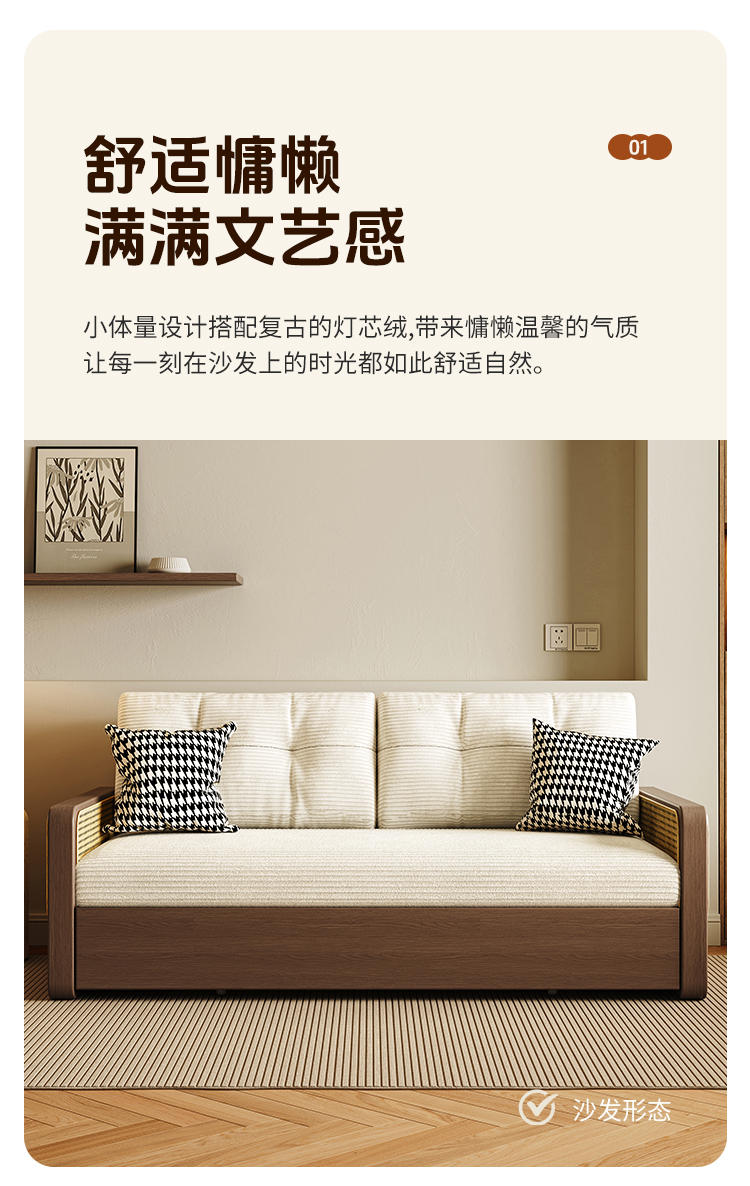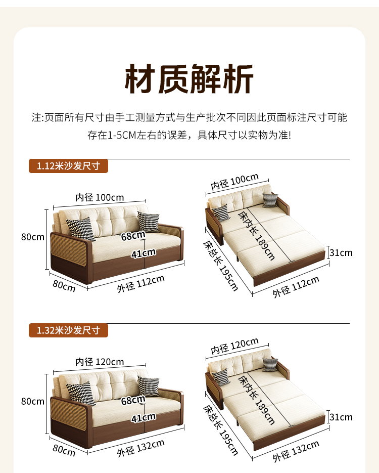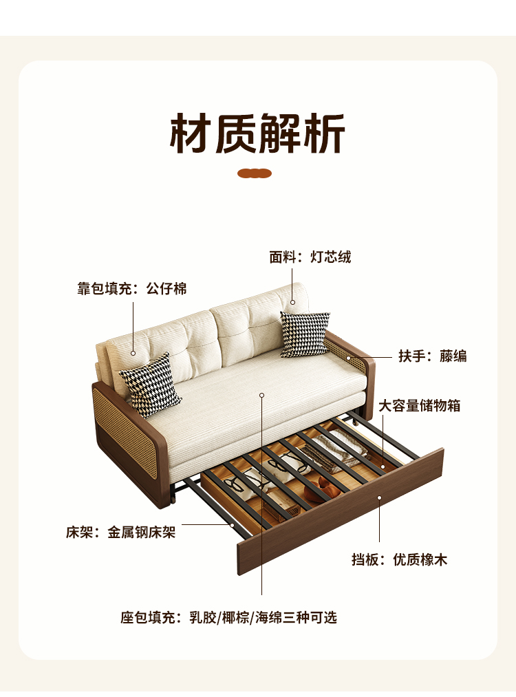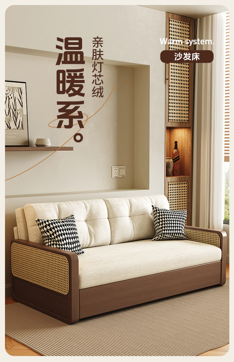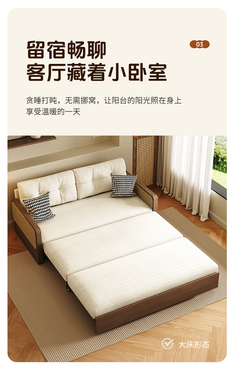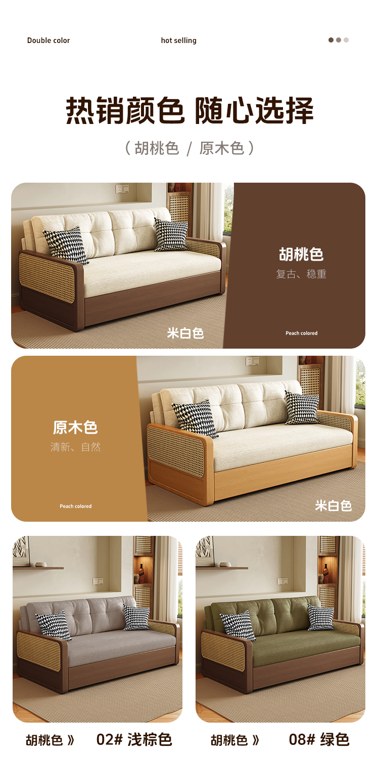 통나무 스타일 접이식 소파 베드, 원목, 소형 아파트, 좌식 및 수면 겸용, 거실, 서재, 더블 다기능 접이식 소파스토어 가기