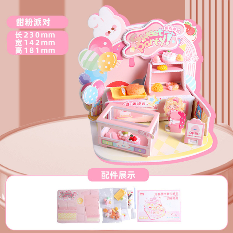 크리 에이 티브 DIY 캐빈 홈 생활 장면 건물 조립 정적 모델 수제 놀이 집 장난감스토어 가기