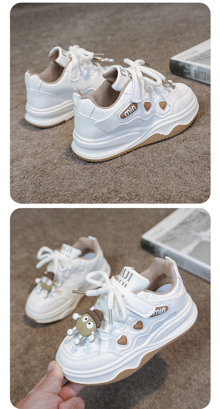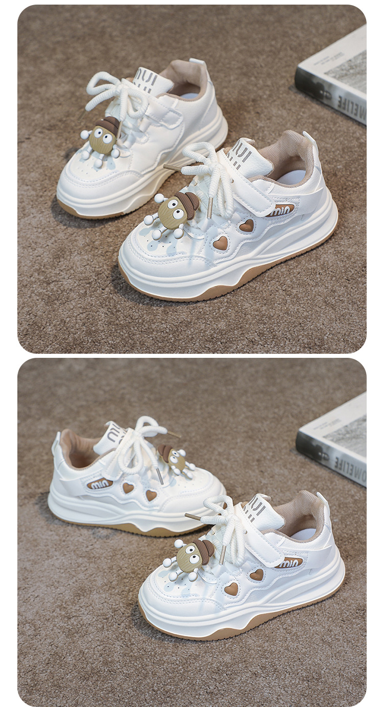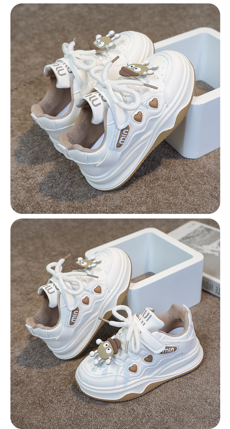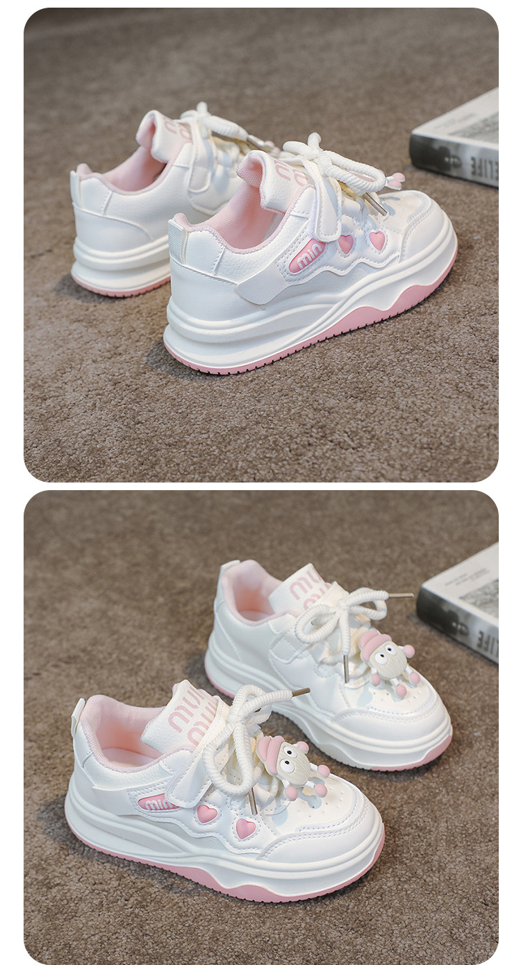 여자 운동화 2025 봄과 가을 새로운 한국어 스타일 어린이 운동화 가죽 통기성 중대형 어린이 학생 캐주얼 신발