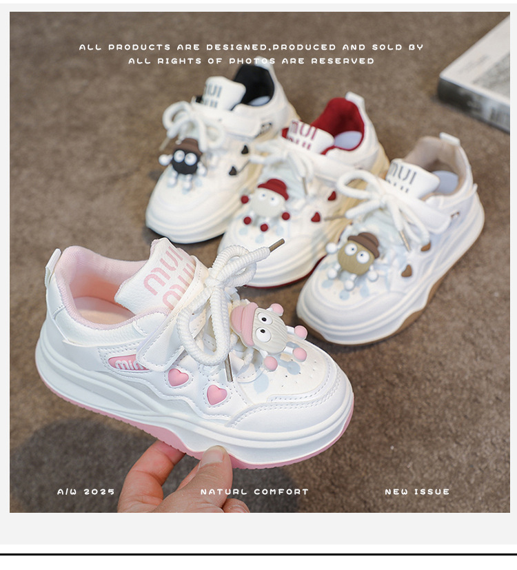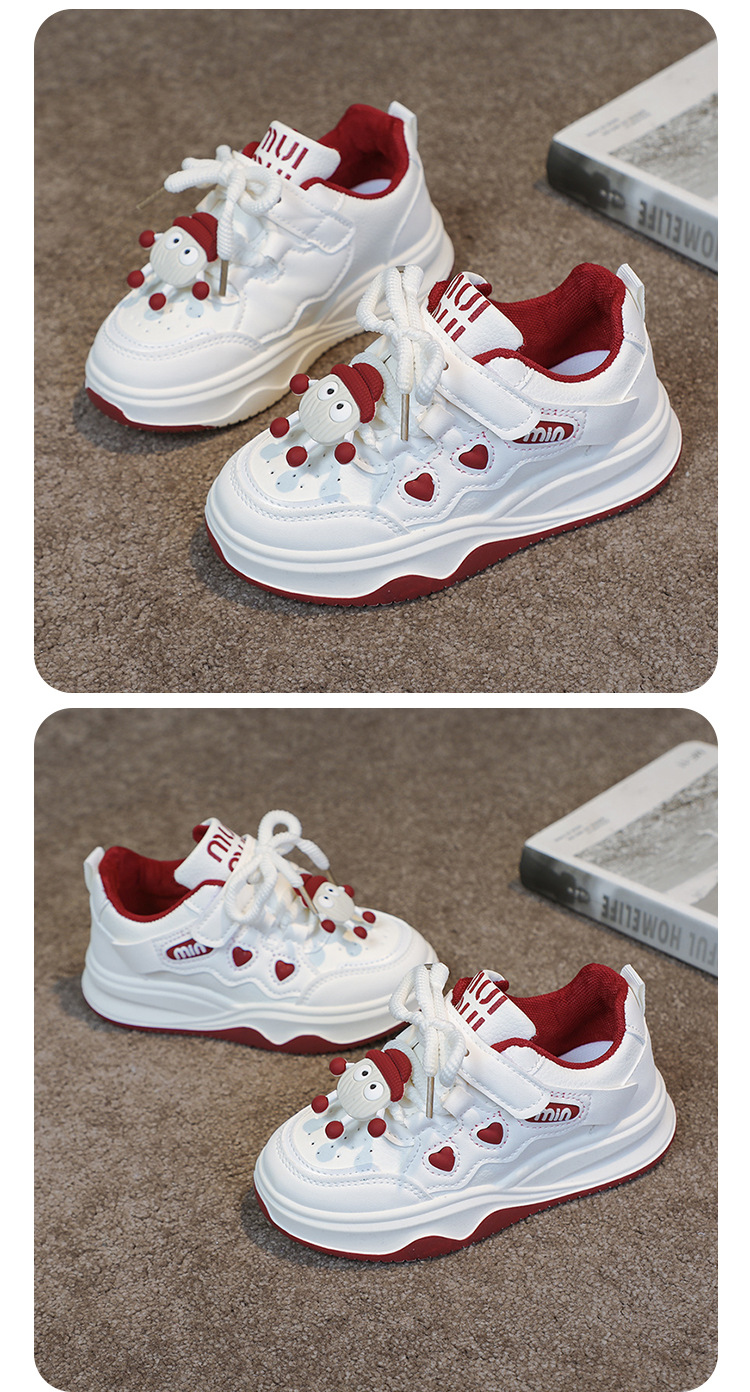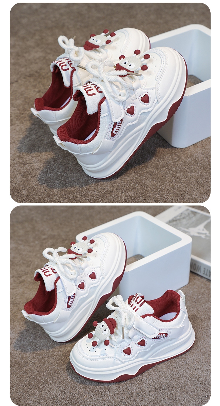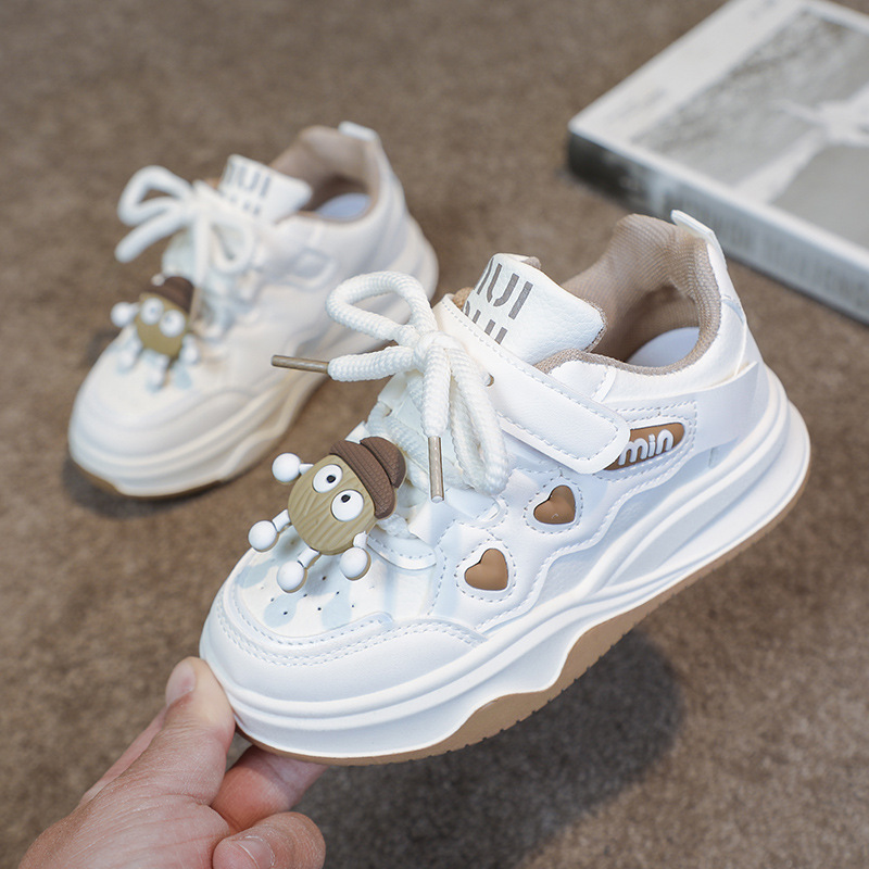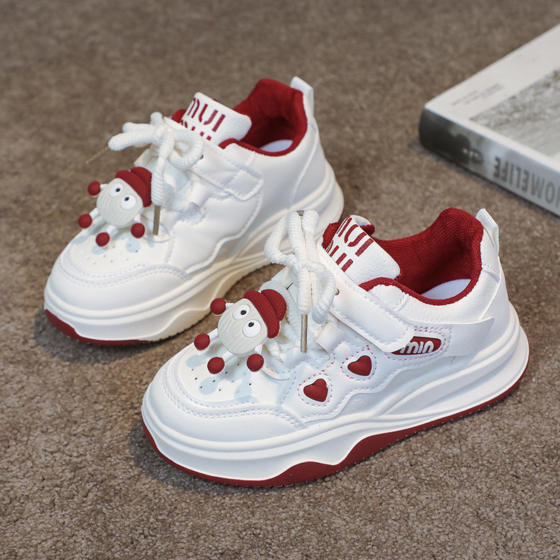여자 운동화 2025 봄과 가을 새로운 한국어 스타일 어린이 운동화 가죽 통기성 중대형 어린이 학생 캐주얼 신발