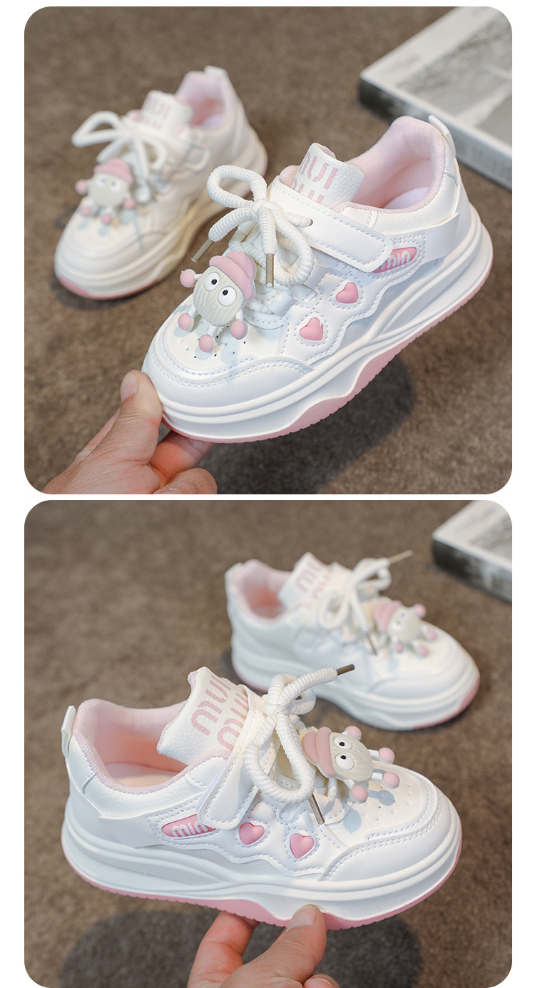 여자 운동화 2025 봄과 가을 새로운 한국어 스타일 어린이 운동화 가죽 통기성 중대형 어린이 학생 캐주얼 신발스토어 가기