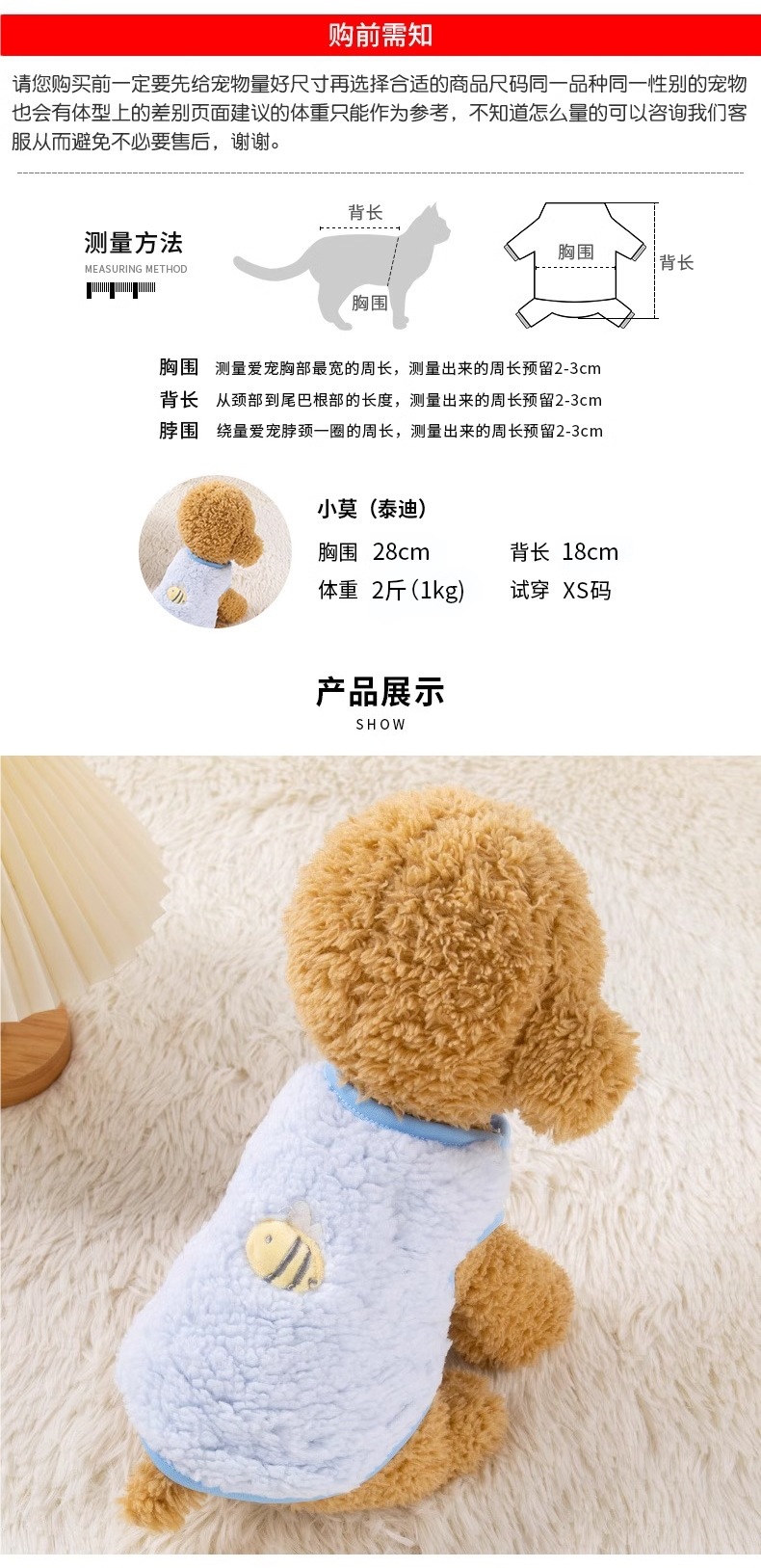 강아지, 고양이, 강아지, 작은 조끼, 티컵 강아지, 강아지 가정복, 테디 비숑, 가을 겨울 따뜻한 강아지 옷