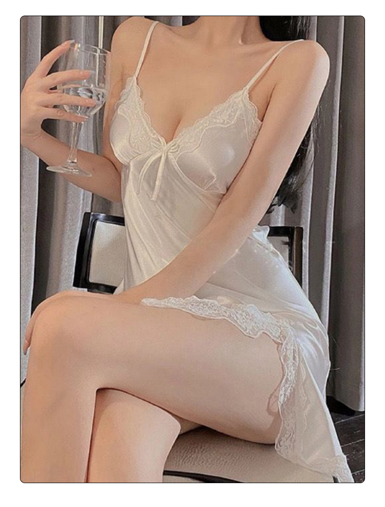 여름 새틴 쉬폰 서스펜더 잠옷 봄과 여름 개인 레이스 섹시한 잠옷 여성의 뜨거운 유혹 홈웨어 순수한 욕망