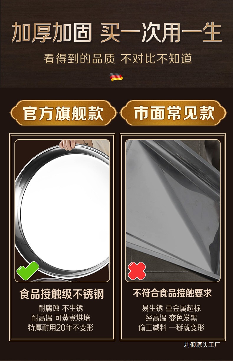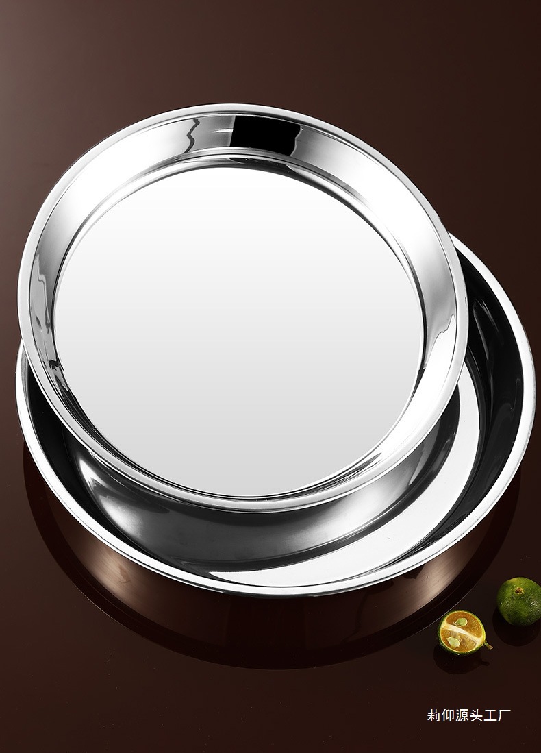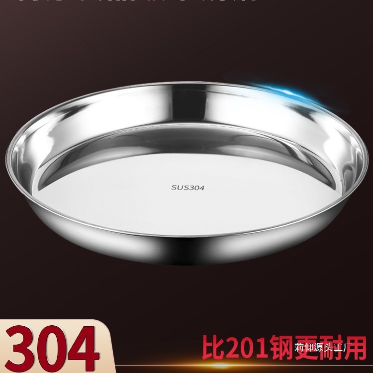 두꺼운 강철 접시 304 스테인레스 스틸 플랫 바닥 대형 트레이 가정용 상업용 원형 준비 케이크 생선 만두 Niuliang