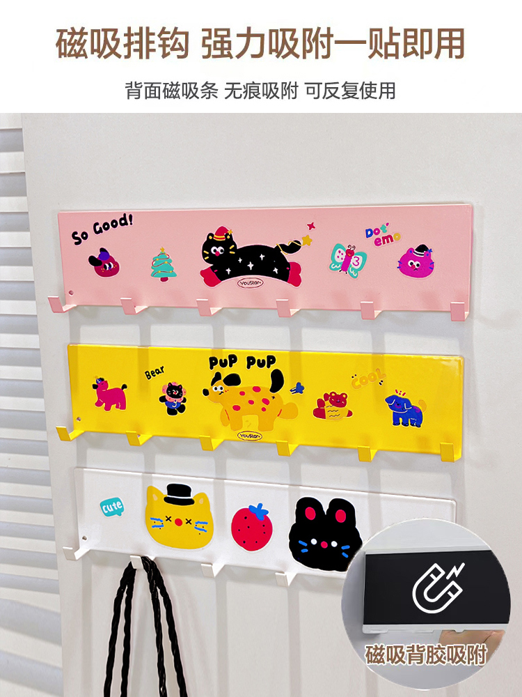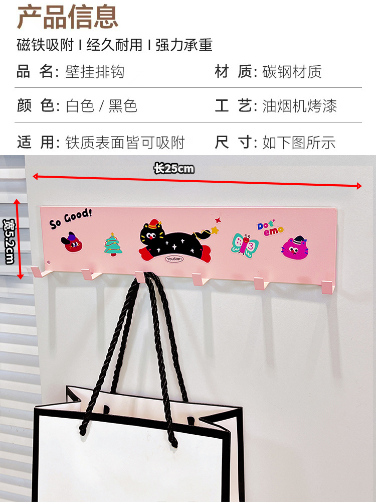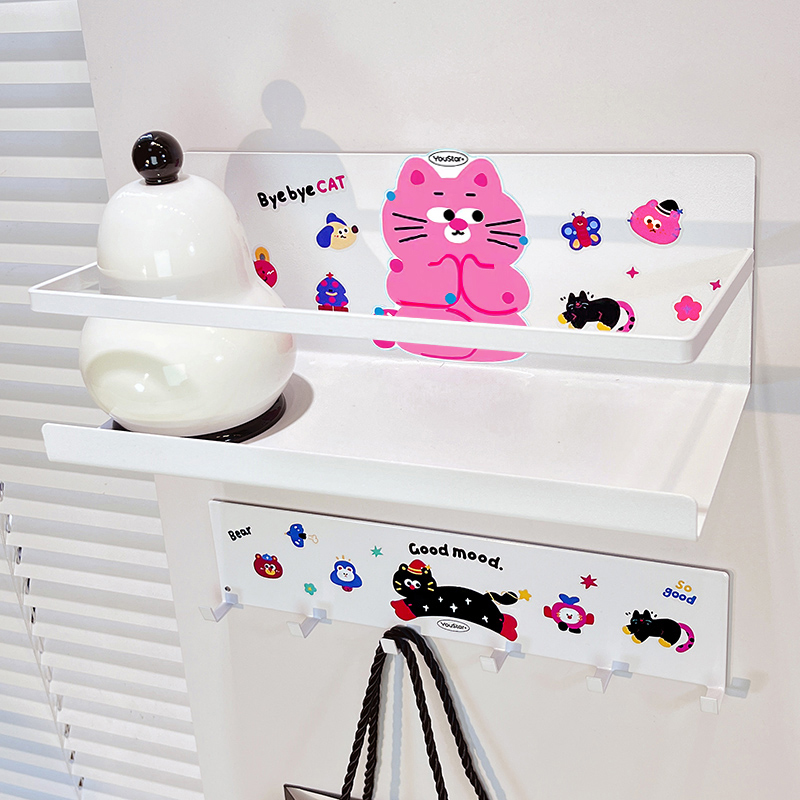 • ♭ζζ♭ζζ白色收纳架 排钩 跪地粉猫贴纸黑跑猫贴纸【磁吸款】♭ζζ♭ζζ