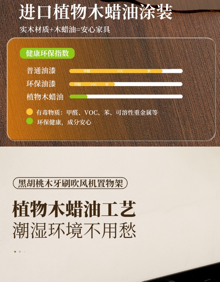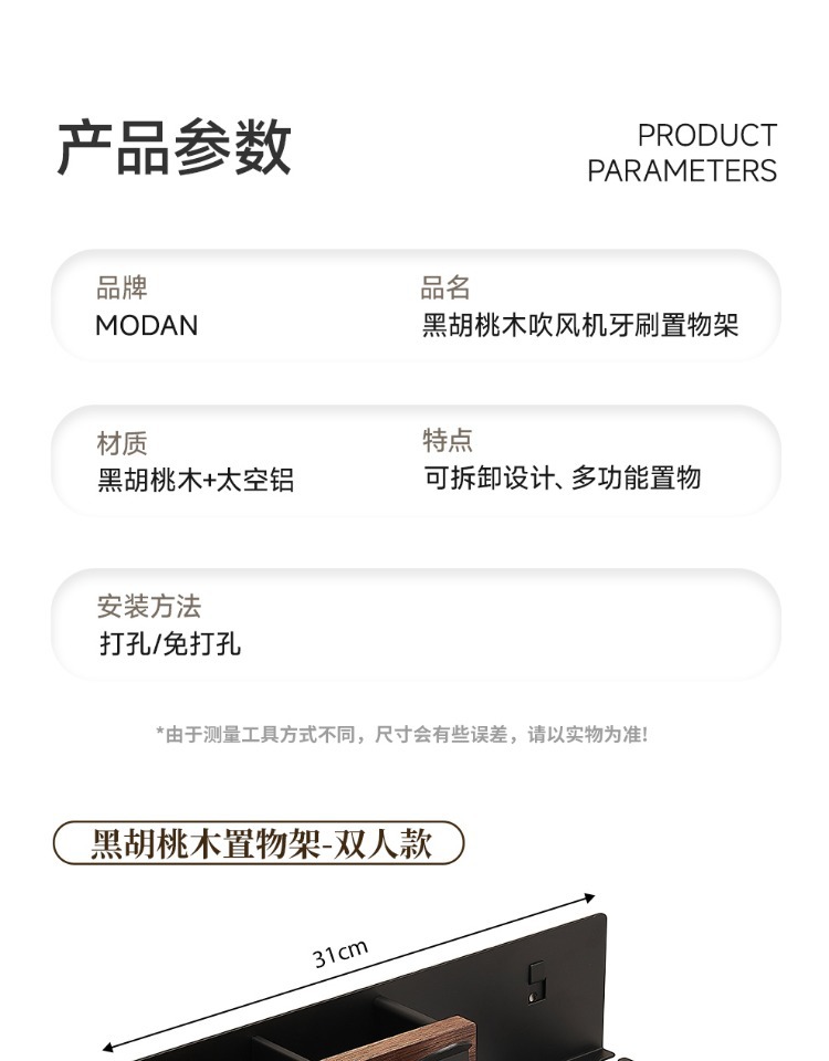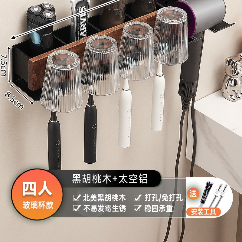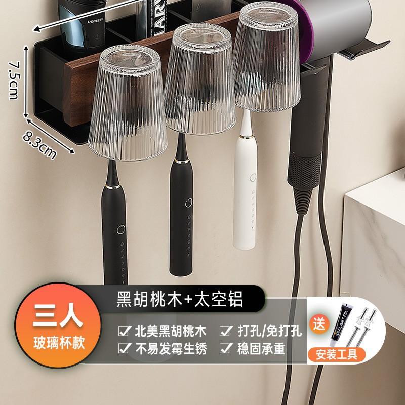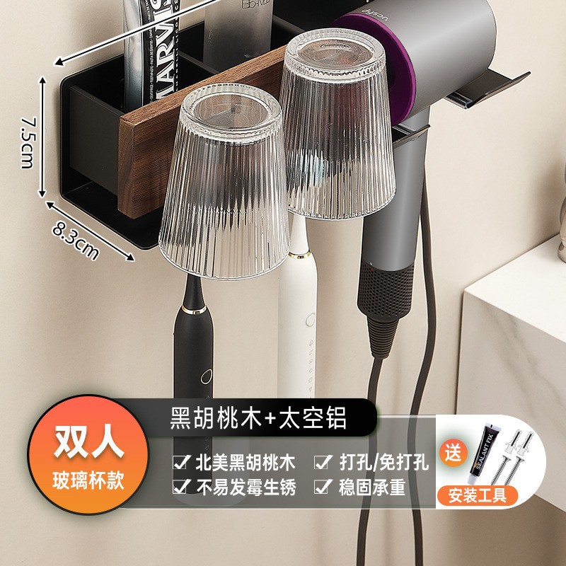 • 블랙 월넛 [이중 칫솔 홀더 헤어 드라이어] 유리 컵 포함