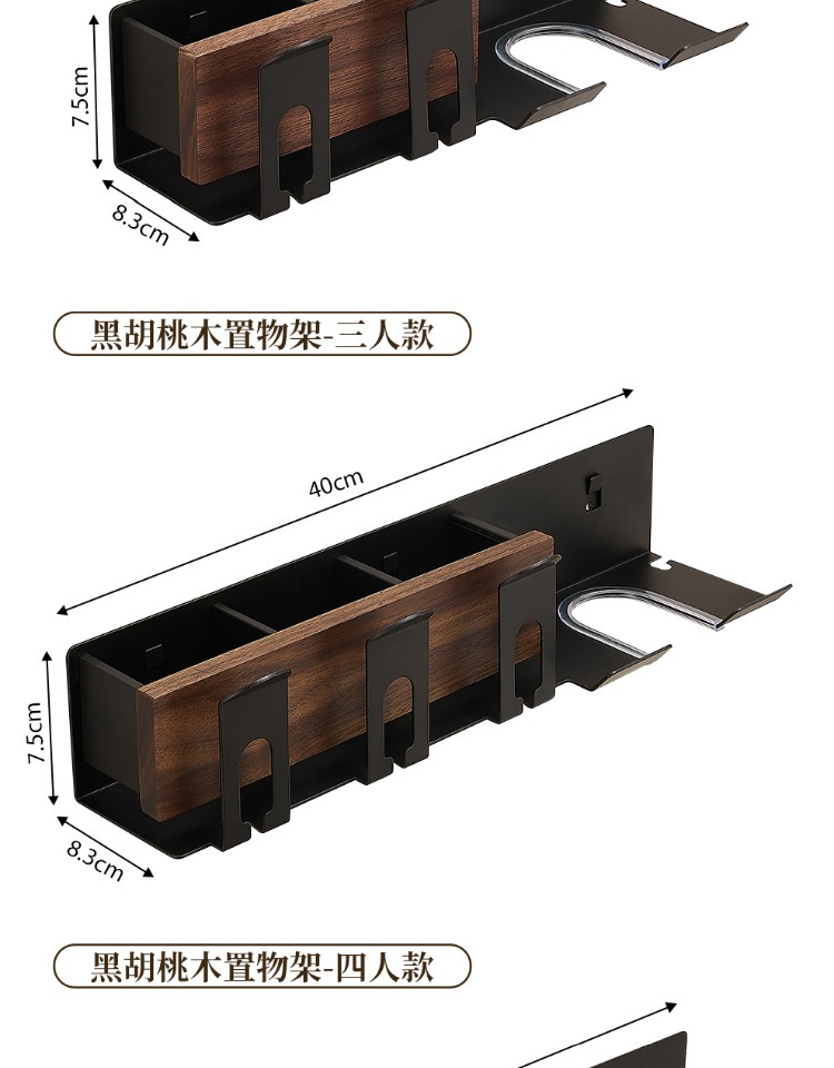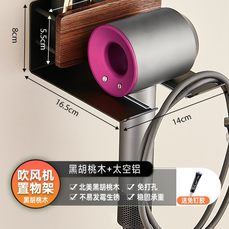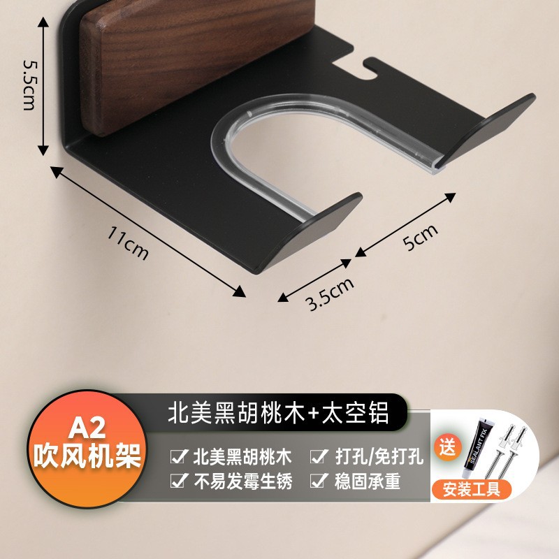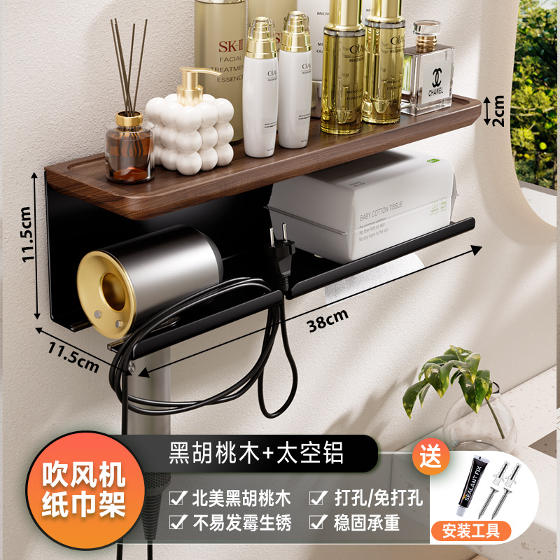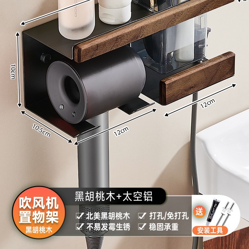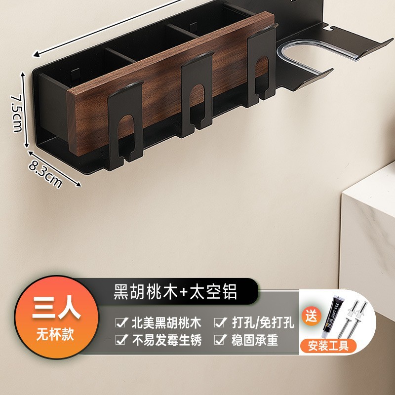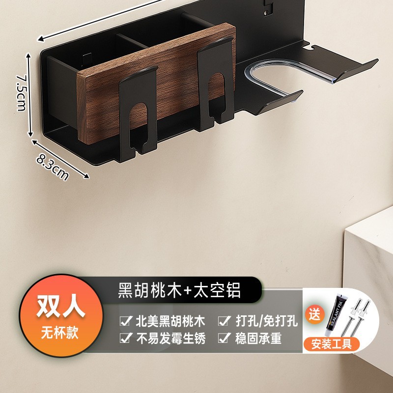 호두나무 전동 칫솔 컵 구강 세정제 컵 선반 수납 선반 헤어드라이어 홀더 벽걸이형 욕실 펀치 없음