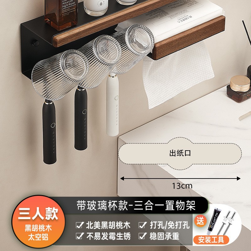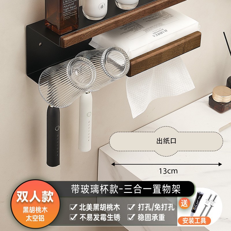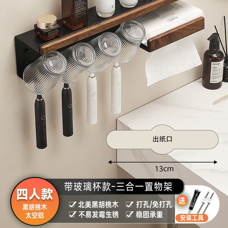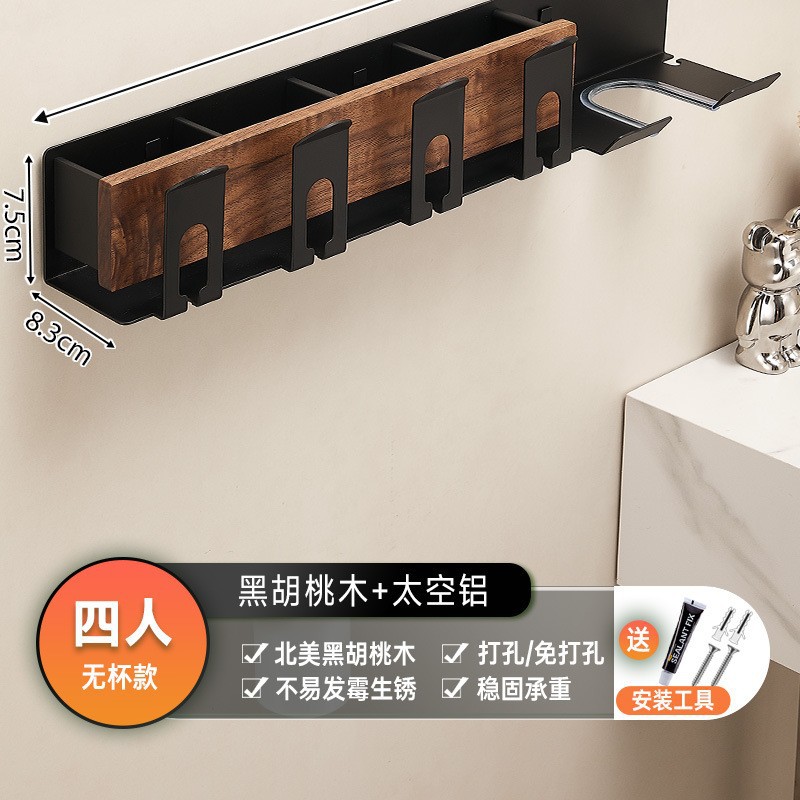 호두나무 전동 칫솔 컵 구강 세정제 컵 선반 수납 선반 헤어드라이어 홀더 벽걸이형 욕실 펀치 없음스토어 가기