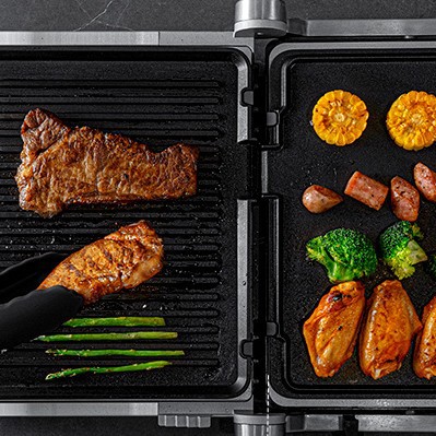스테인레스 스틸 다기능 전기 그릴 온도 조절 가능 180 ° 티드 그릴 프라이드 스테이크 파니니 핫 샌드위치