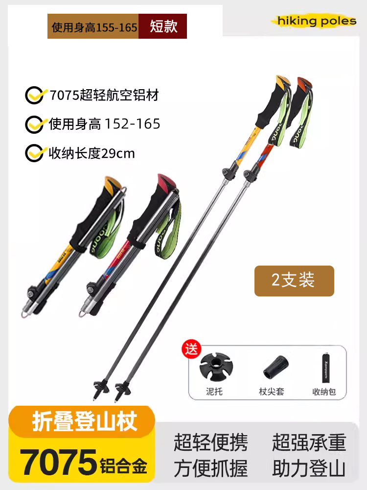 경량 개폐식 접이식 하이킹 스틱 야외 하이킹 휴대용 어린이 및 여성 미니 탄소 지팡이 등산 장비
