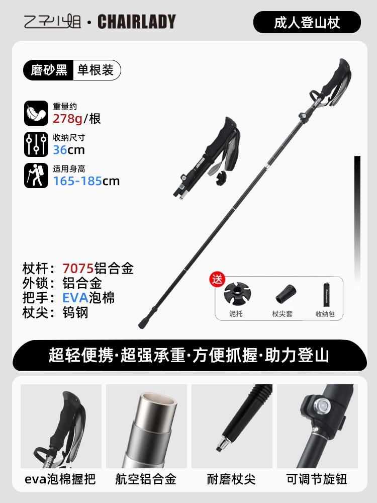 경량 개폐식 접이식 하이킹 스틱 야외 하이킹 휴대용 어린이 및 여성 미니 탄소 지팡이 등산 장비스토어 가기