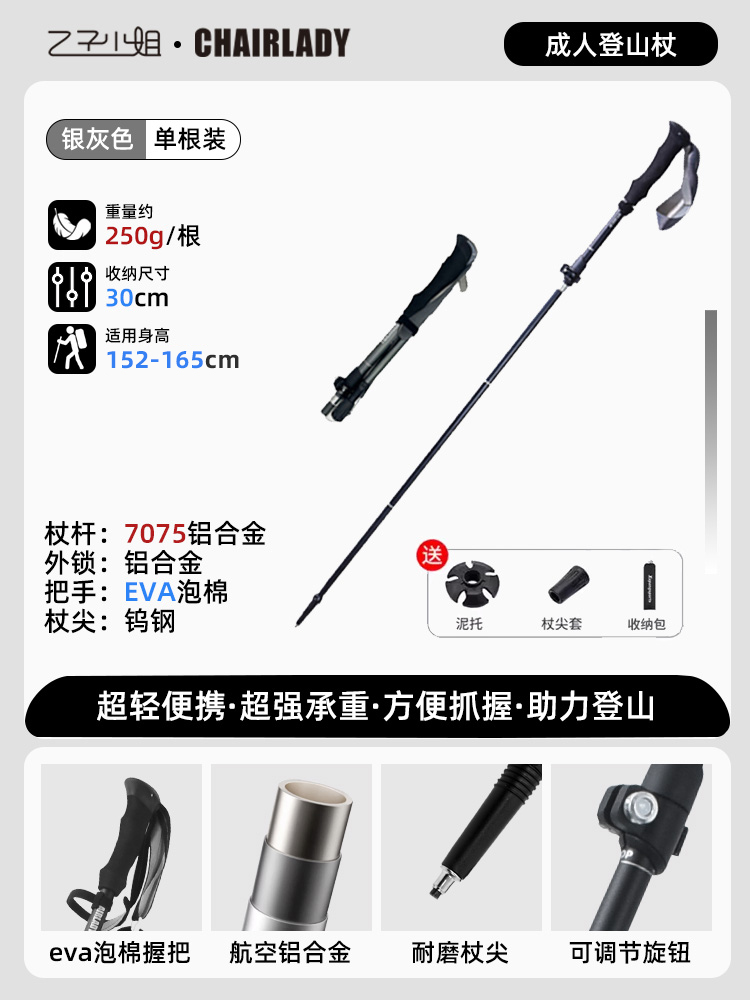 • 업그레이드 모델-접이식 지팡이 [165-185]-실버 그레이
