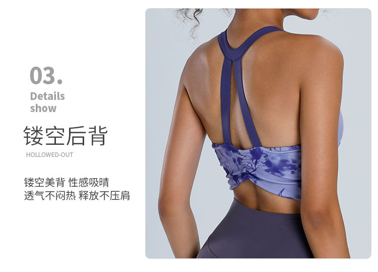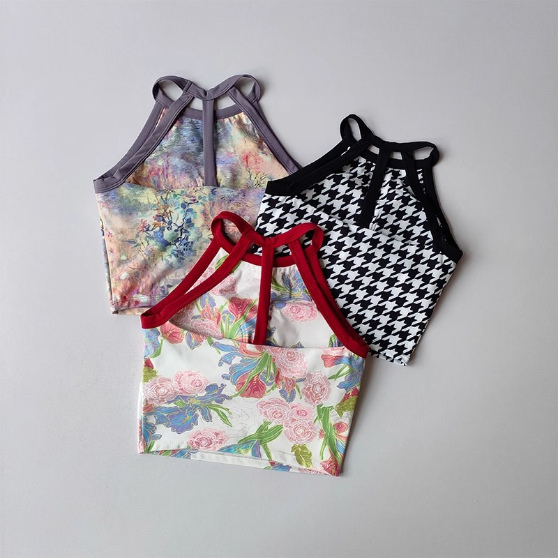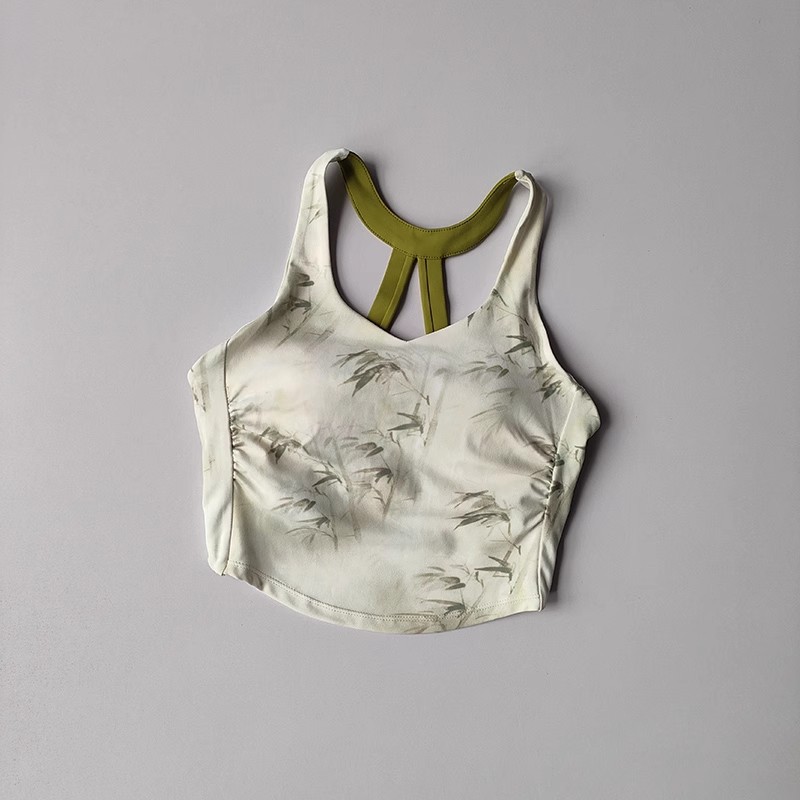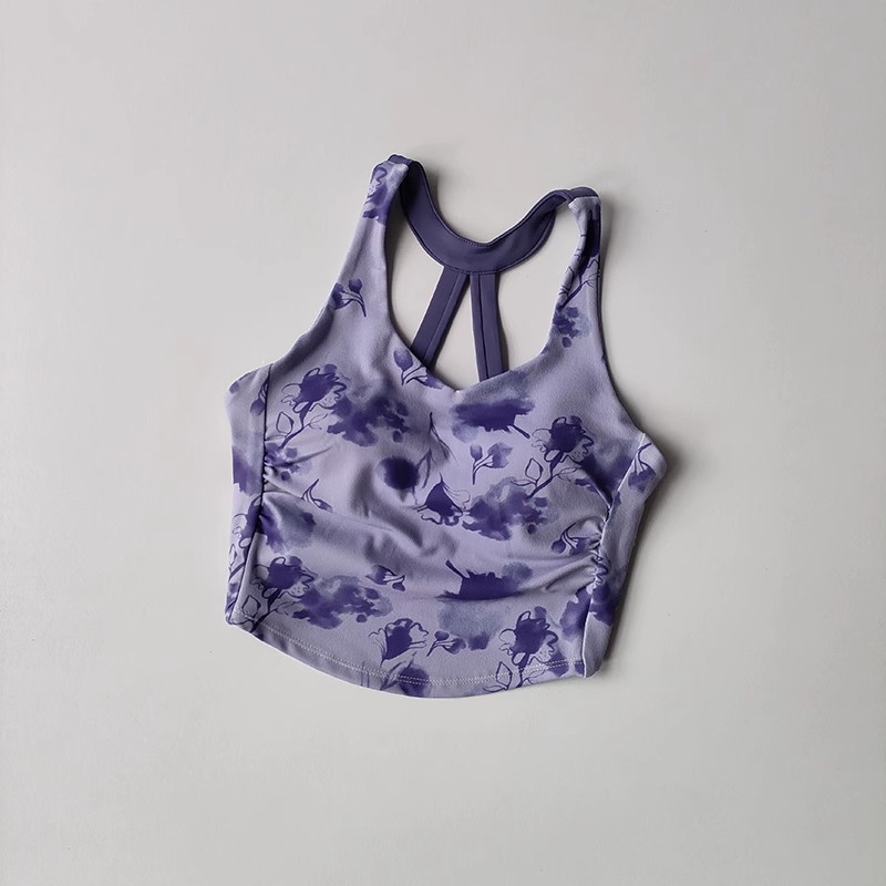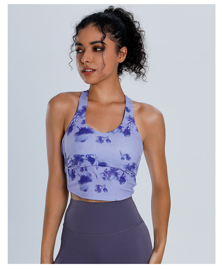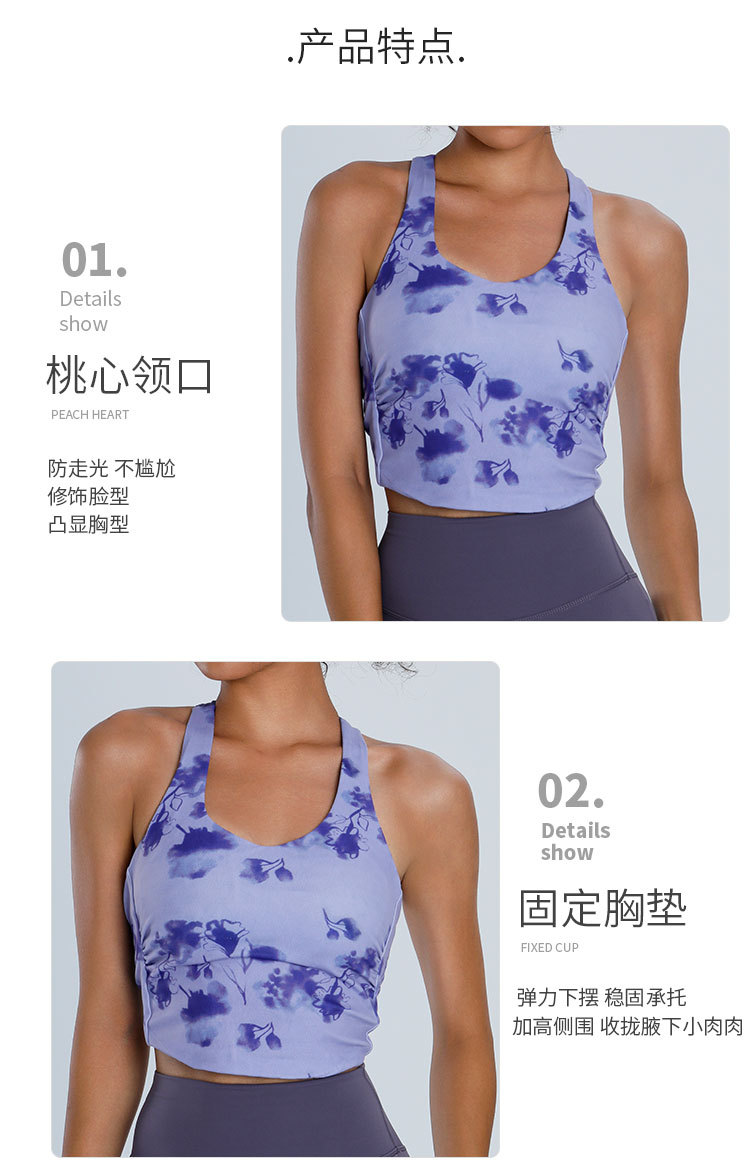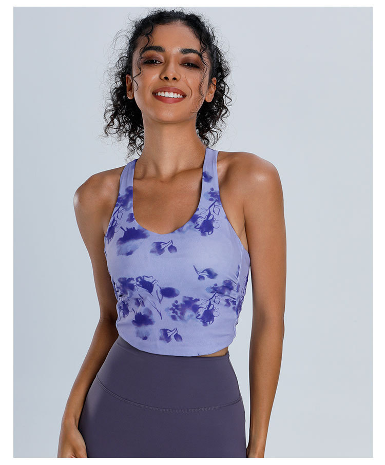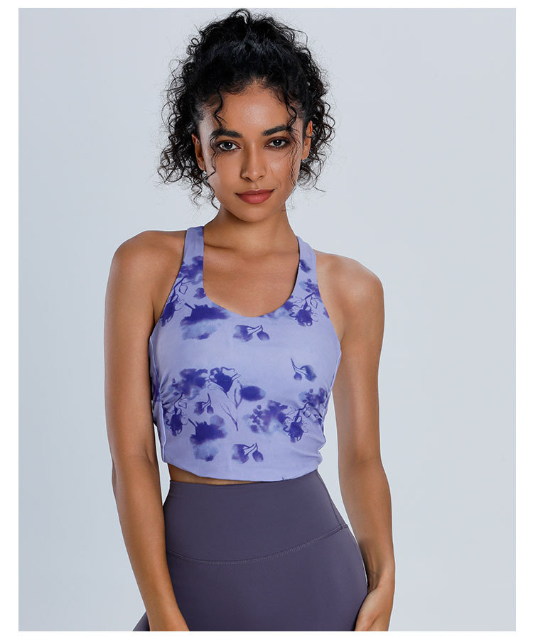 가슴 패드가 있는 프린트 요가 조끼, 여성용 심리스 스포츠 백 브라, 조끼 스타일 스퀘어 넥 서스펜더 요가 브라스토어 가기
