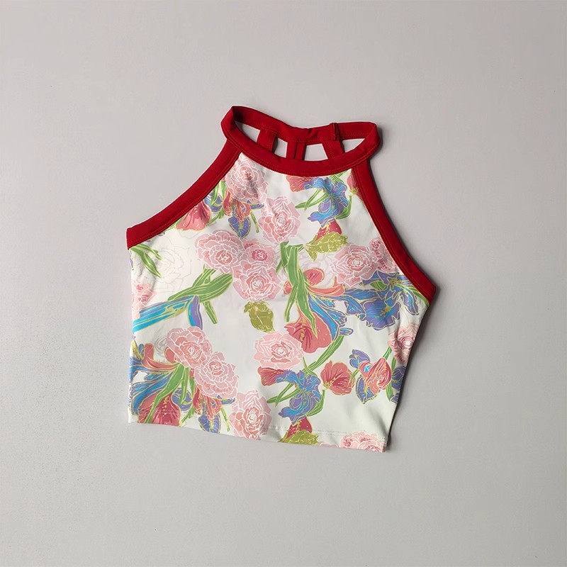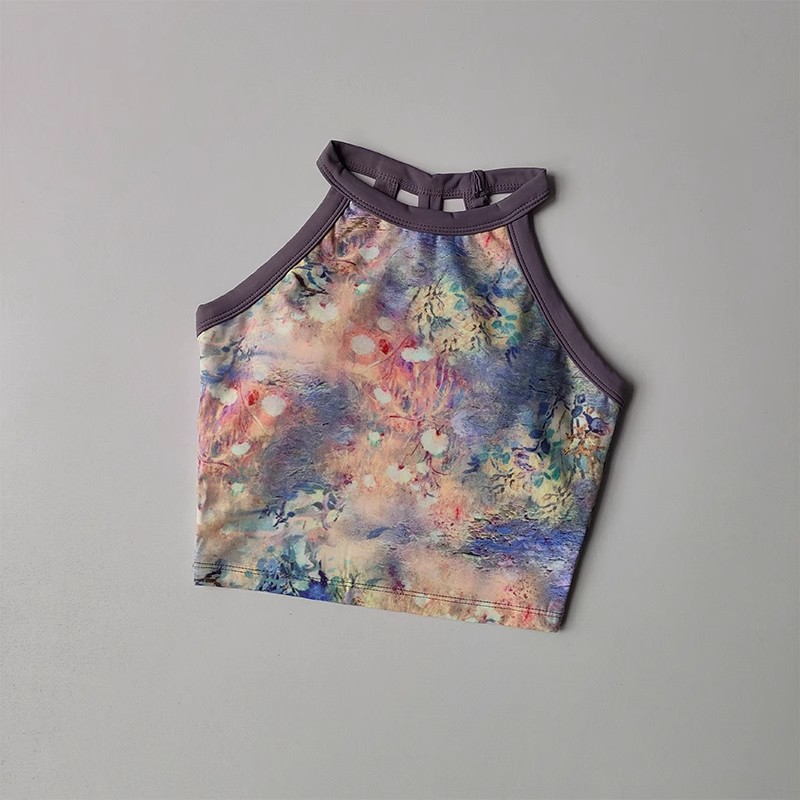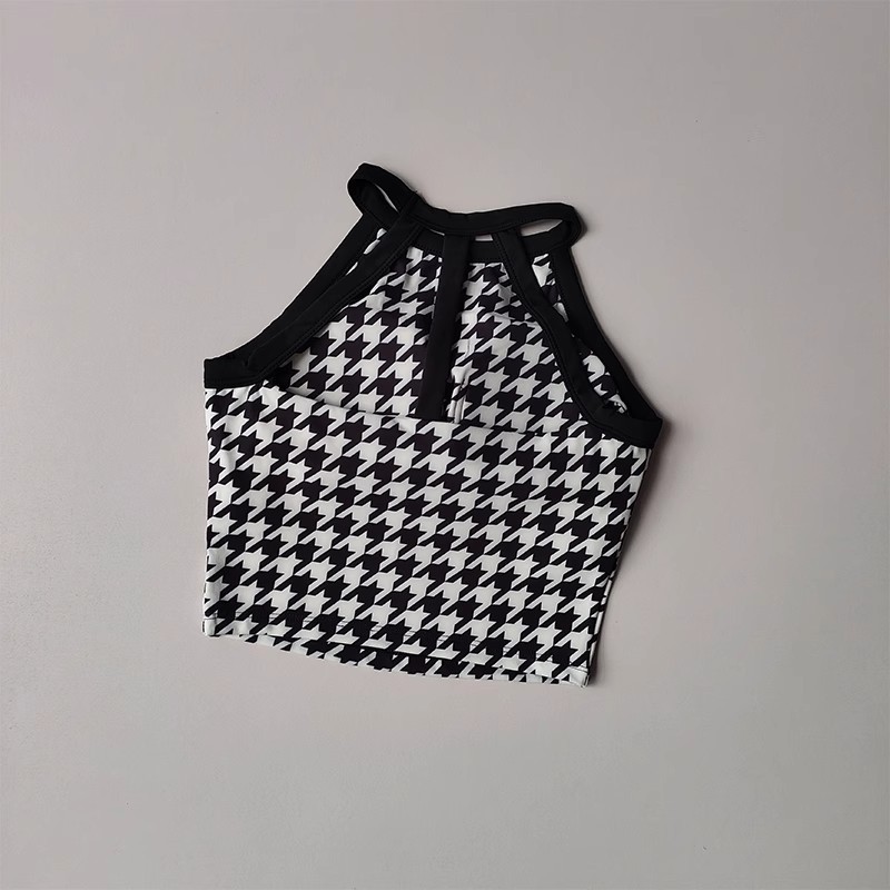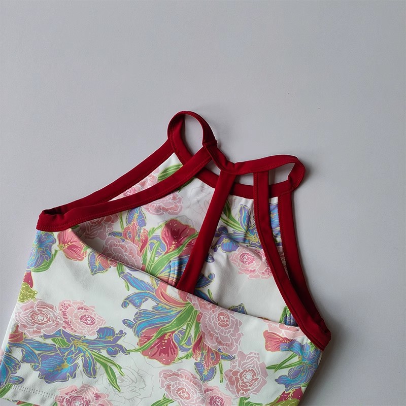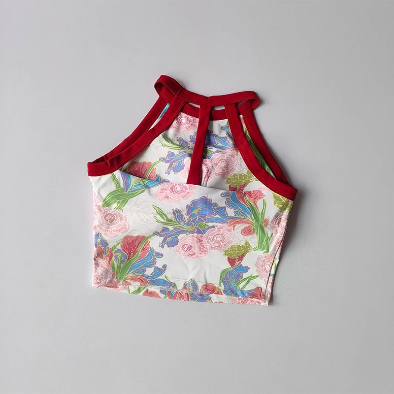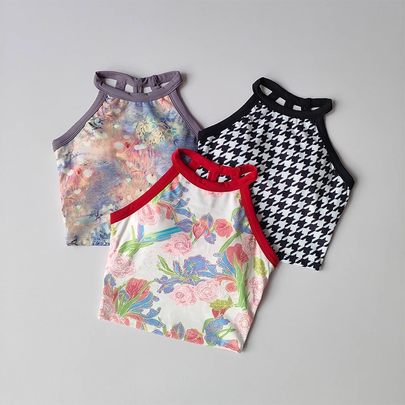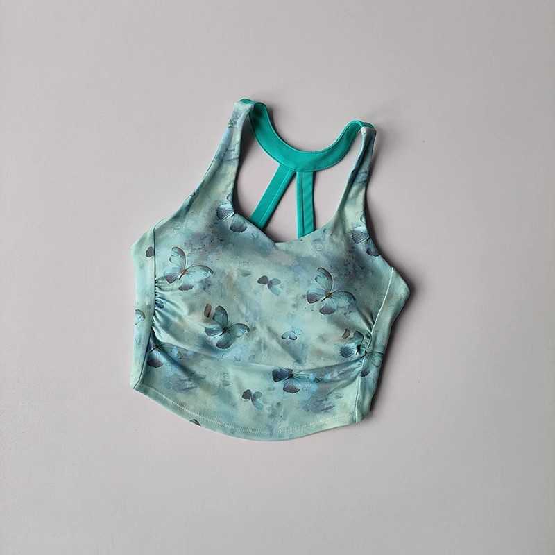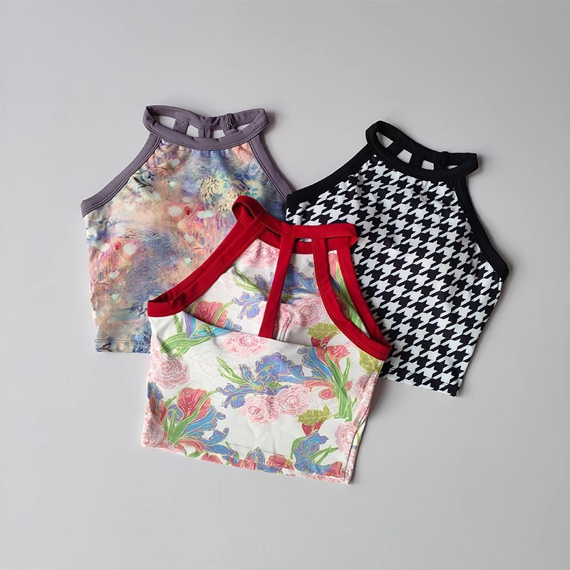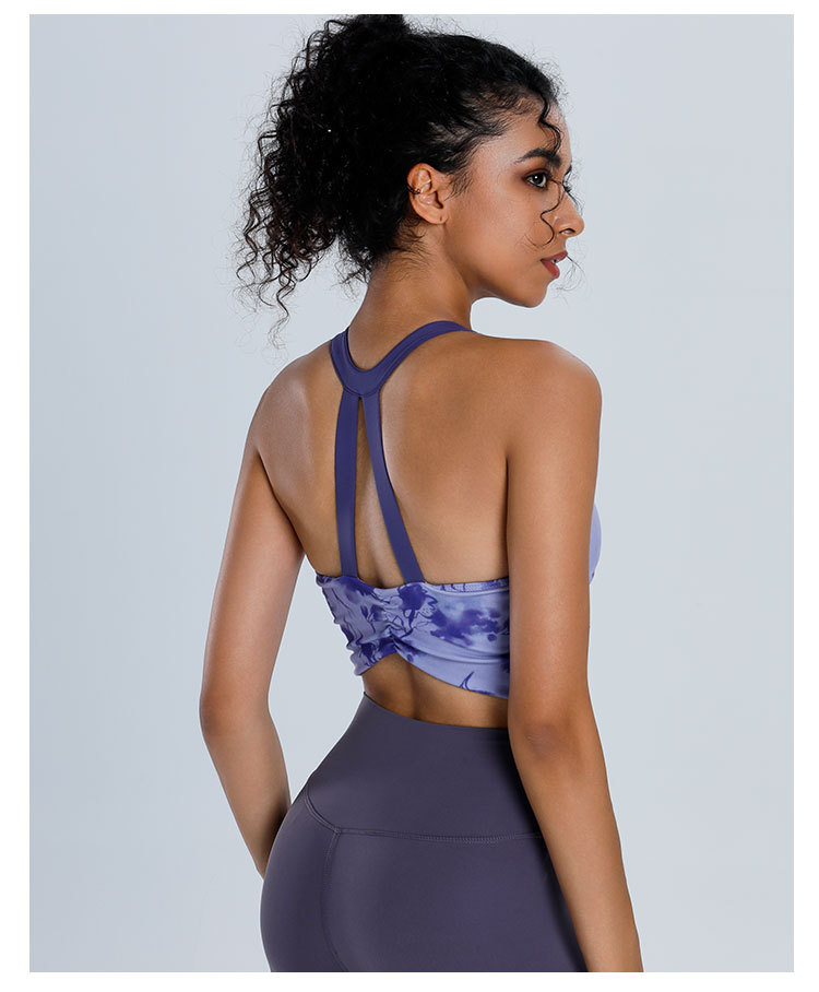 가슴 패드가 있는 프린트 요가 조끼, 여성용 심리스 스포츠 백 브라, 조끼 스타일 스퀘어 넥 서스펜더 요가 브라스토어 가기