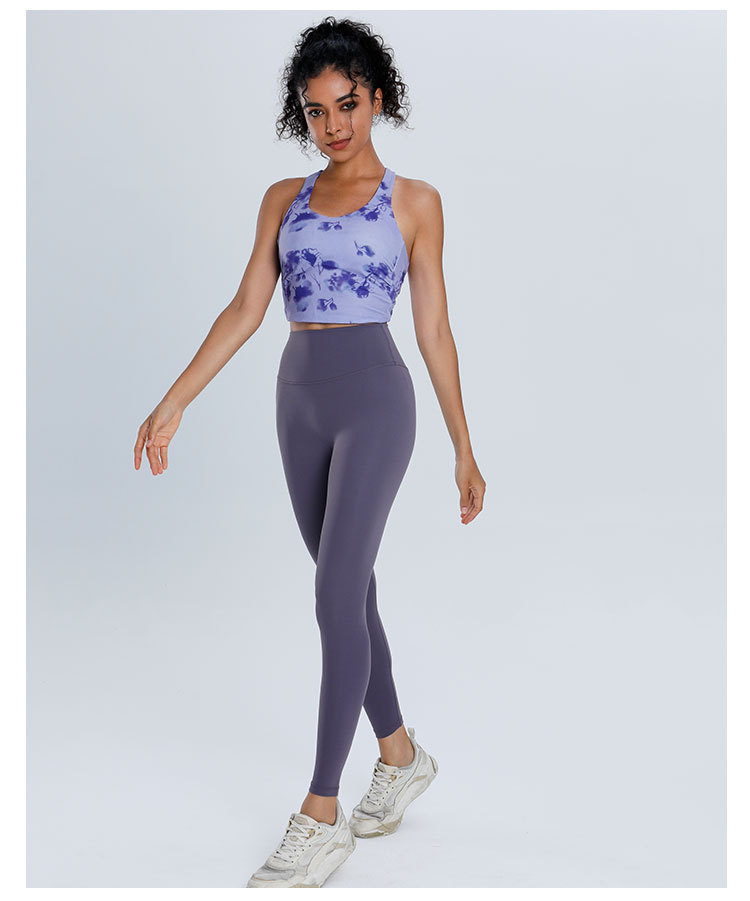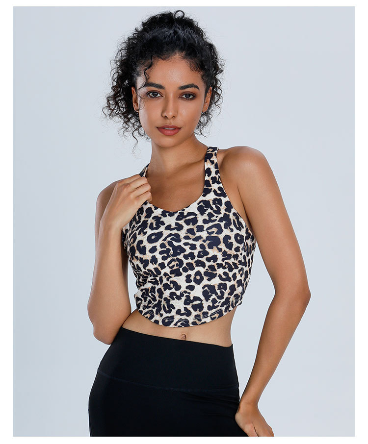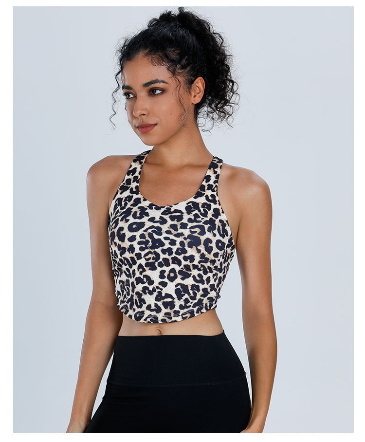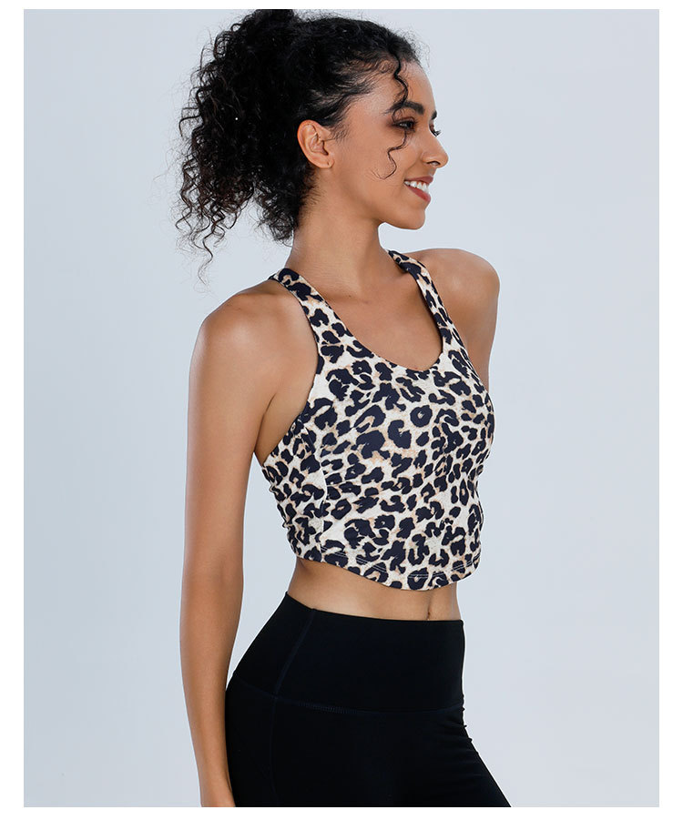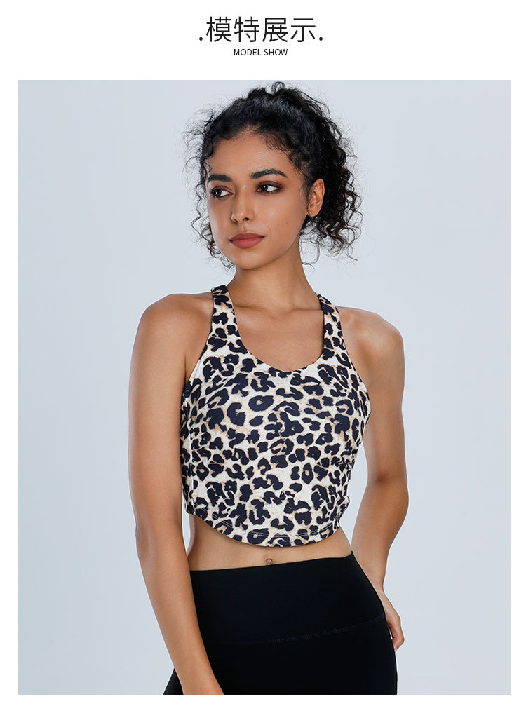 가슴 패드가 있는 프린트 요가 조끼, 여성용 심리스 스포츠 백 브라, 조끼 스타일 스퀘어 넥 서스펜더 요가 브라