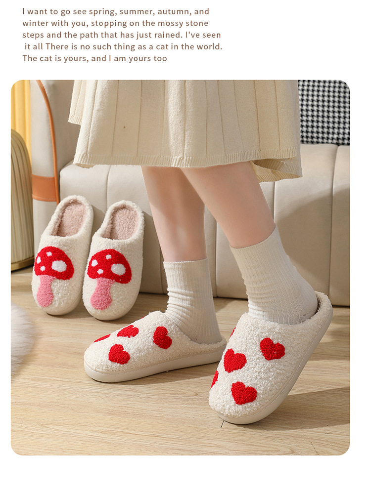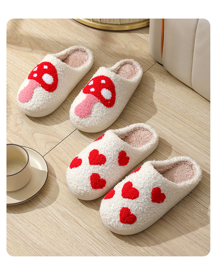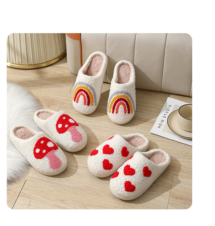 국경 간 버섯 인기 겨울 웃는 얼굴 복숭아 심장 면화 슬리퍼 여성 도매 실내 홈 무지개 플러시 따뜻한 슬리퍼스토어 가기