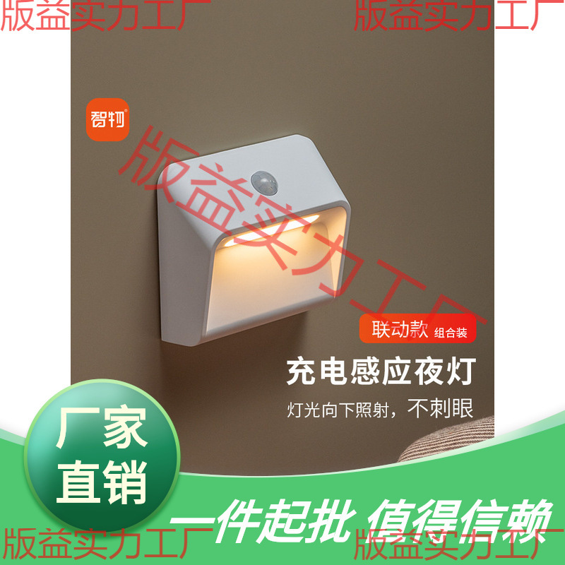 지능형 스마트 야간 조명 인체 센서 램프 연결 유도 충전 벽 램프 발 램프 LED 계단 배선 없음