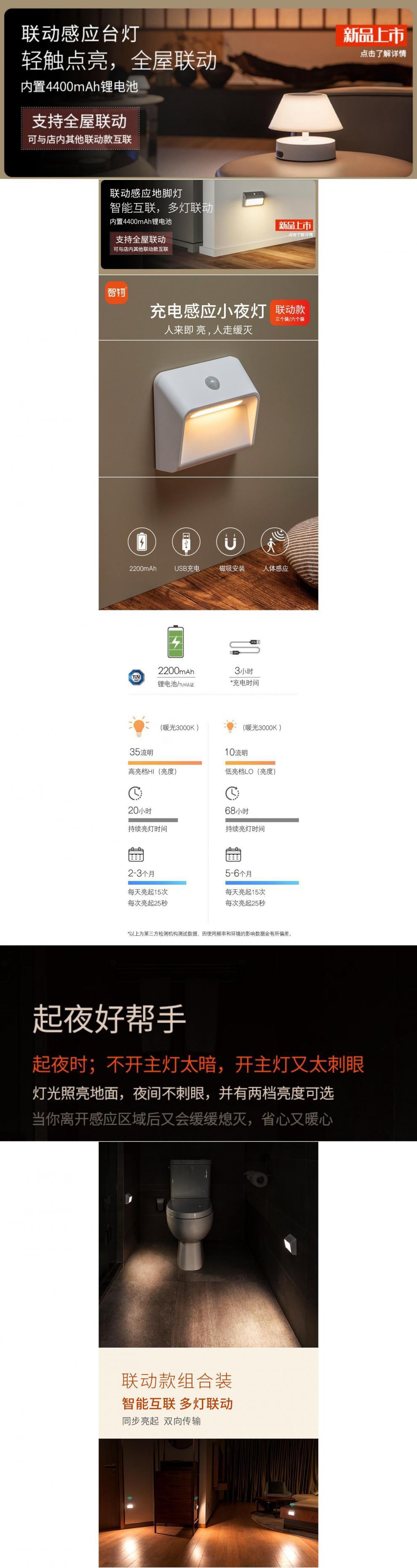 지능형 스마트 야간 조명 인체 센서 램프 연결 유도 충전 벽 램프 발 램프 LED 계단 배선 없음스토어 가기
