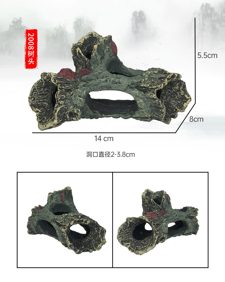 크롤링 애완 동물 동굴, 목재 선베드 장식, 모조 소나무 껍질, 완전 수제 수조 조경 공예품 및 장식품