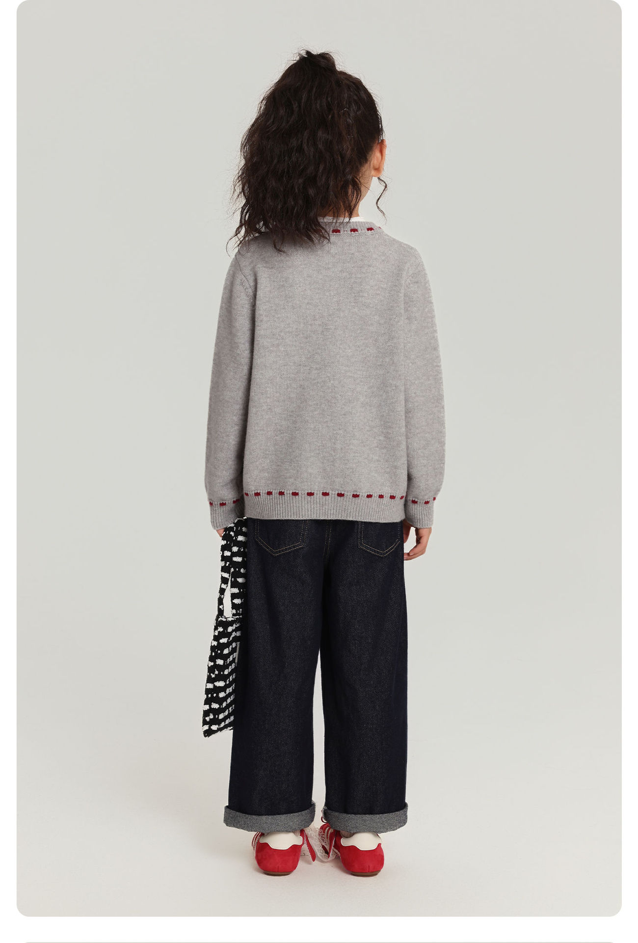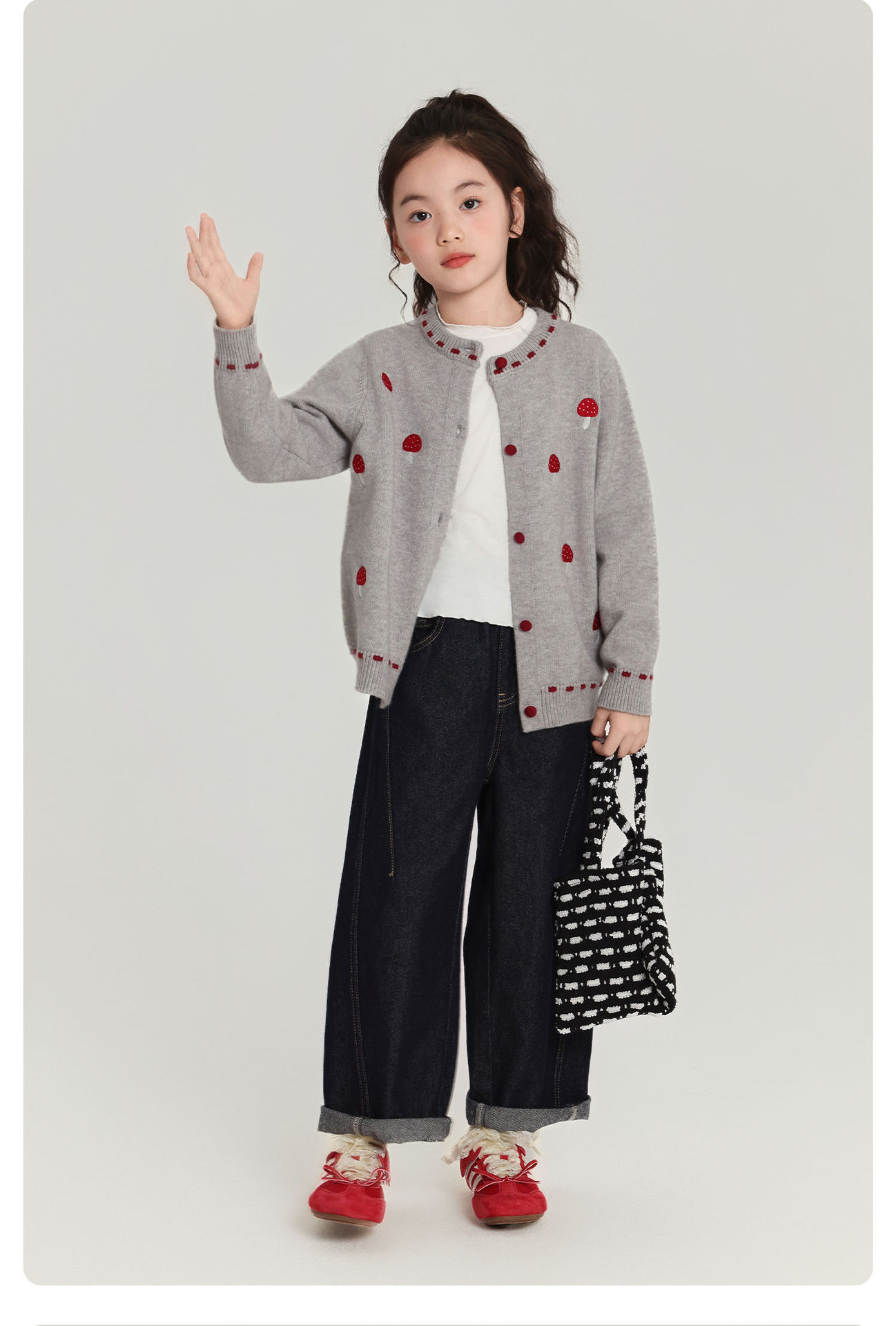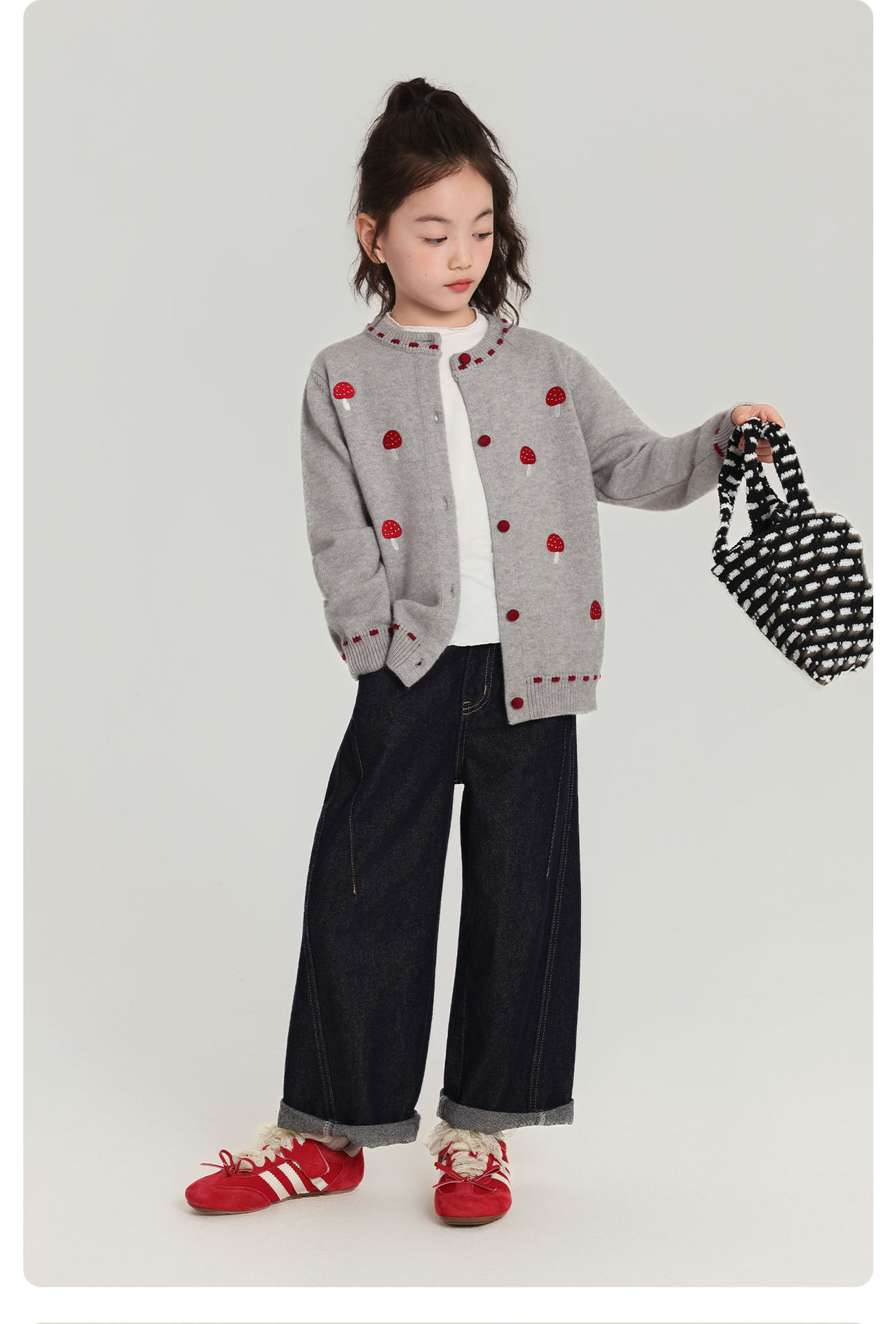 Pudding Haru Girls Top 2025 새로운 어린이 긴팔 버섯 자수 스웨터 카디건 소녀 가을 코트스토어 가기