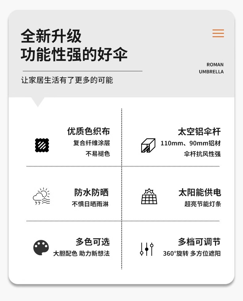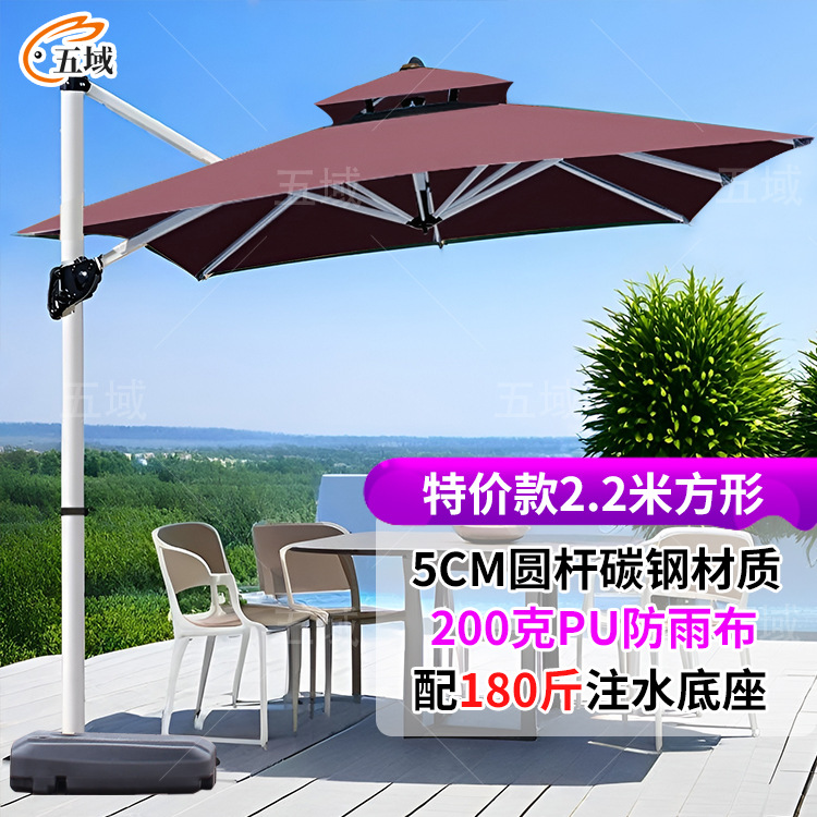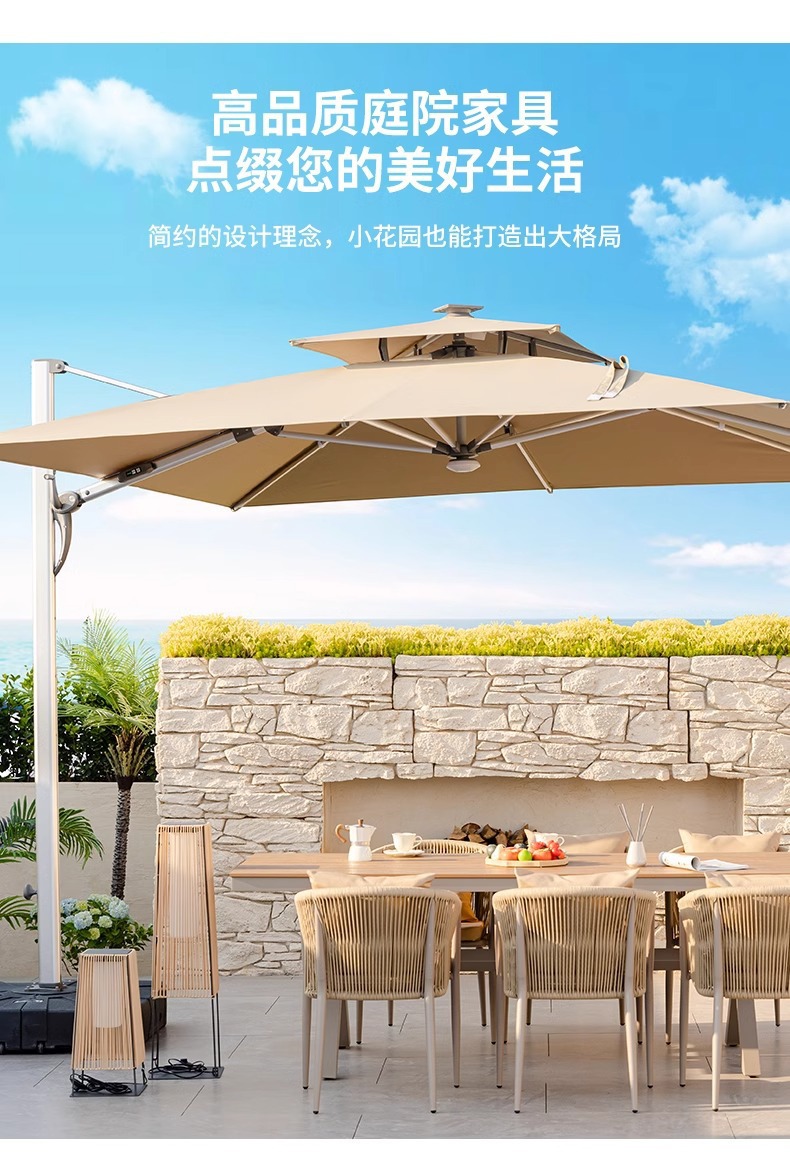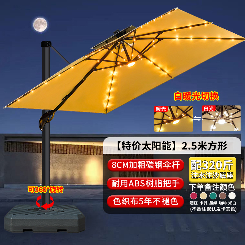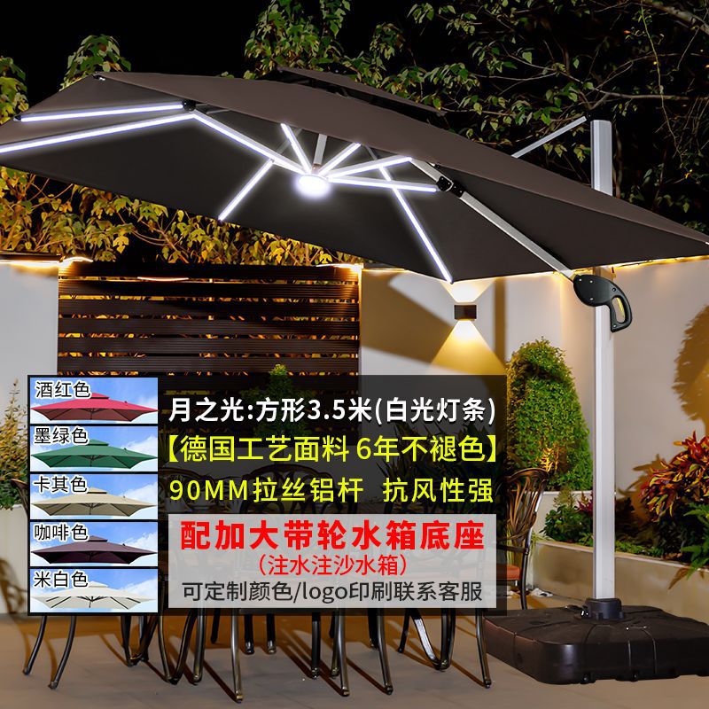 태양열 LED 조명이 있는 대형 야외 파라솔, 안뜰 우산, 야외 빌라 옥상 정원, 사각형 로마 우산