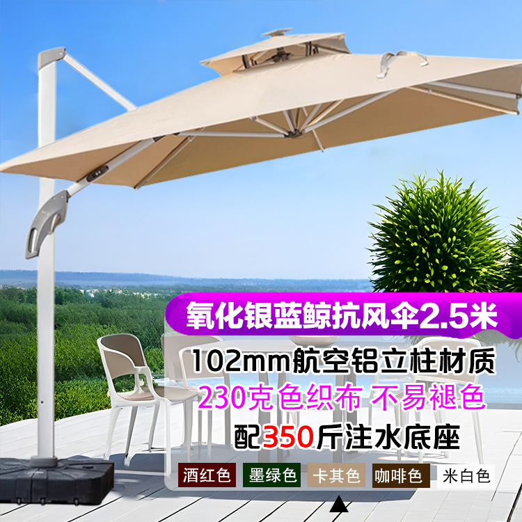 • 2.5m 사각 푸른고래 [102 알루미늄 기둥] [방풍 우산판] + 175kg 베이스