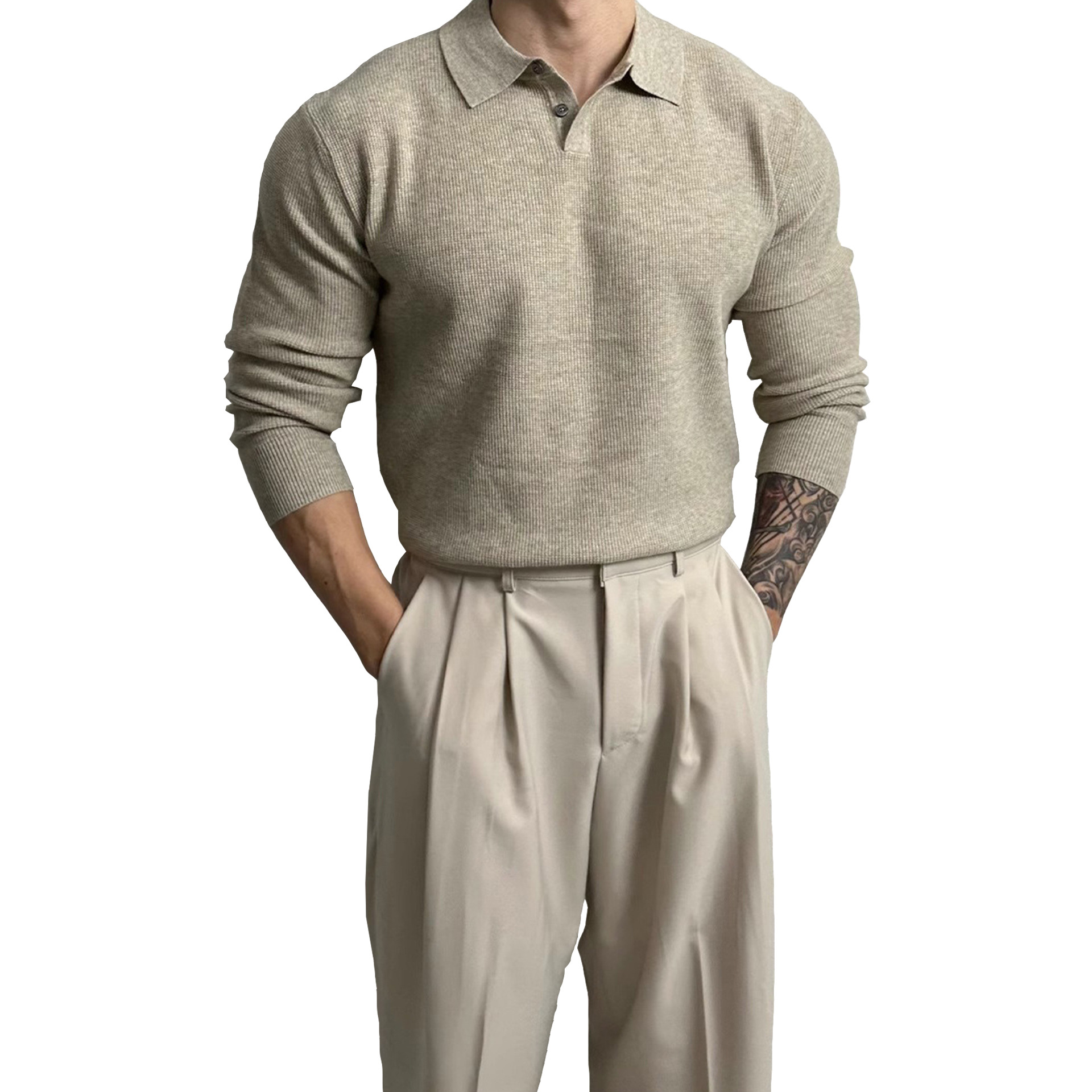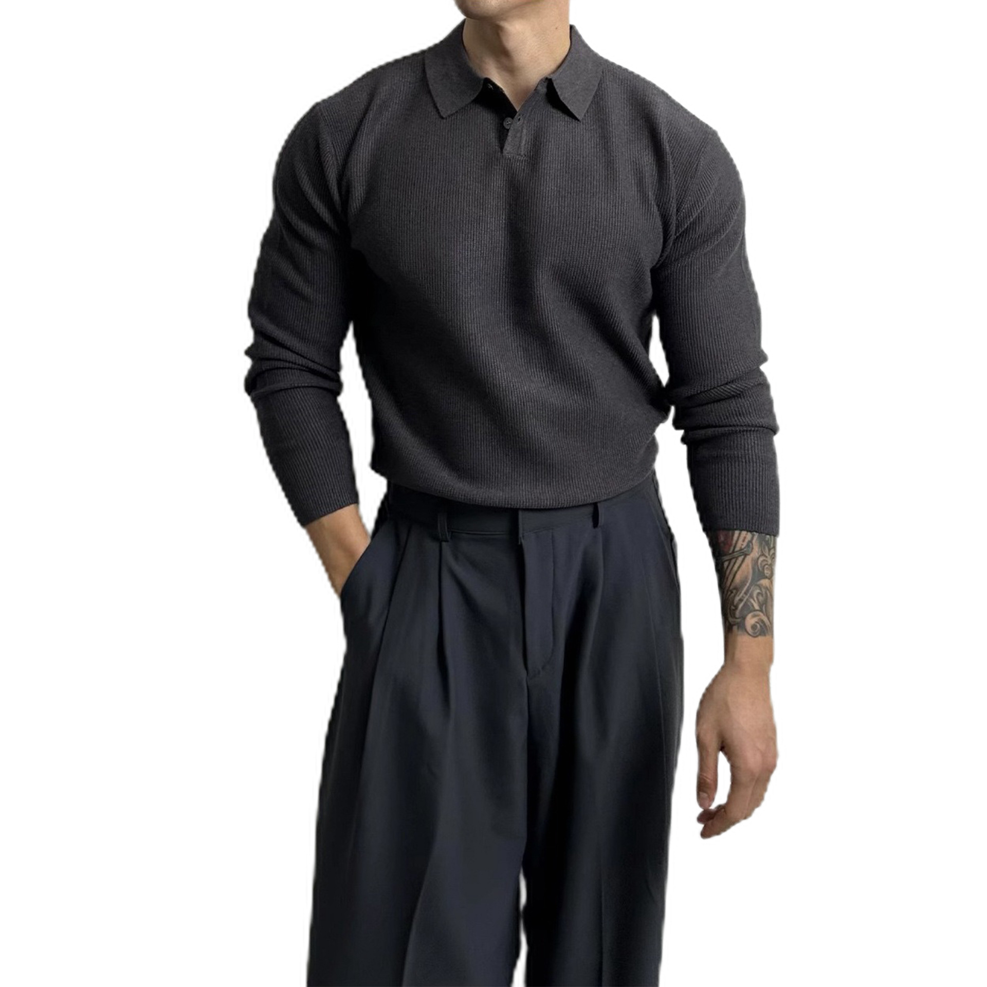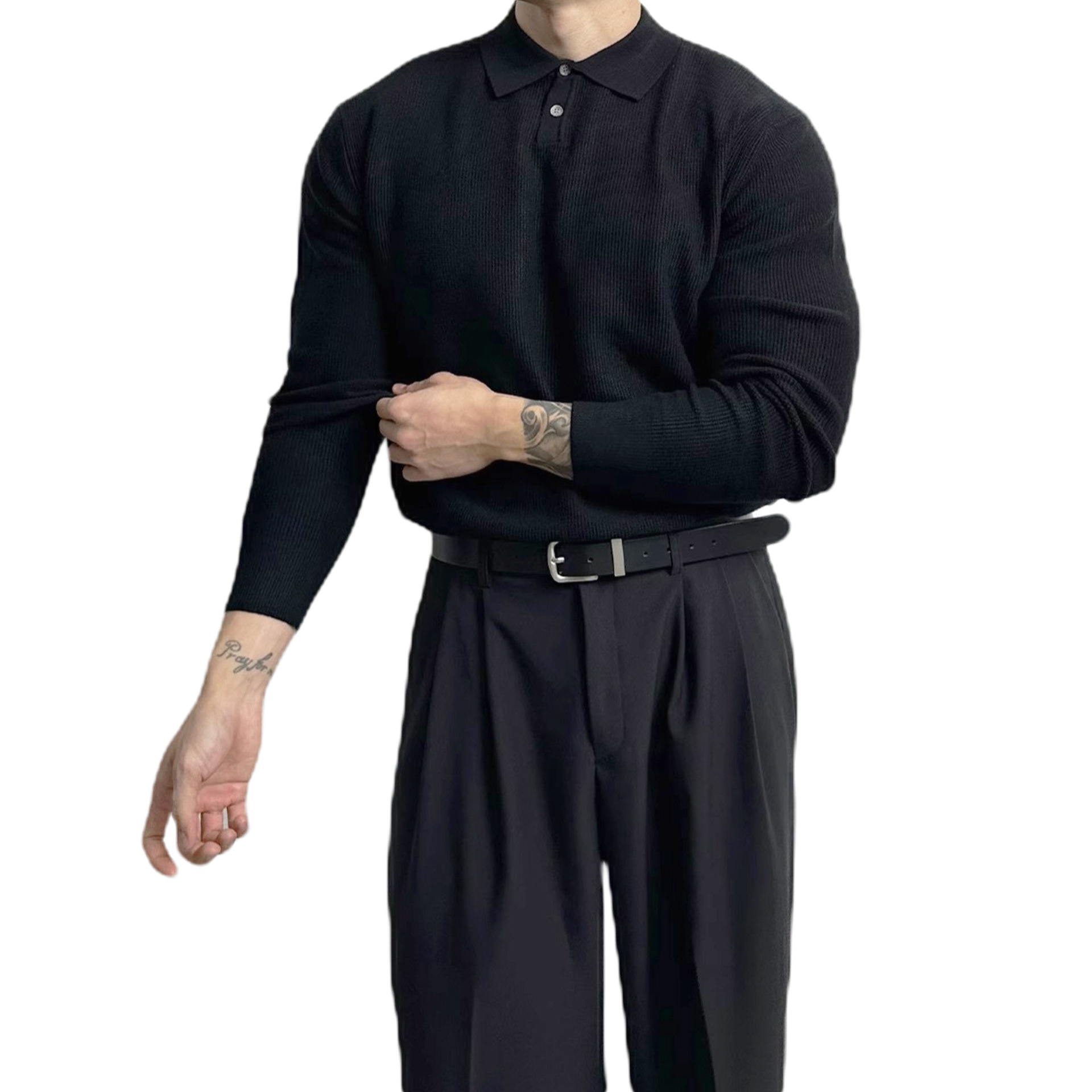 국경 간 인기 유럽 사이즈 대형 긴팔 스웨터 남성용 폴로 라펠 비즈니스 티셔츠 가을 겨울 공장 도매스토어 가기