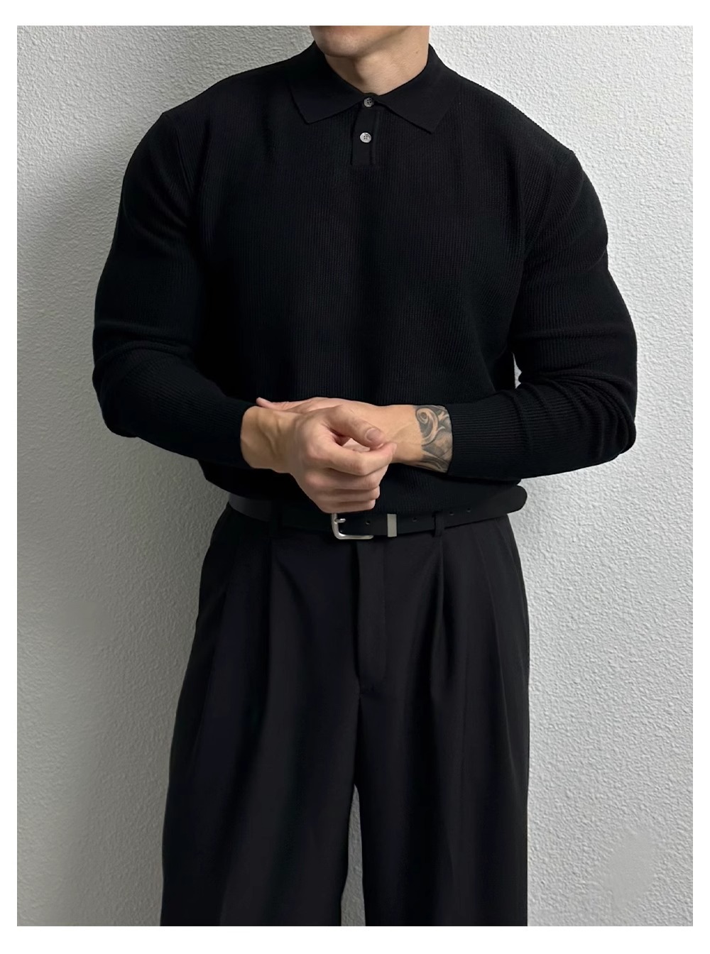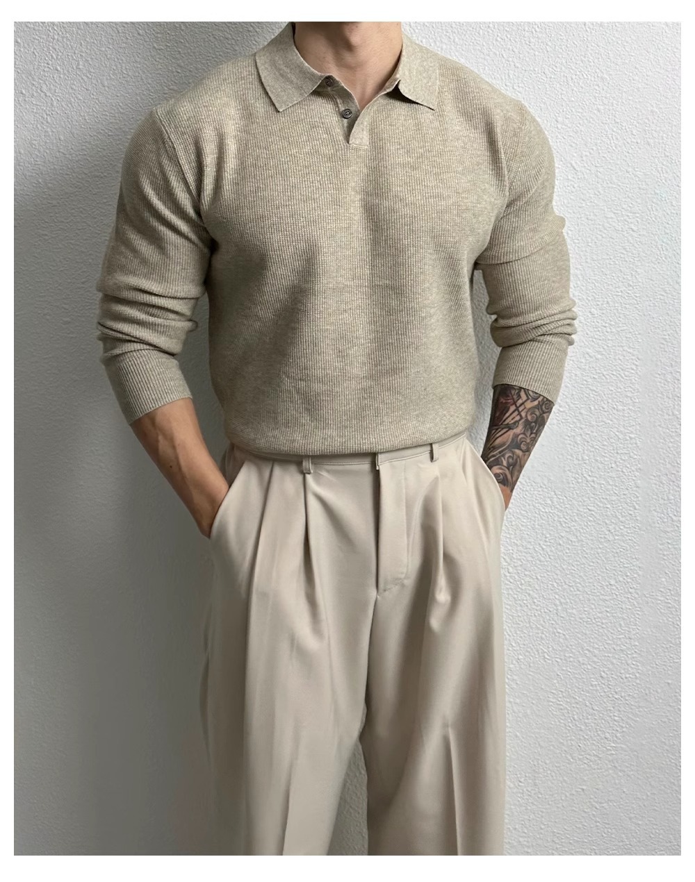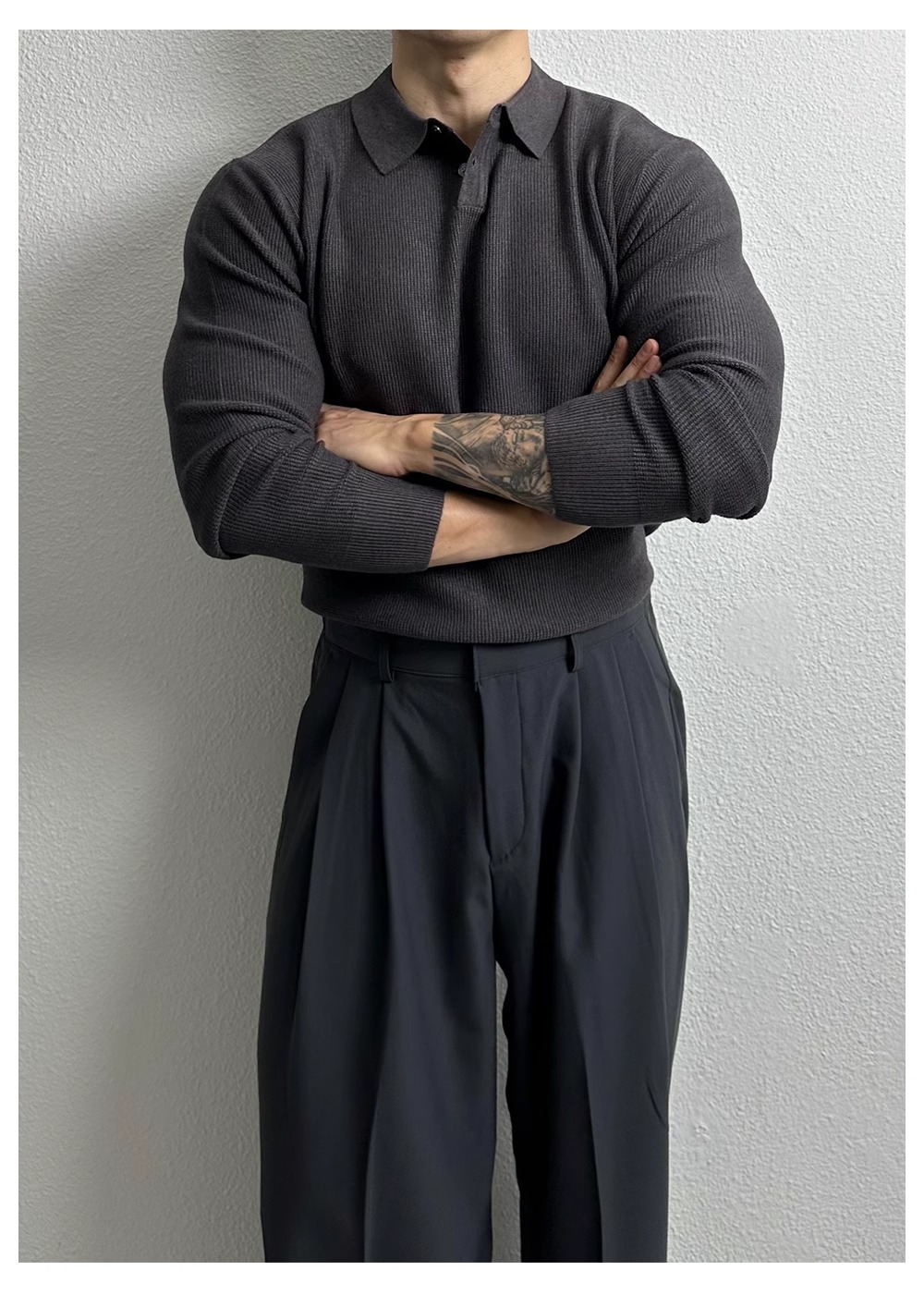 국경 간 인기 유럽 사이즈 대형 긴팔 스웨터 남성용 폴로 라펠 비즈니스 티셔츠 가을 겨울 공장 도매스토어 가기