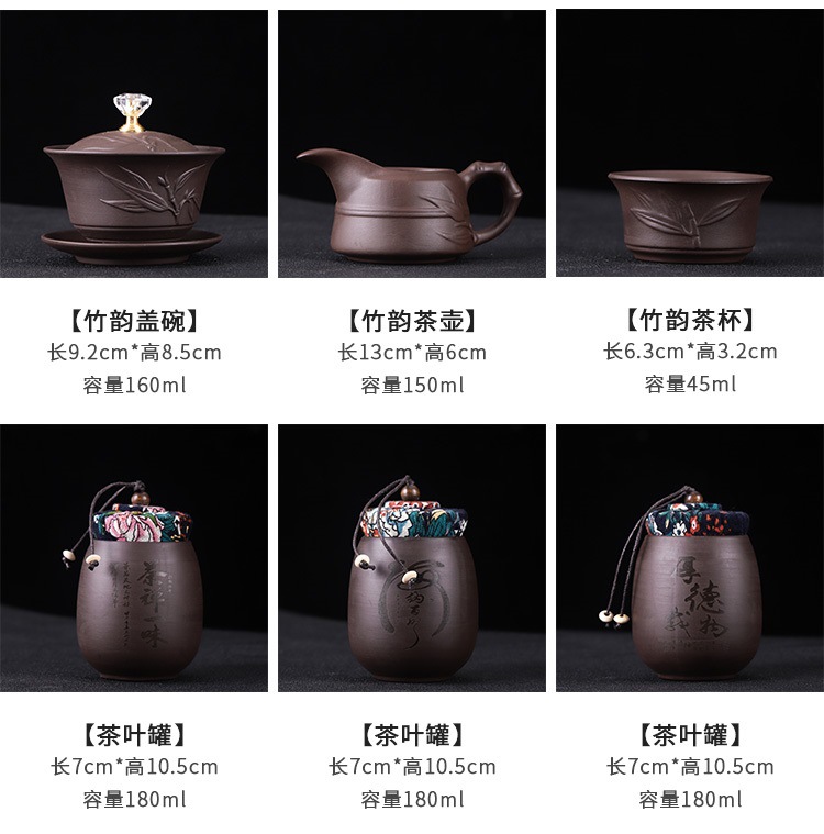 쿵푸 차 트레이 보라색 모래 세트 캠핑 일본식 휴대용 야외 가방 소형 가정용 간단한 주전자 여행 차 세트스토어 가기
