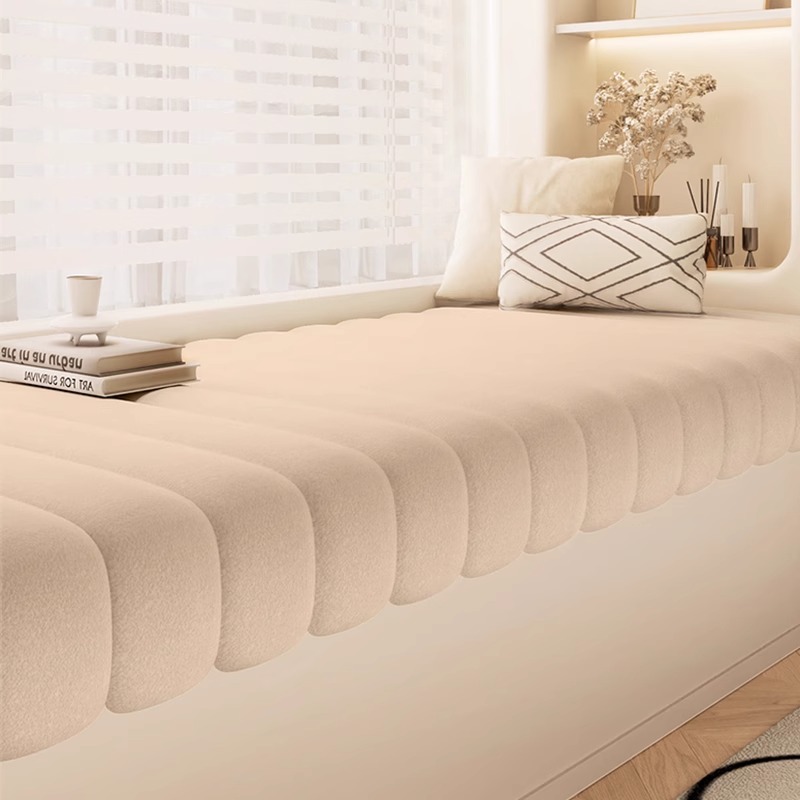 탈부착 가능한 테디벨벳 창문매트, 사계절 발코니 매트, 주침실 맞춤형 크림화이트 바닥창 매트