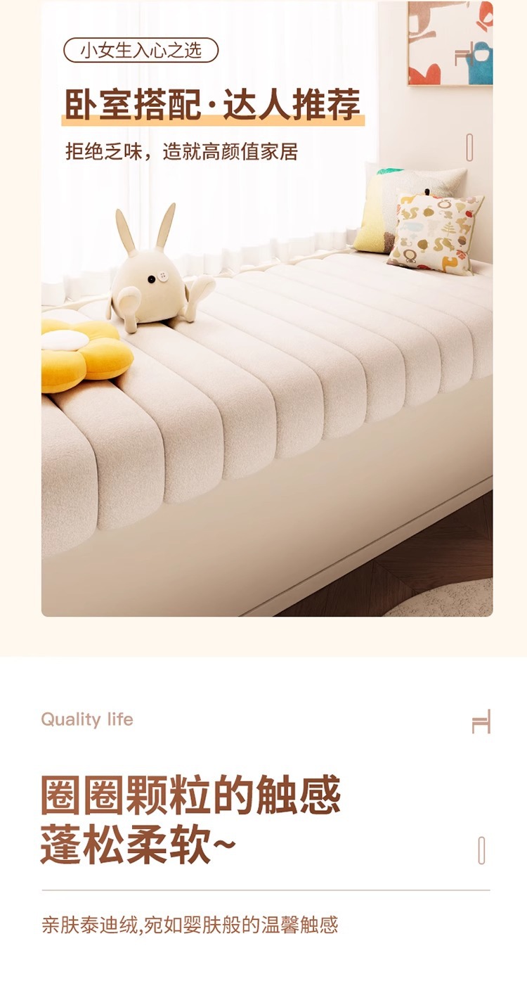 탈부착 가능한 테디벨벳 창문매트, 사계절 발코니 매트, 주침실 맞춤형 크림화이트 바닥창 매트스토어 가기