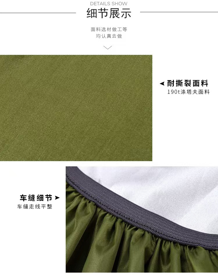 我们标注的是210D涂银防水,就一定不会用次等薄的容易烂的190T涤塔夫来忽悠您,质量 保证欢迎订购。