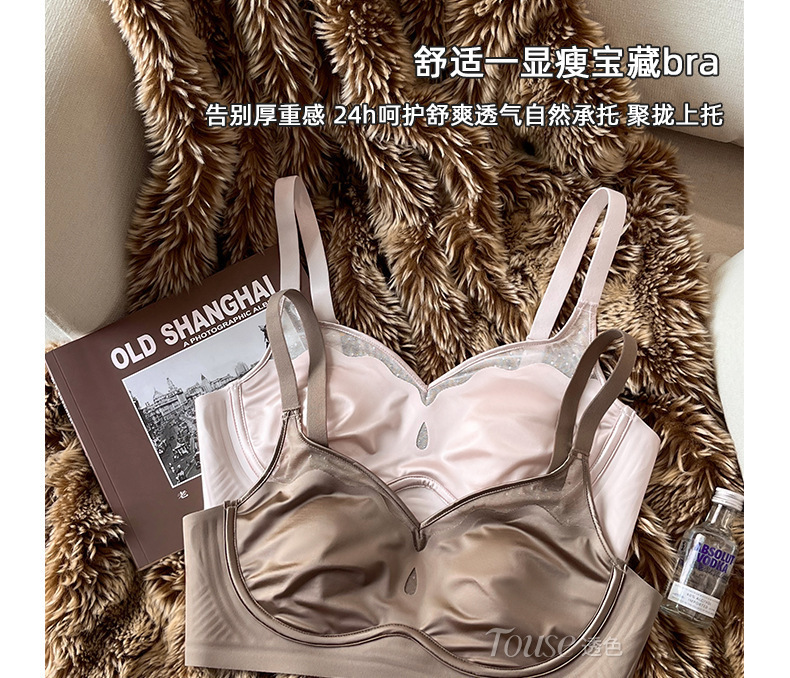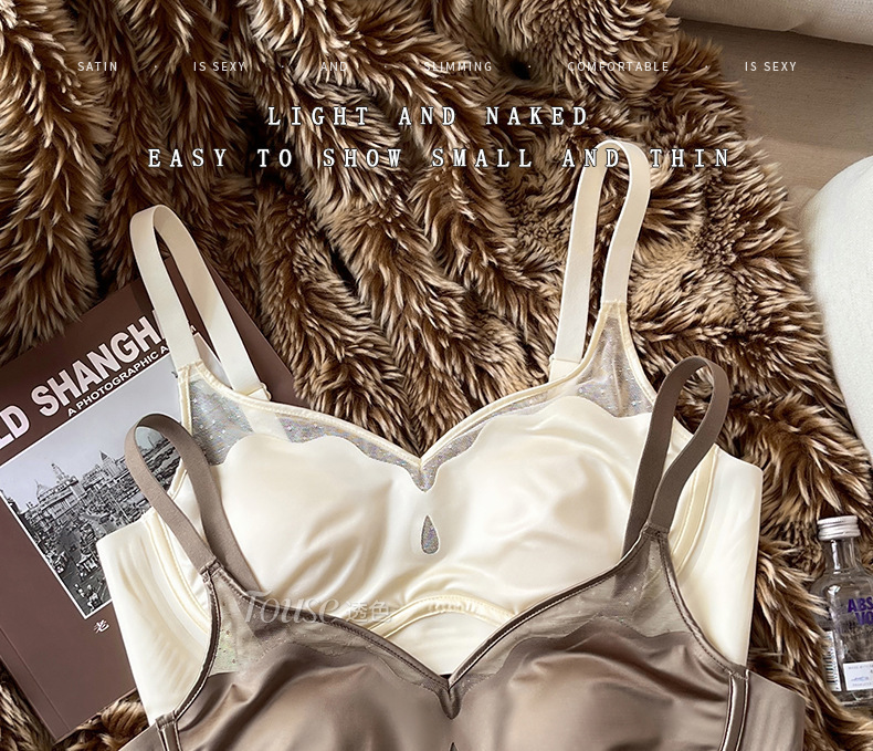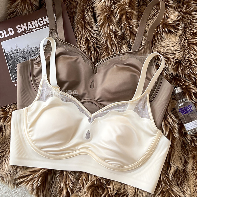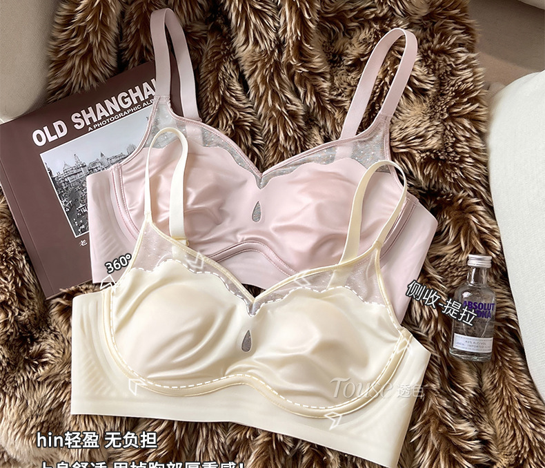 여성스러운 메쉬 얇은 처짐 방지 노와이어 브라가 있는 큰 가슴과 작은 가슴을 위한 새틴 프렌치 초박형 속옷스토어 가기