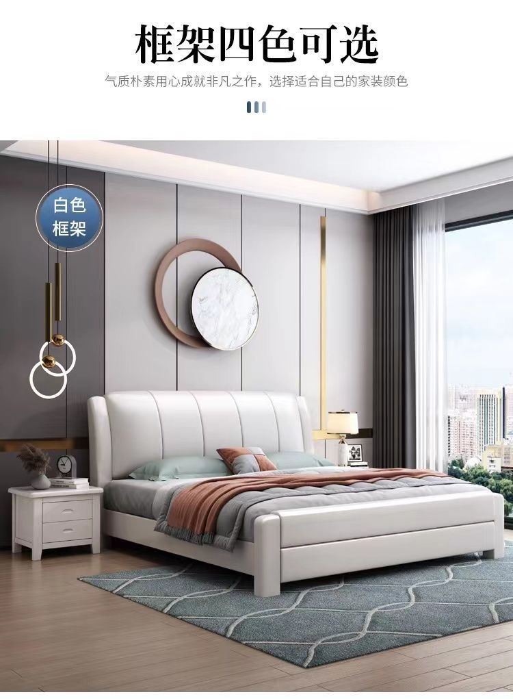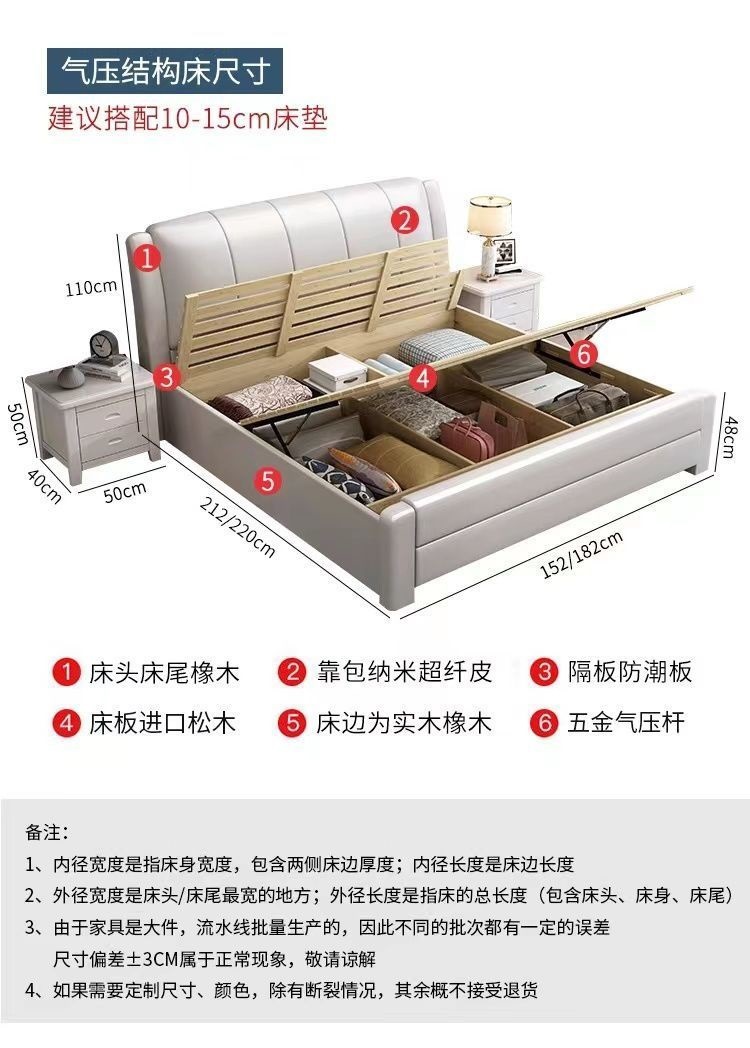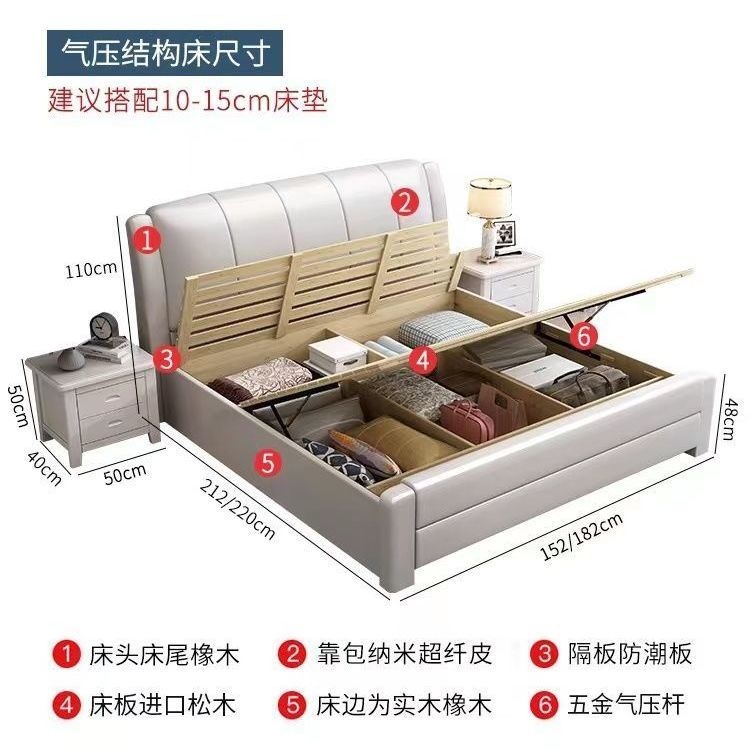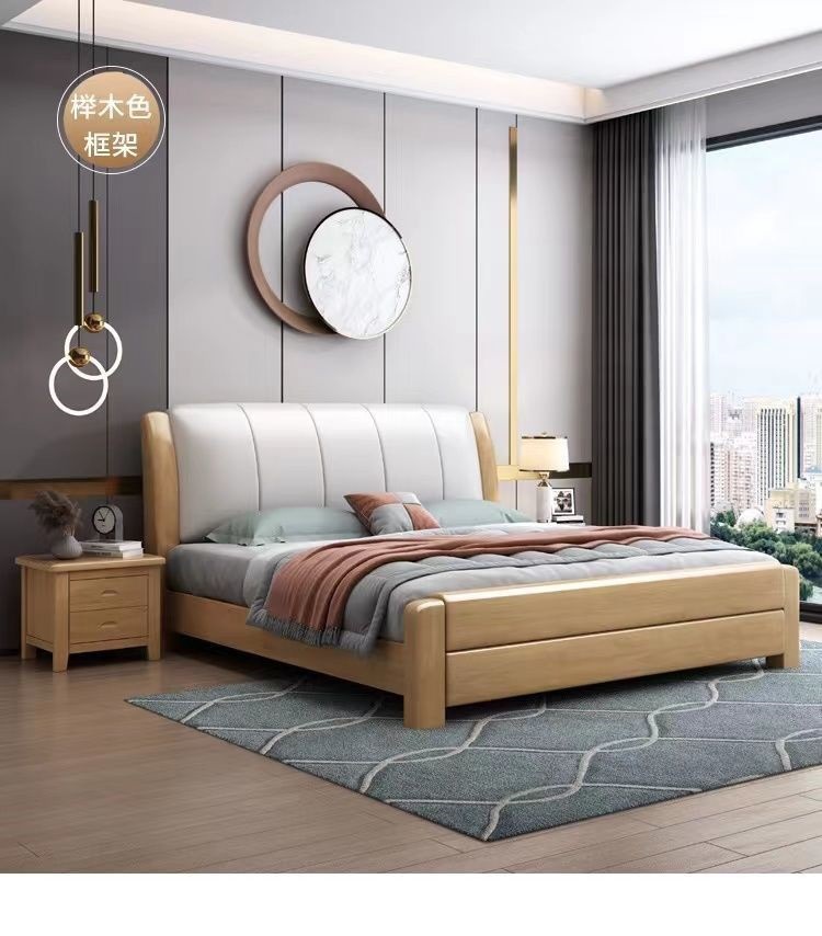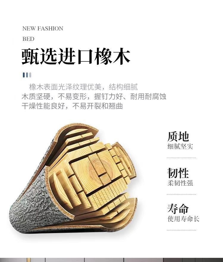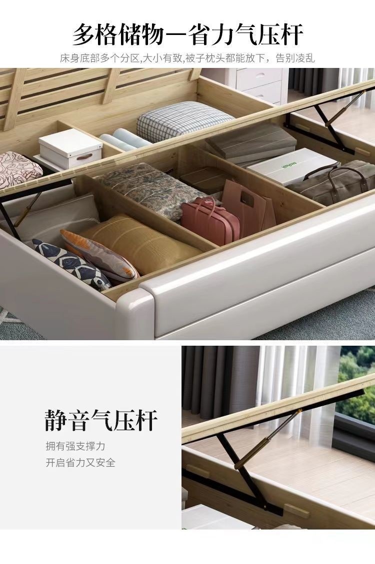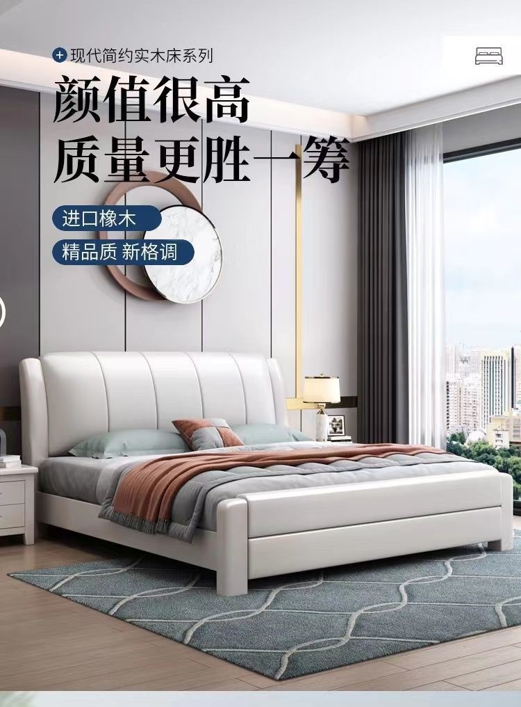 오크 원목 침대 심플 화이트 소프트 박스 마스터 침실 대형 침대 1.5m 신형 1.8m 더블 침대 하이박스 수납 침대스토어 가기