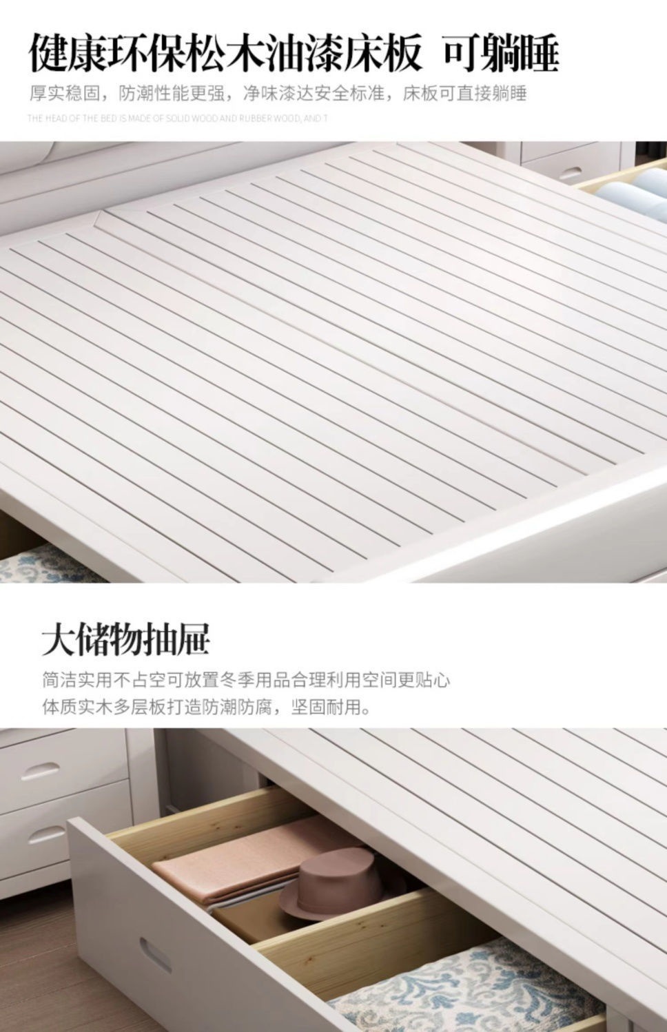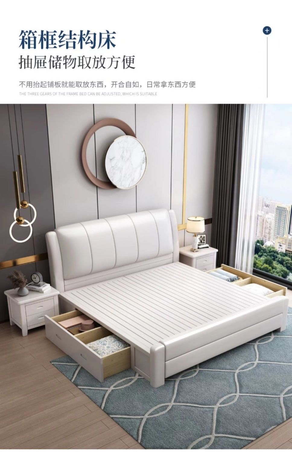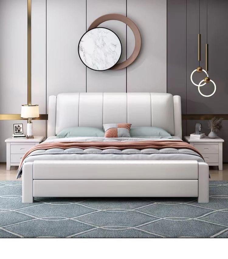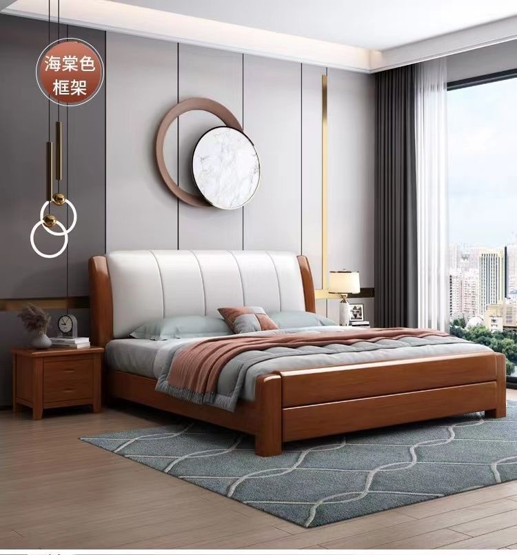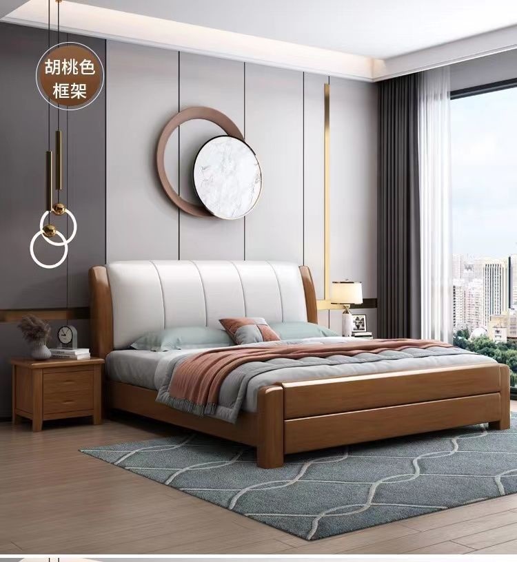 오크 원목 침대 심플 화이트 소프트 박스 마스터 침실 대형 침대 1.5m 신형 1.8m 더블 침대 하이박스 수납 침대스토어 가기