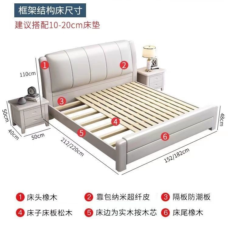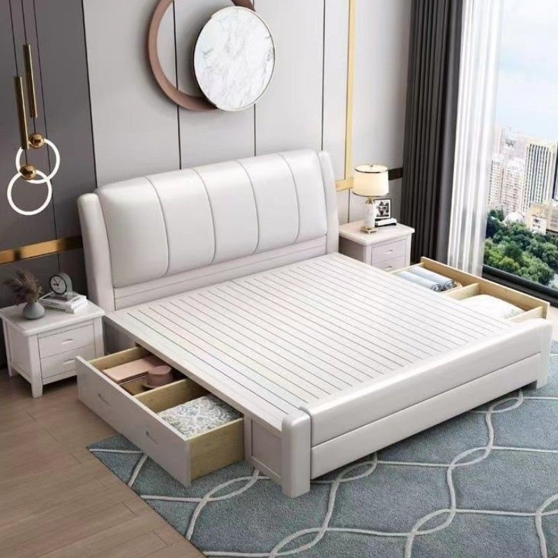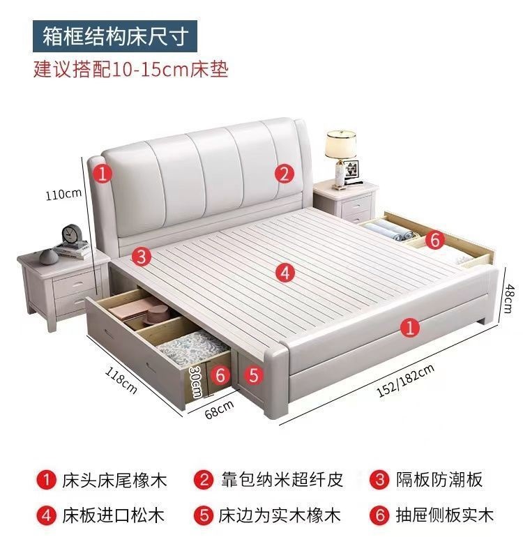 오크 원목 침대 심플 화이트 소프트 박스 마스터 침실 대형 침대 1.5m 신형 1.8m 더블 침대 하이박스 수납 침대