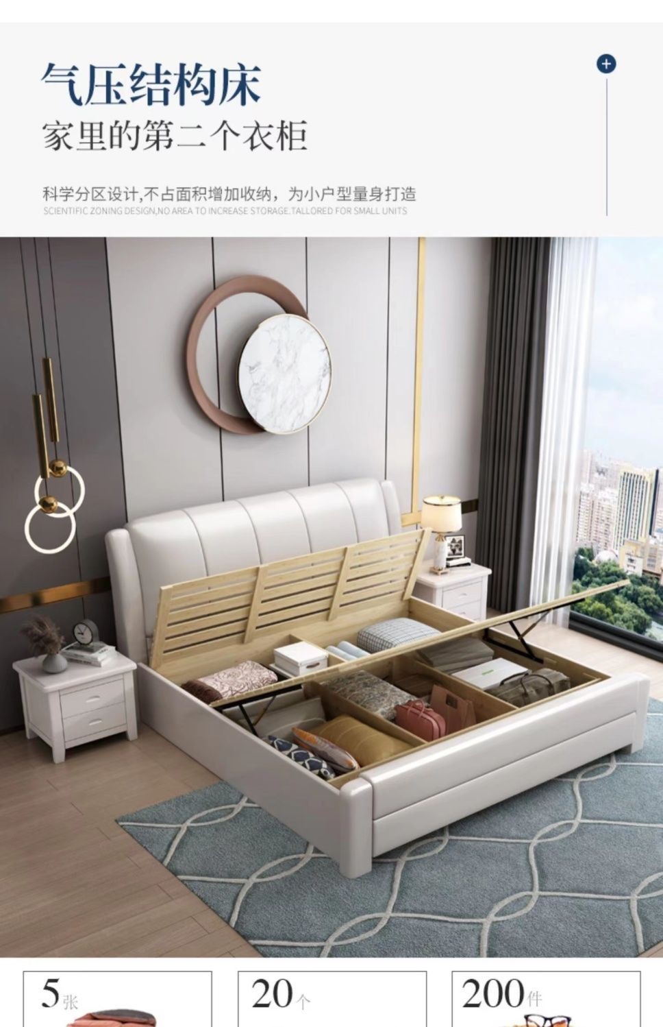 • 침대 + 침대 옆 탁자 1개 + 20cm 라텍스 스프링 매트리스